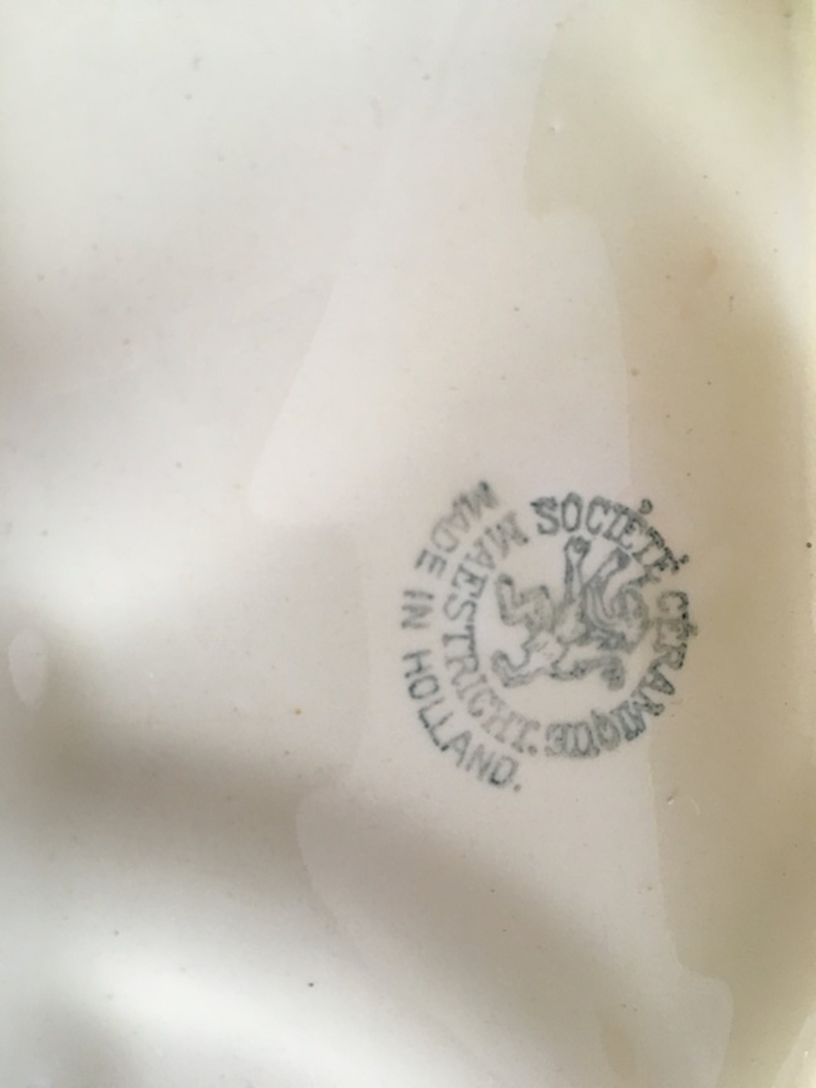 Uitstekend strak ontworpen art deco asperge schaal met modernistisch decor vervaardigd door Societe Ceramique Maestricht in de 1930's. Ik ben deze schaal met specifiek dit decor nog maar zelden tegegekomen en deze is dus relatief zeldzaam en verzamelwaardig. De schaal is in prima staat. Zondermeer een museumstuk