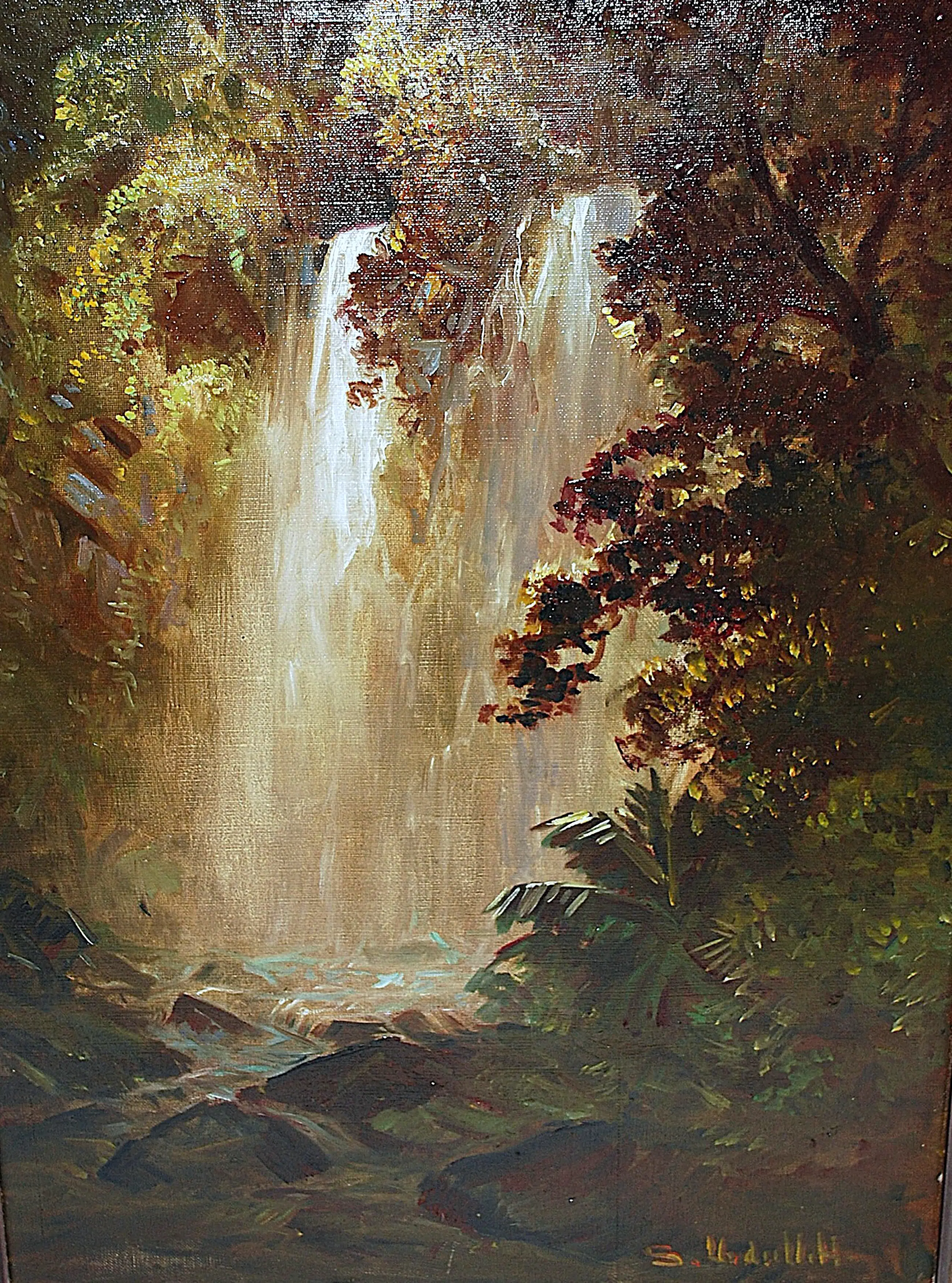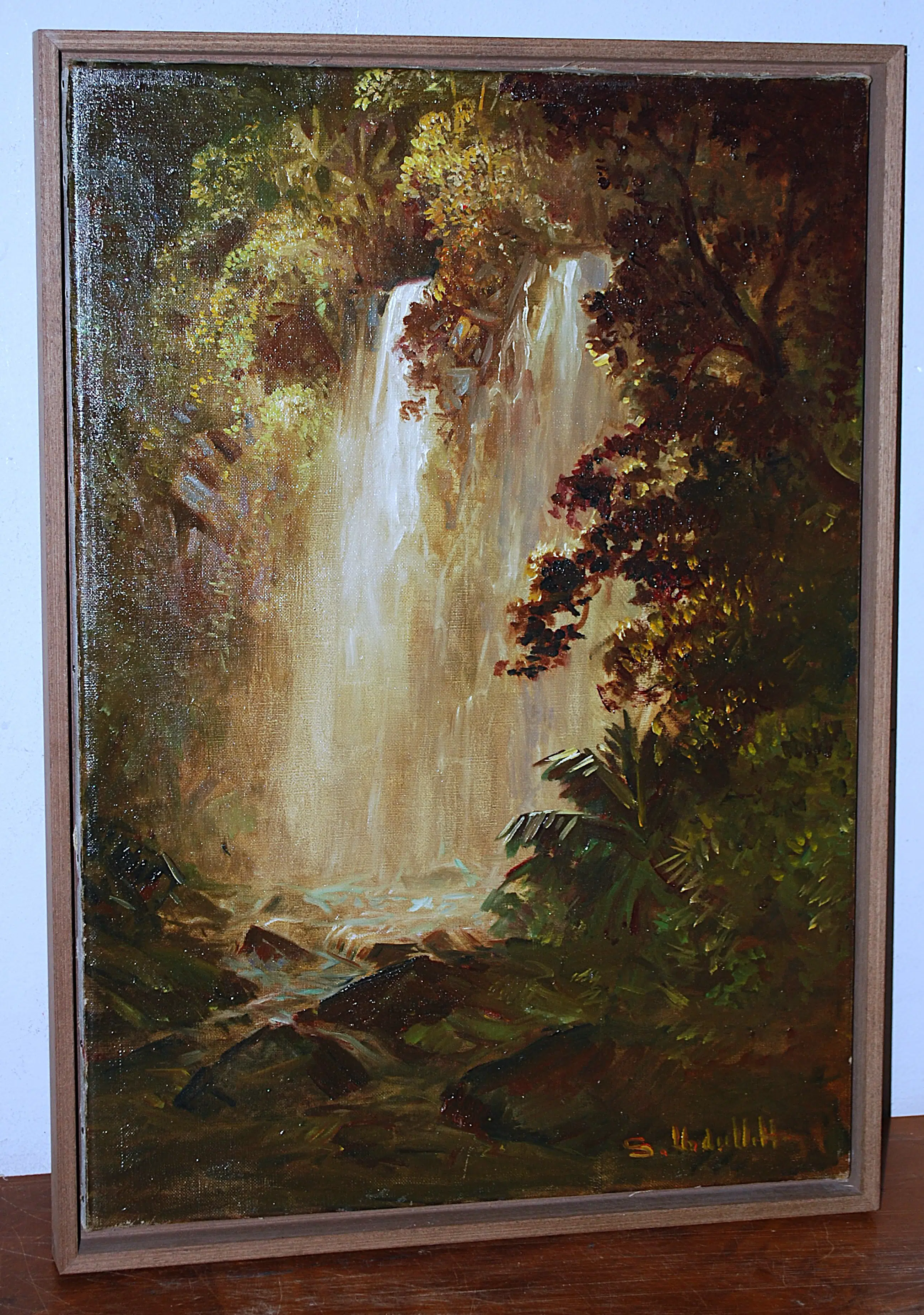 Soedjono Abdullah - Indonesië, een waterval - olieverfschilderij