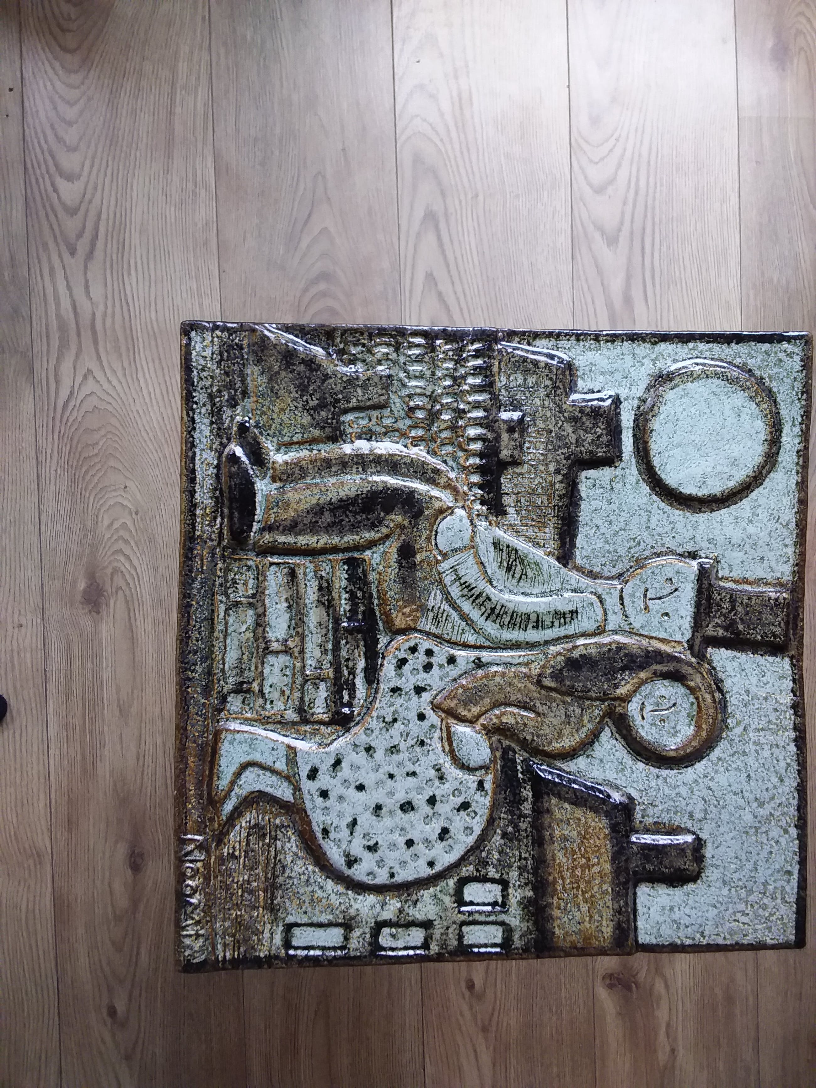 soholm wall plaque by noomi backhausen ,danish modern pottery whith a fairytale by hans christian andersen The shepherdess and the sweep