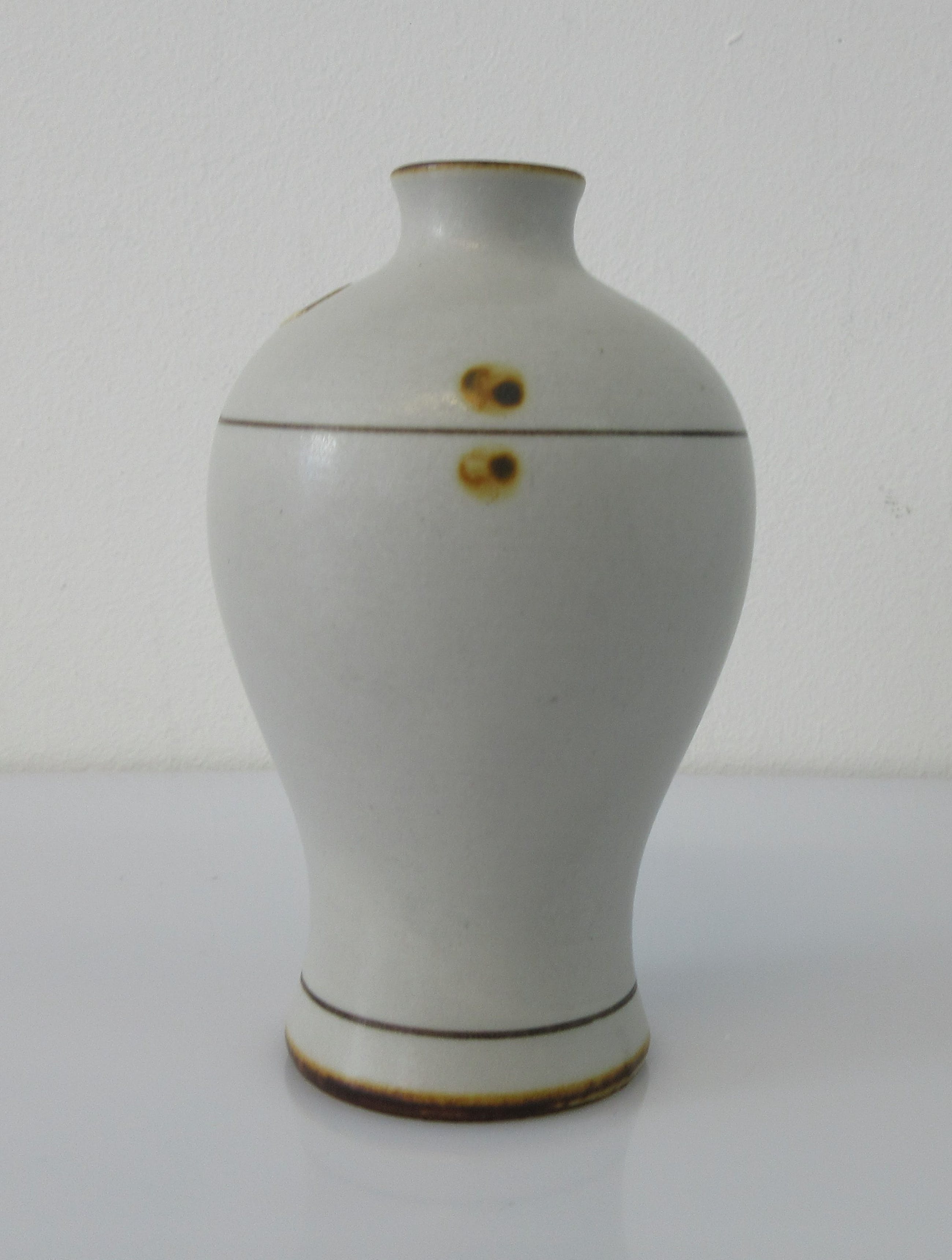 Steengoed vaasje model 3728 ontwerp Noomi Backhausen voor Soholm Stentoj uit Denemarken. Gemerkt en gesigneerd aan de onderzijde, ingedrukt de naam Noomi en voorzien van merksticker.