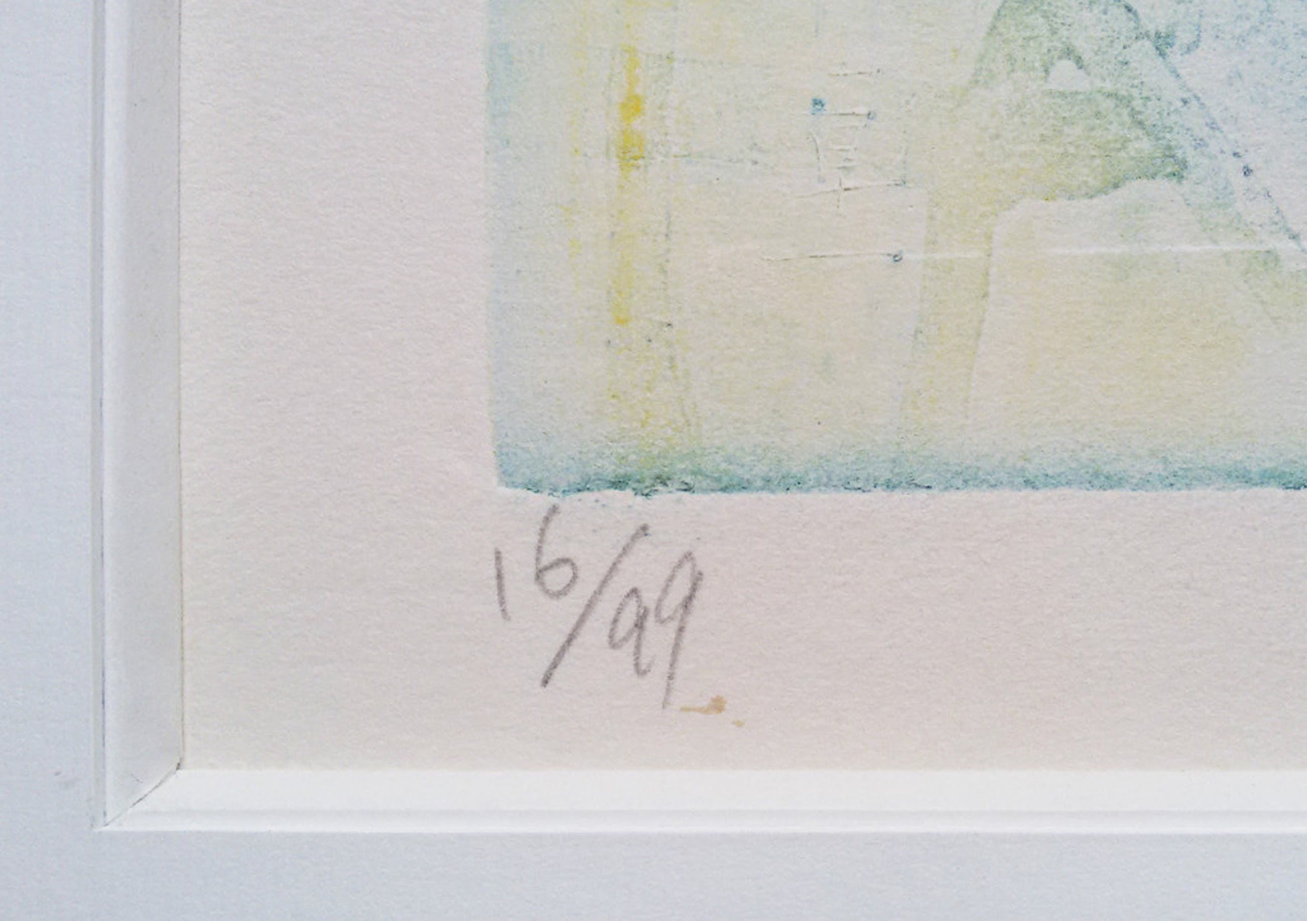 Subtiele, gelaagde compositie van de Japanse kunstenaar Shoichi Hasegawa. Aquatint ets op papier, met potlood gesigneerd, getiteld en genummerd (16/99). Mooi ingekaderd, achter glas en met luxueus, smetteloos passe-partout door C. Artiges & Fils Encadrements uit Brussel. Alles in zeer goede conditie.