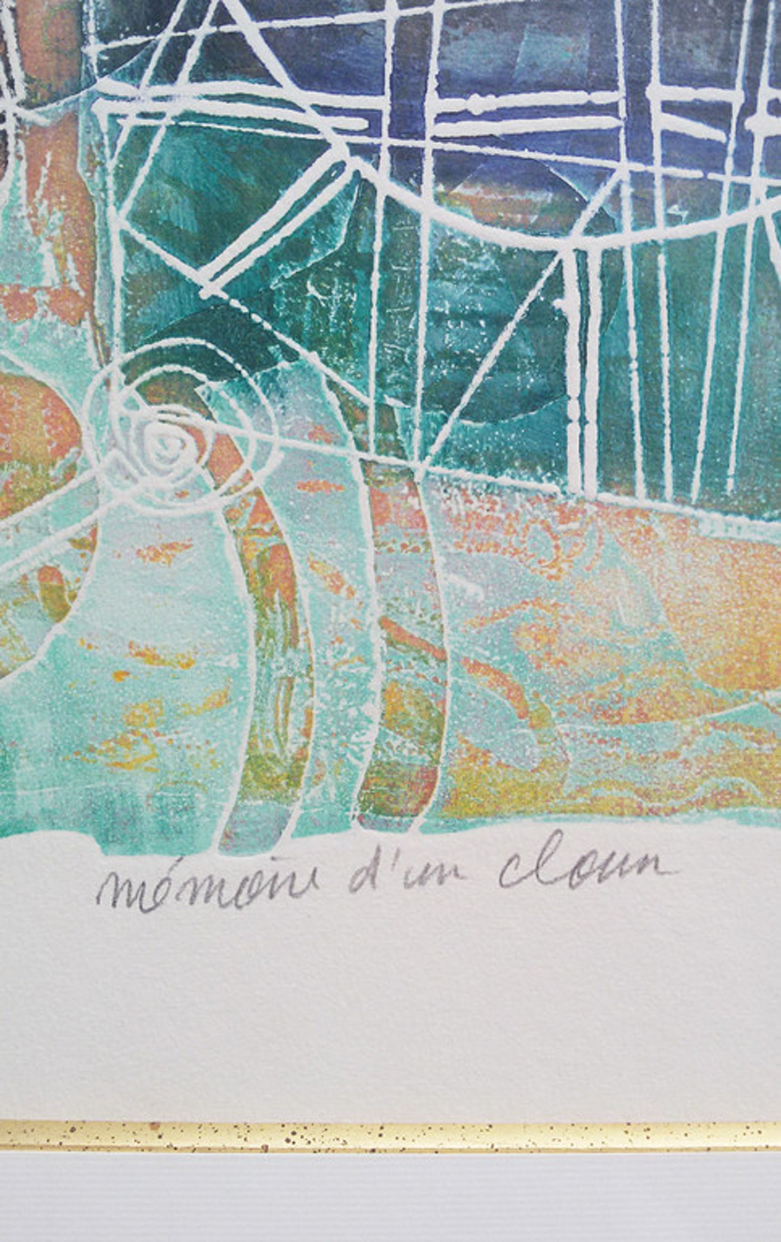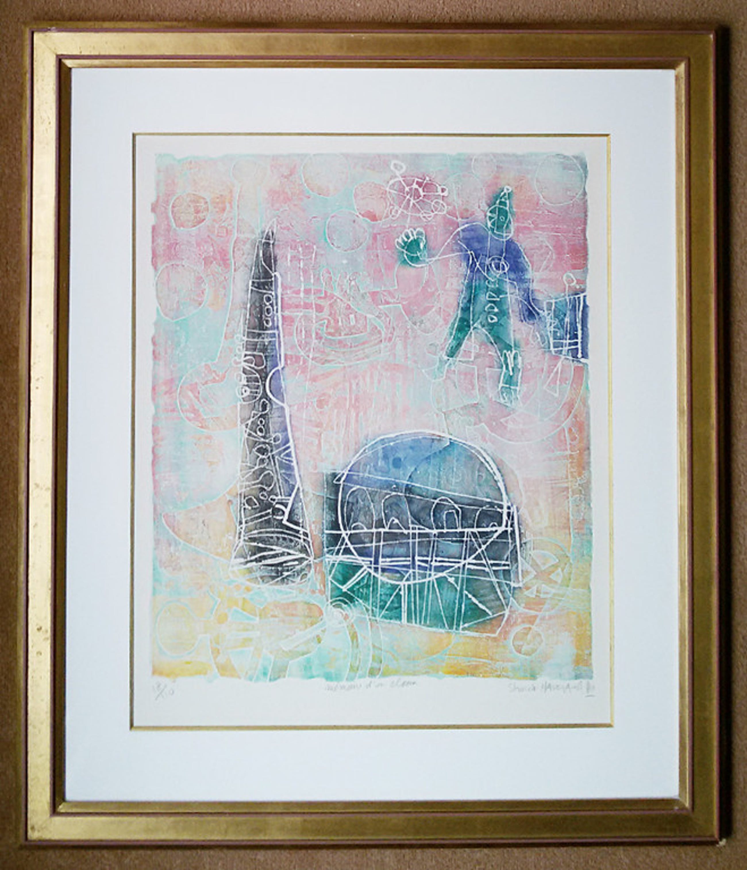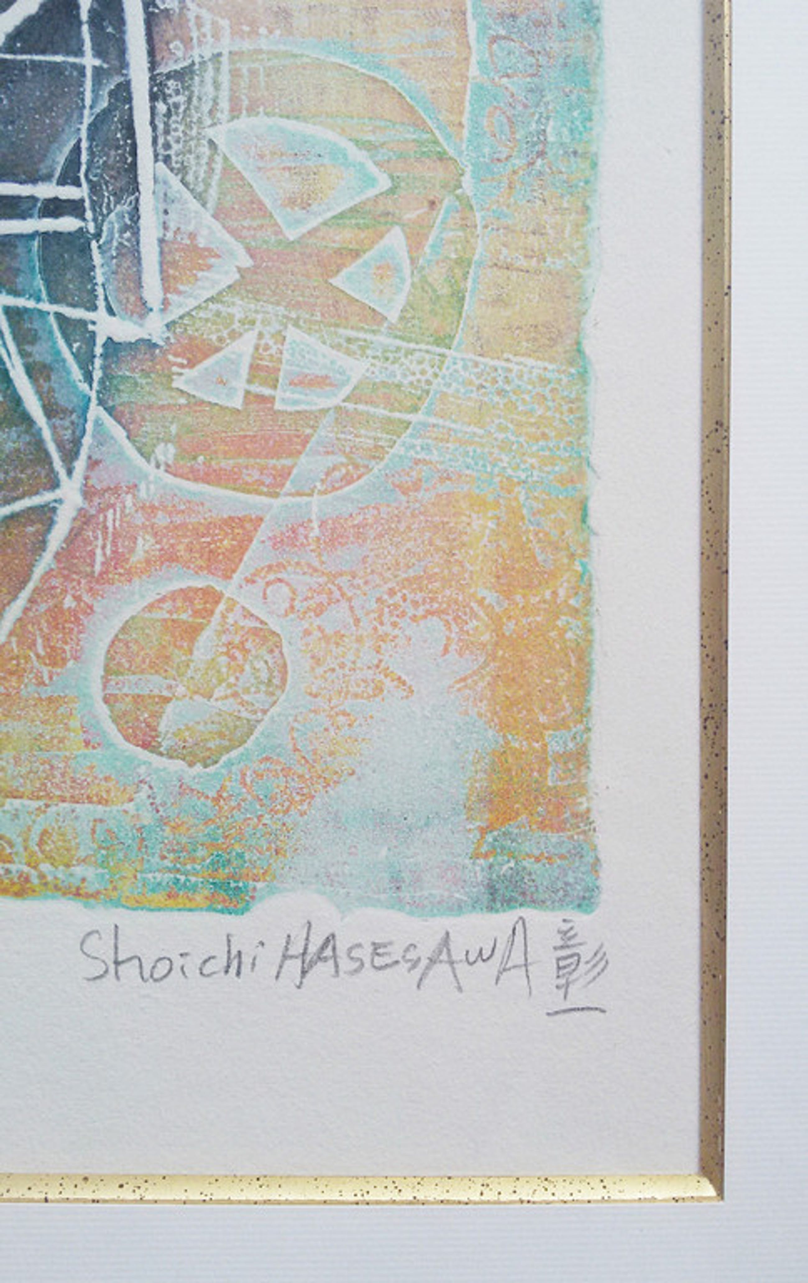 Ragfijne, gelaagde compositie van de Japanse kunstenaar Shoichi Hasegawa. Aquatint ets op papier, met potlood gesigneerd, getiteld en genummerd (18/110). Prachtig ingelijst, achter glas en met luxueus, complementerend passe-partout. Alles in zeer goede conditie. Het glas ervoor neemt wat van de sprankeling weg in de foto’s, de kleuren zijn in het echt scherper en de compositie sterker gedefinieerd.