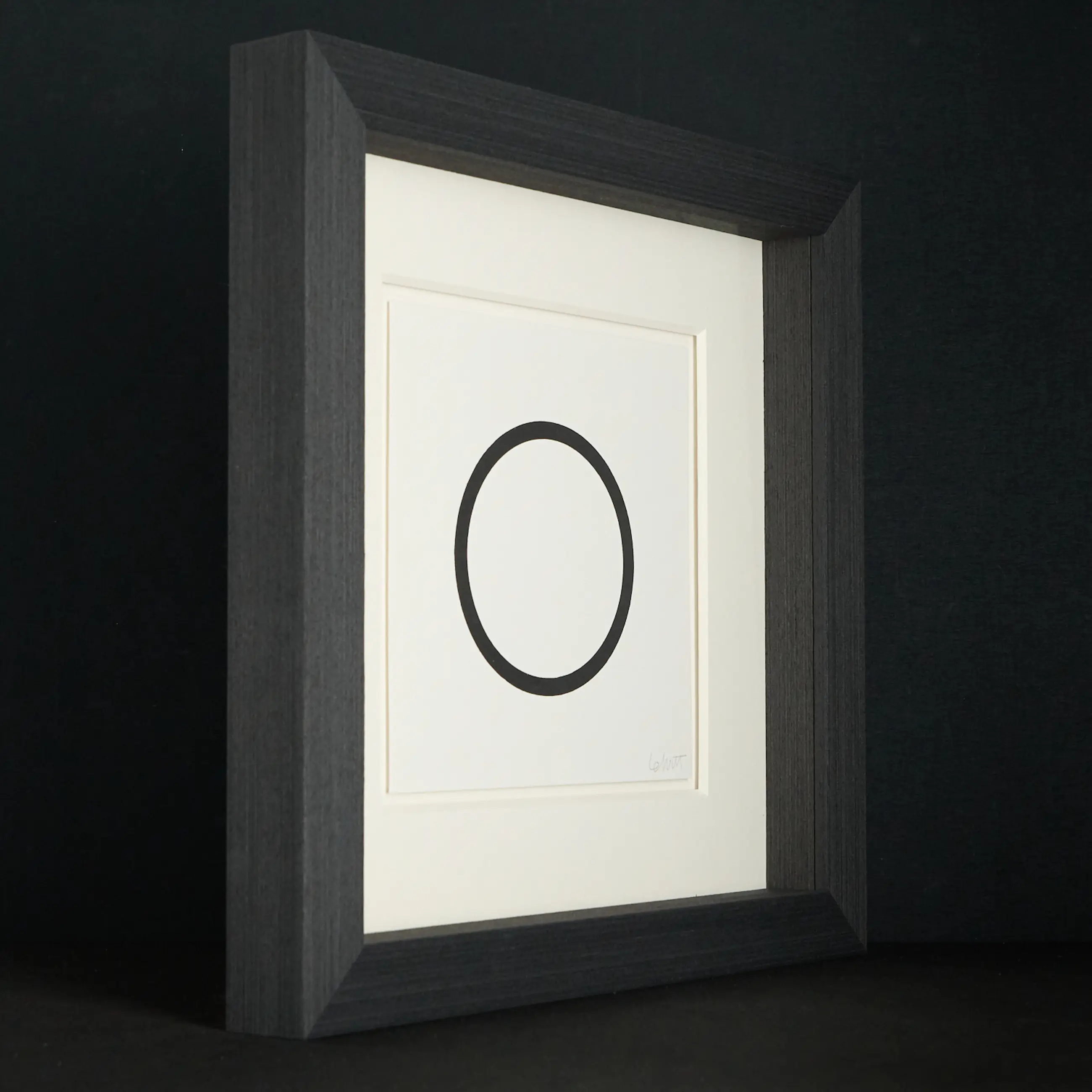 Das Werk wurde fachmännisch gerahmt. Es ist schwebend montiert in einem maßgefertigten, säurefreien Passepartout, in einem handgefertigten, tiefen schwarzem Holzrahmen aus den Niederlanden, mit UltraVue® ArtGlass verglast – für maximale Klarheit, effektiven UV-Schutz und minimale Spiegelung.