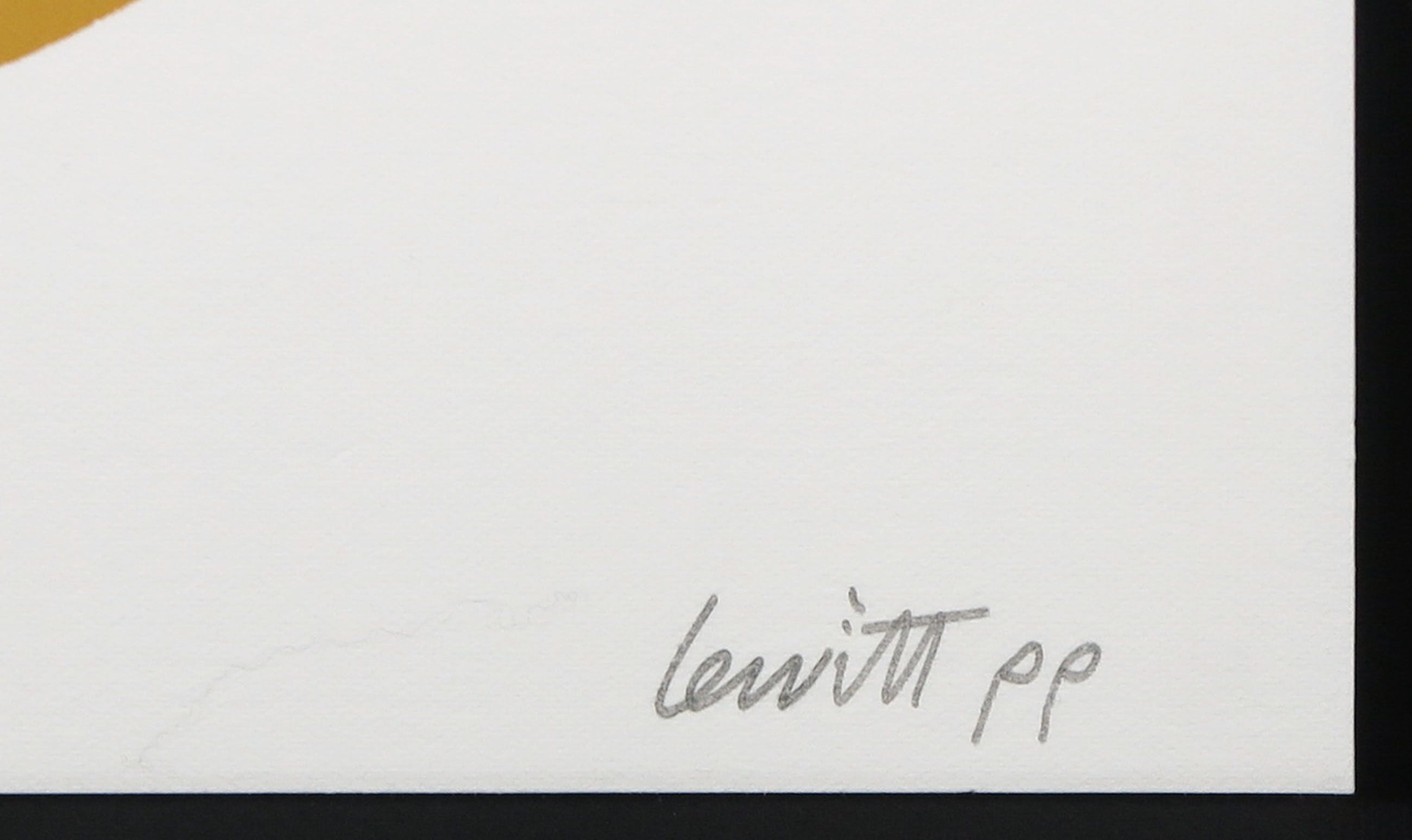 Zeefdruk uit de serie 'Five Geometric Figures in Five Colors'. In de hoek rechtsonder gesigneerd en genummerd (P.P.).