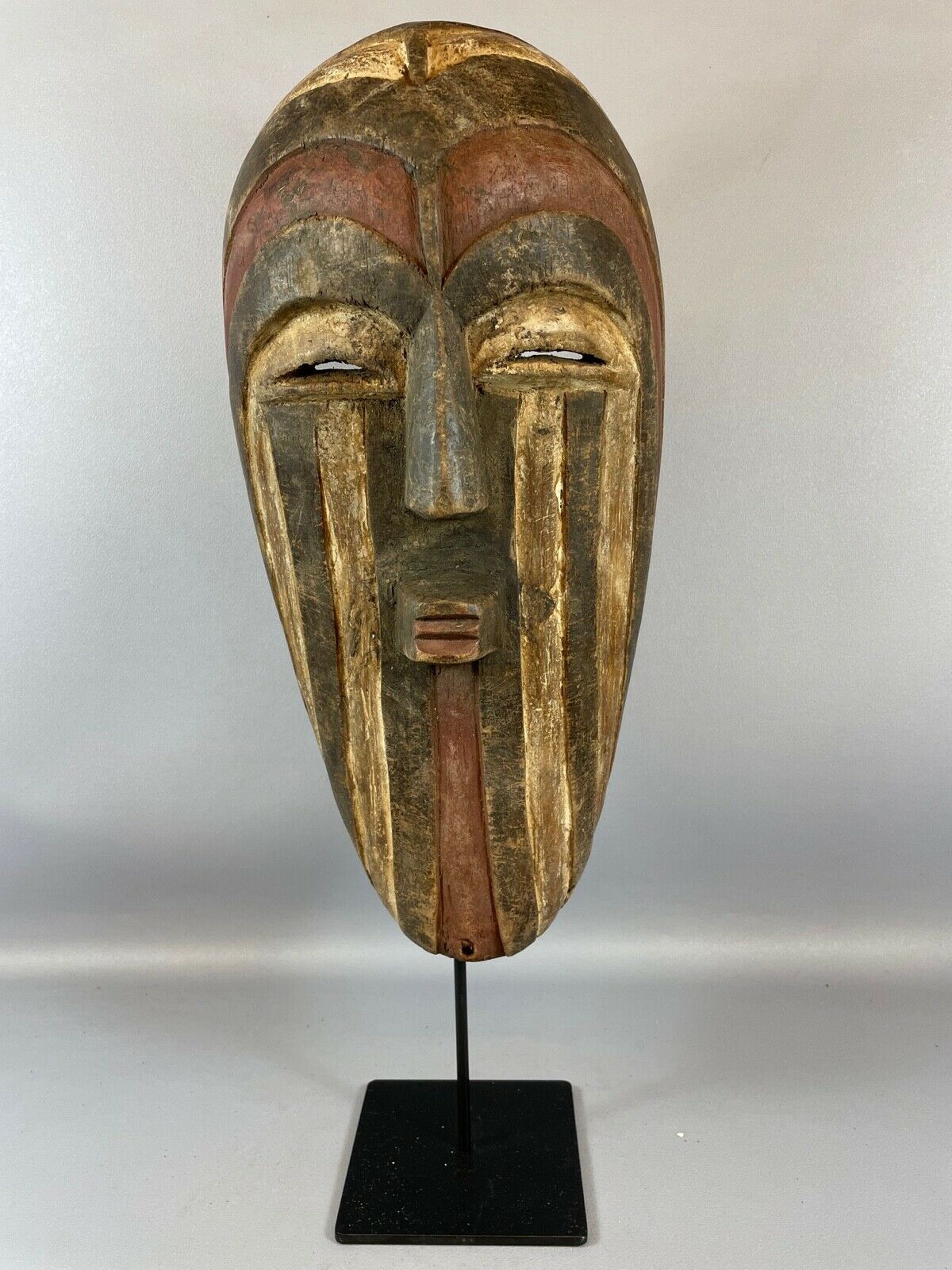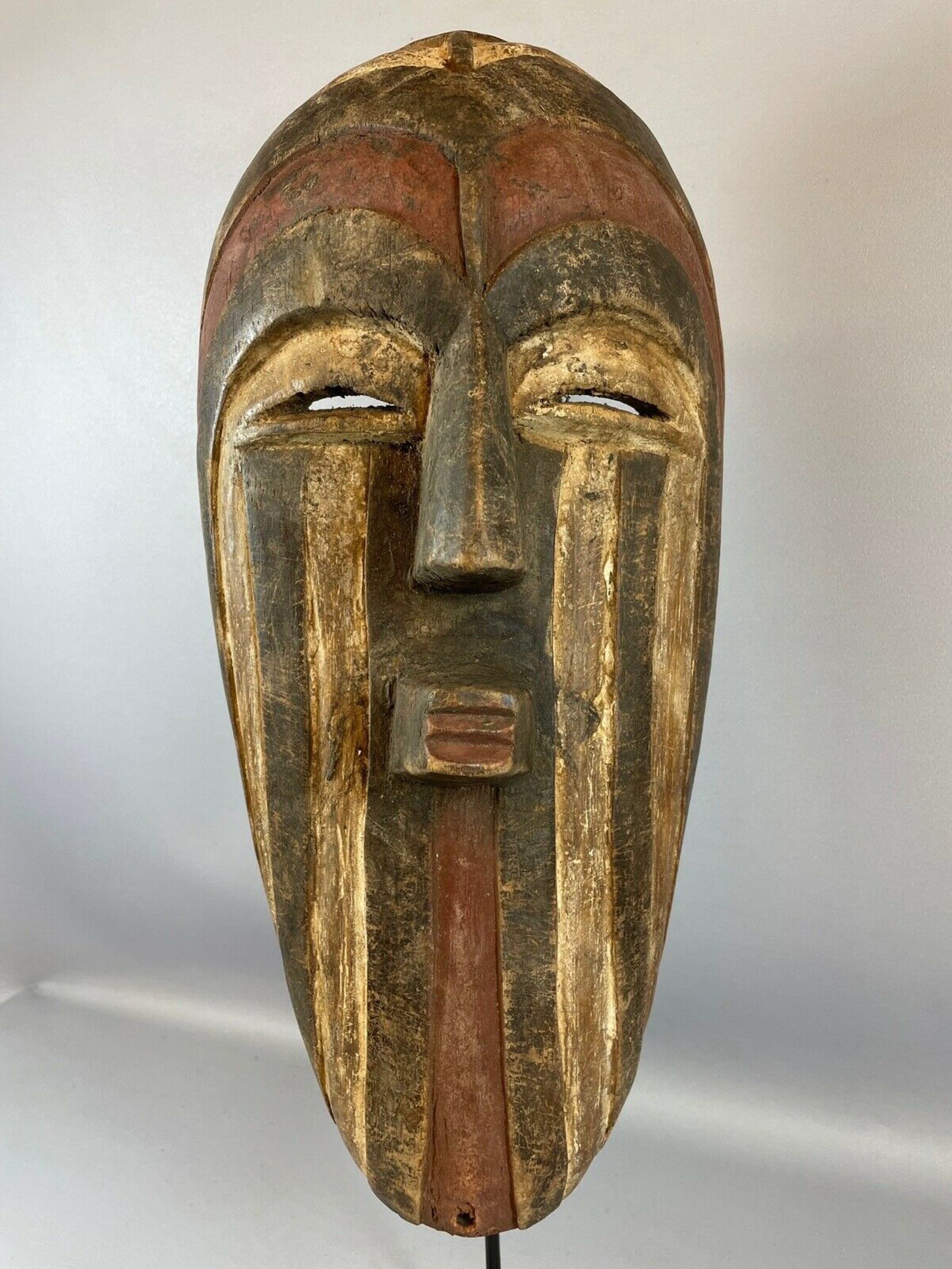 Expressive african male bird mask from the Songye, Congo, with extremely abstract face.