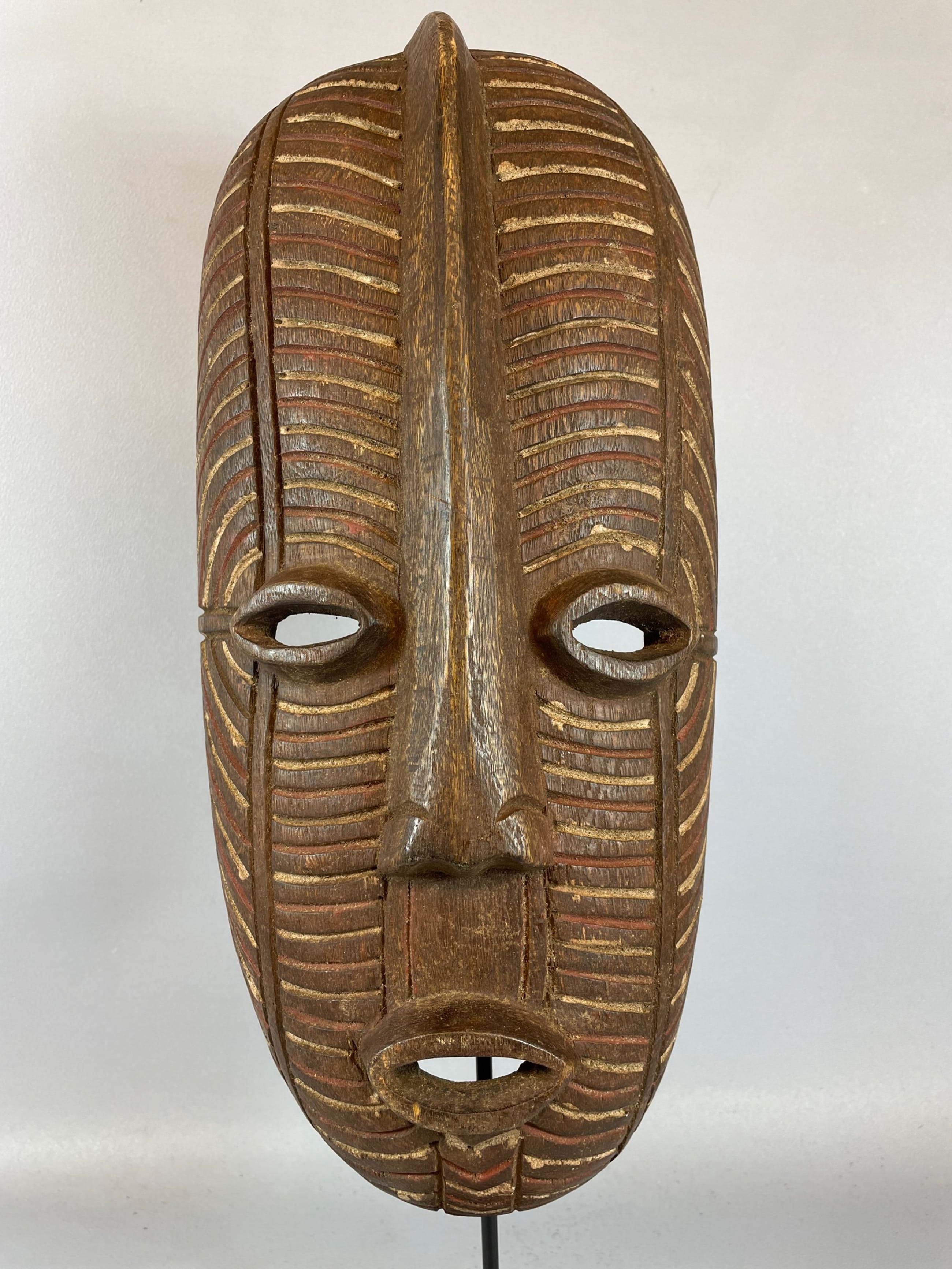 This type of mask serves the Kifwebe secret society and embodies a protecting spirit.