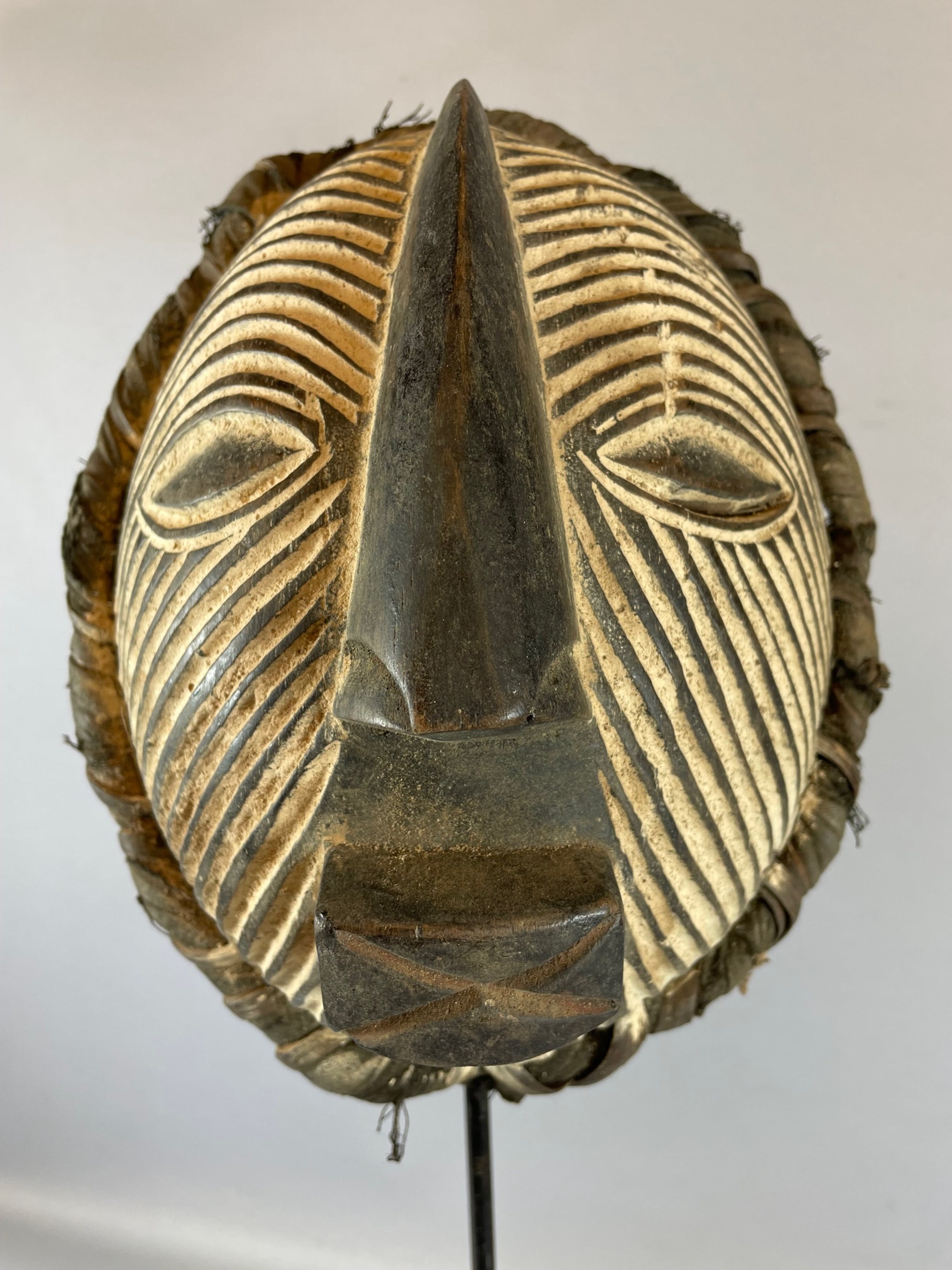 This type of masks serves the Kifwebe secret society and embodies a protecting spirit.