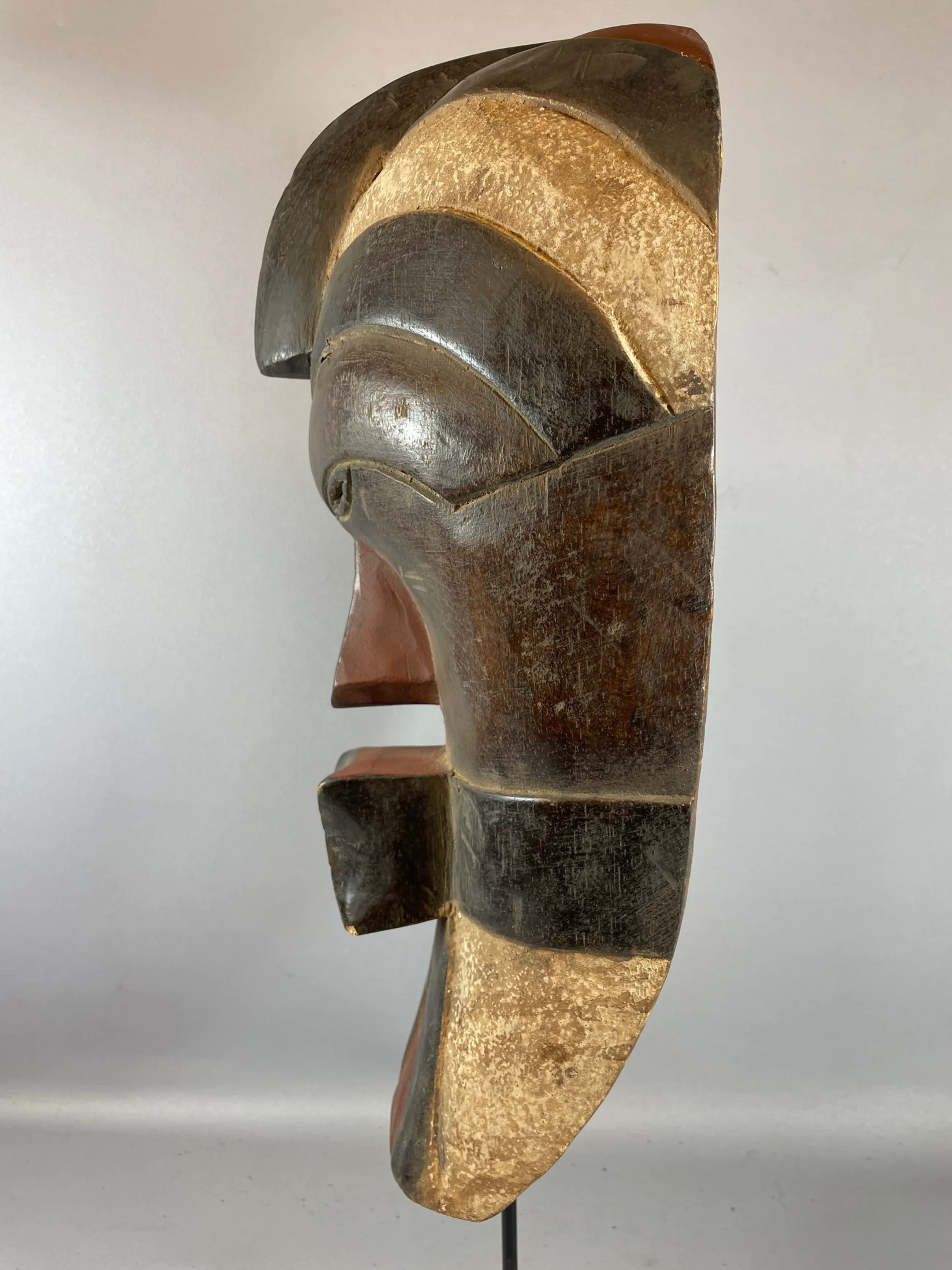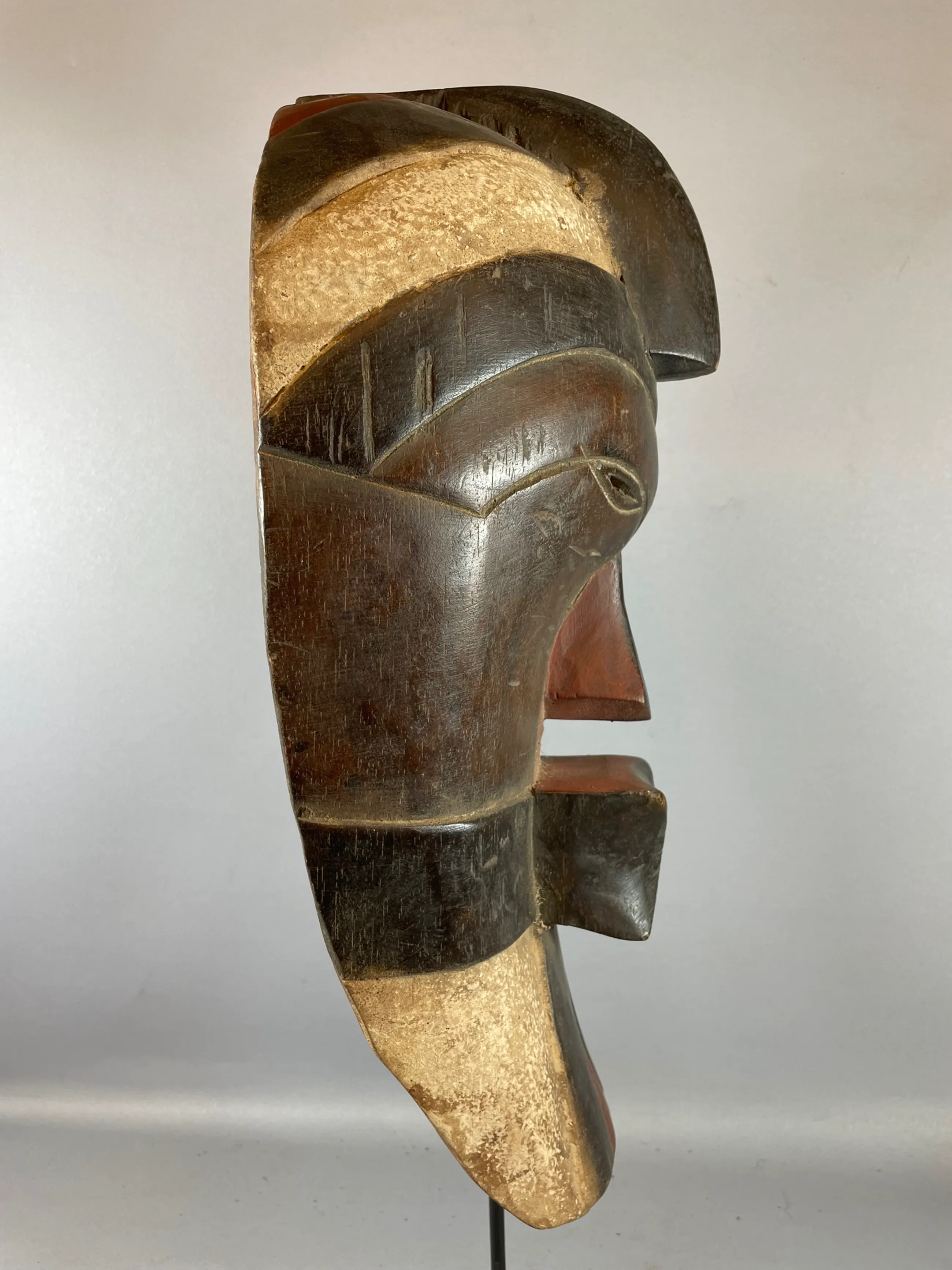 Expressive african male bird mask from the Songye, Congo, with extremely abstract face.