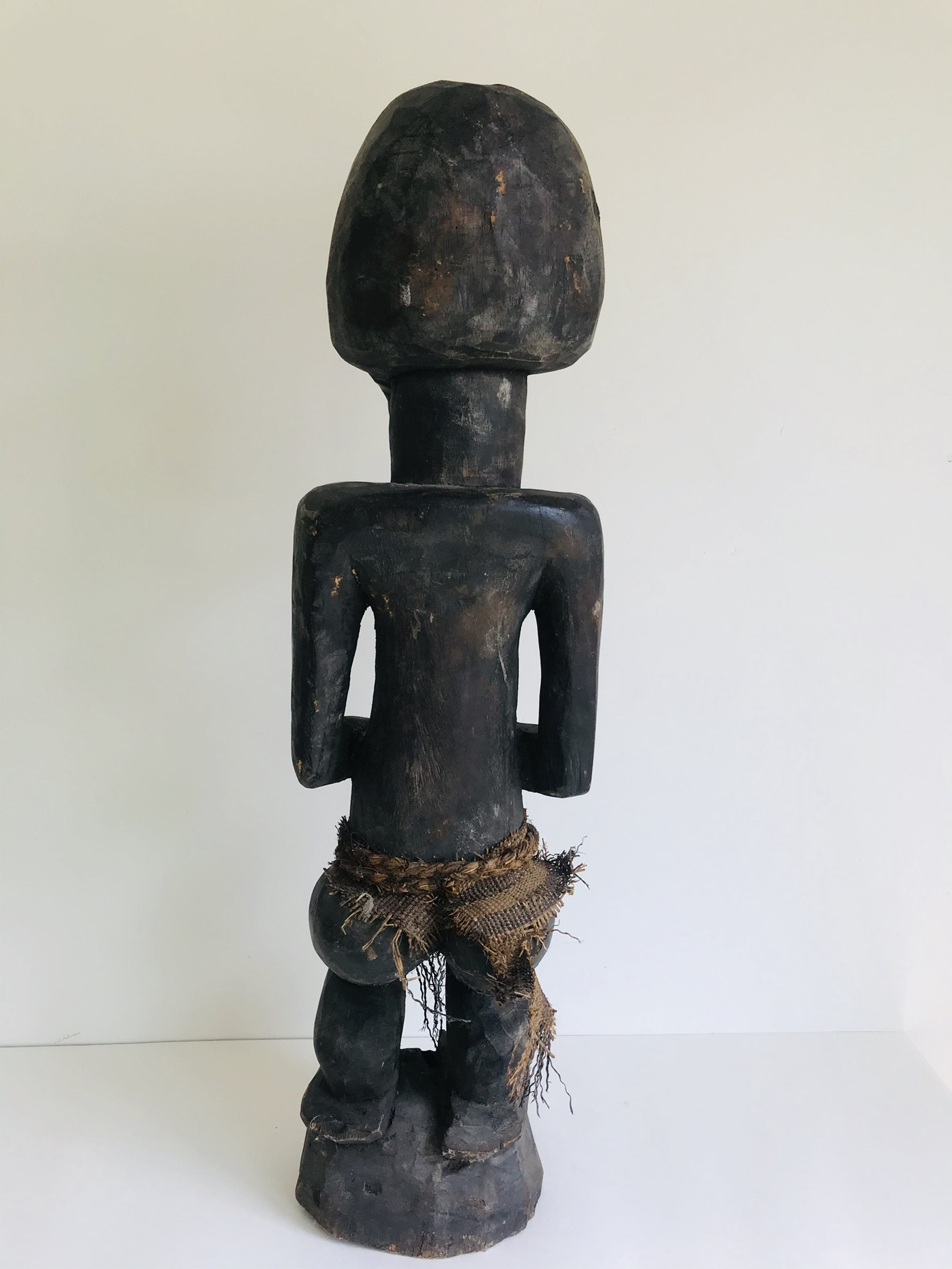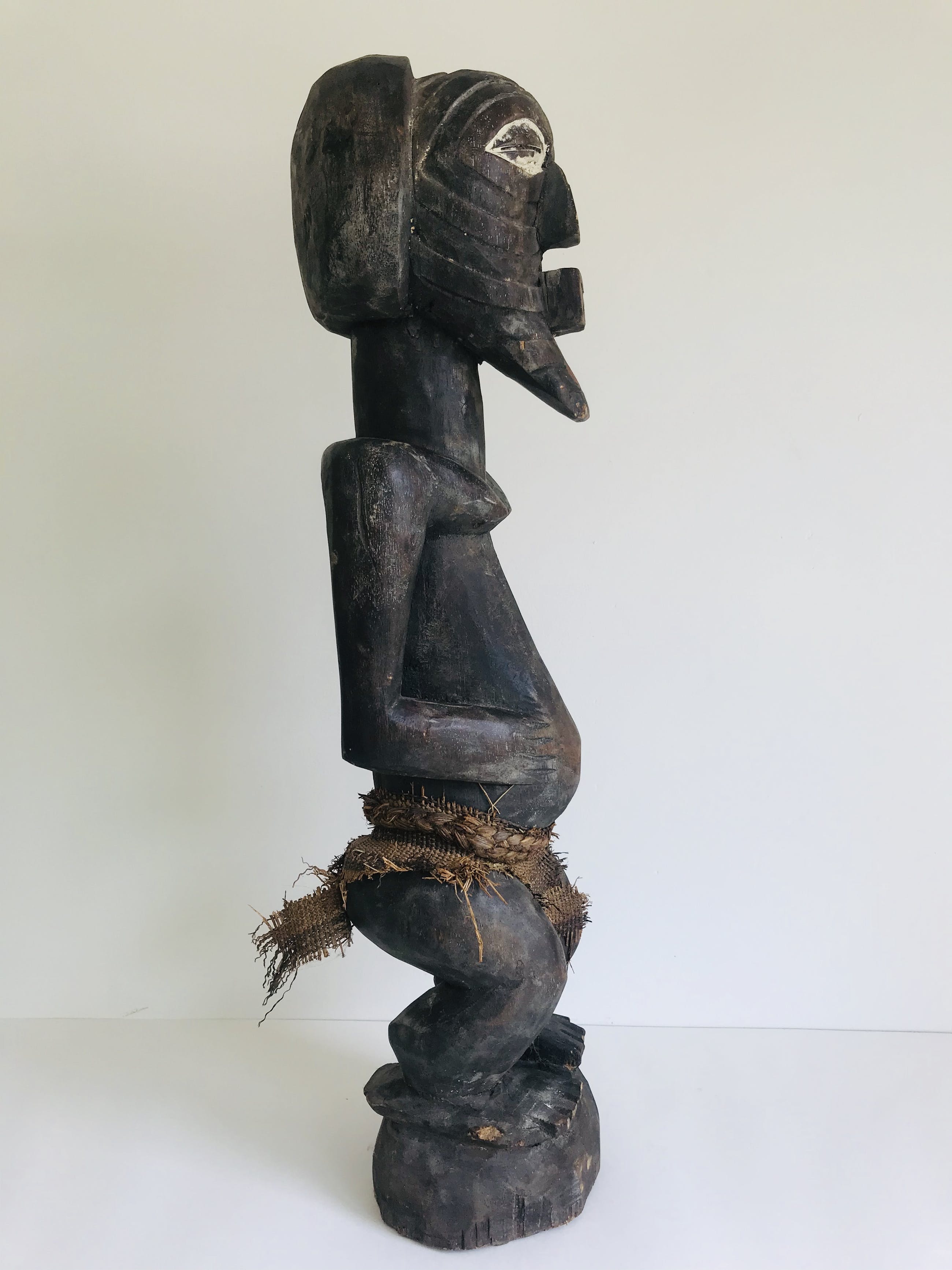 Groot Songye-figuur met Kifwebe masker uit de Democratische Republiek Congo. Net als de Luba zijn de Songye befaamd om het maken van ceremoniële maskers, figuren en overige ceremoniële objecten. De kracht van de maskers en beelden komt bij de Songye niet van de makers maar van de leiders (Sultani Ya Muti)