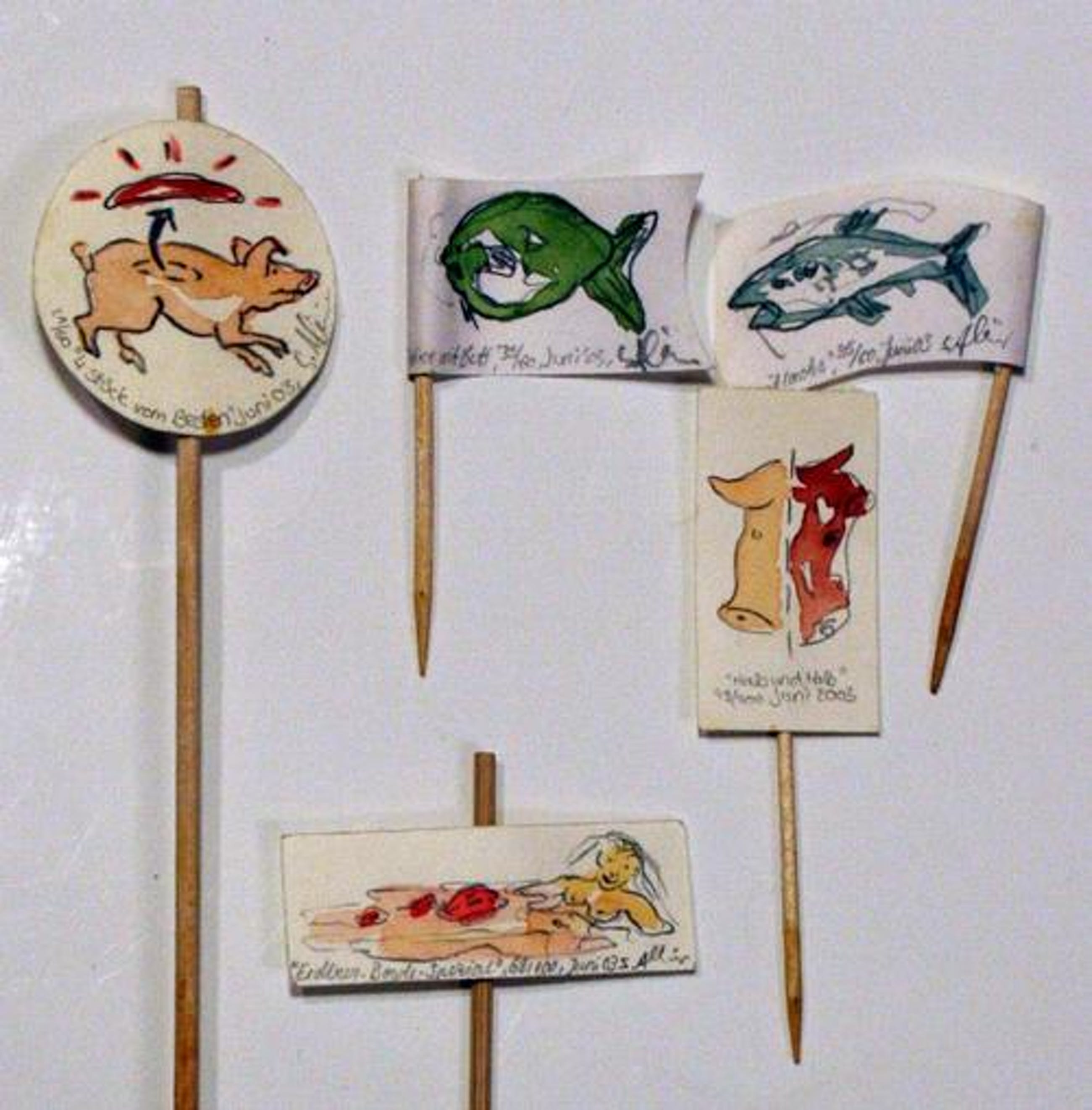 Sie dienten bei einer Performance in der Deutschen Ausgleichsbank im Jahr 2003 als Spießchen für Häppchen.