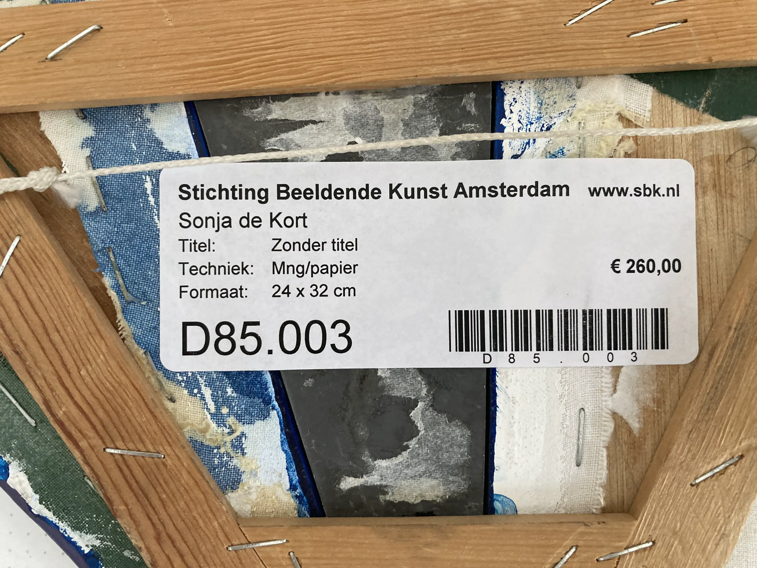 Mooi abstract werkje van Sonja de Kort. Was lange tijd onderdeel van de collectie van het SBK.