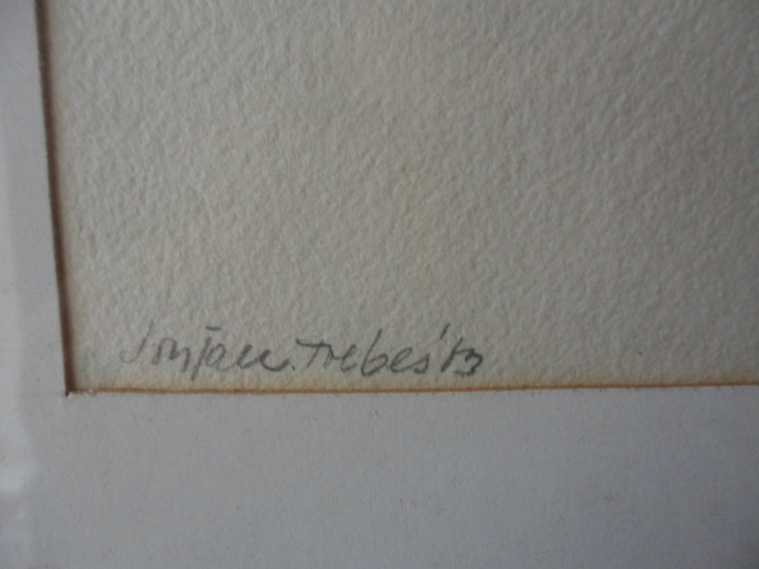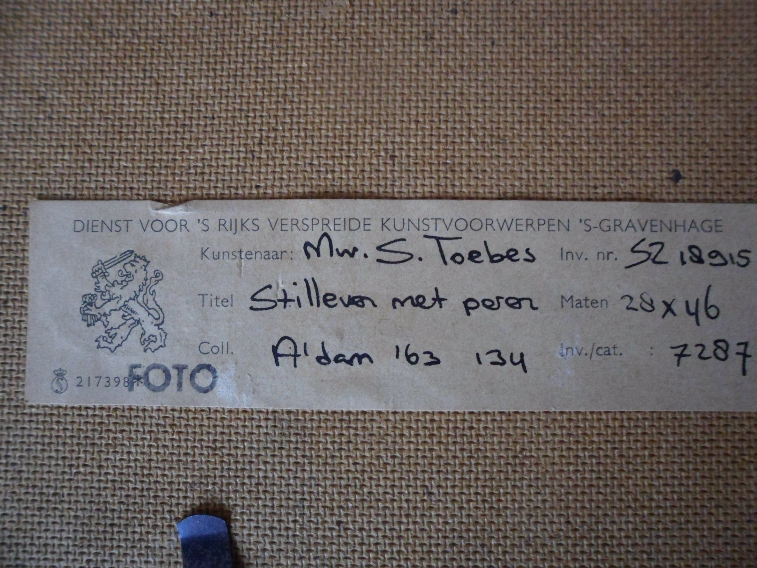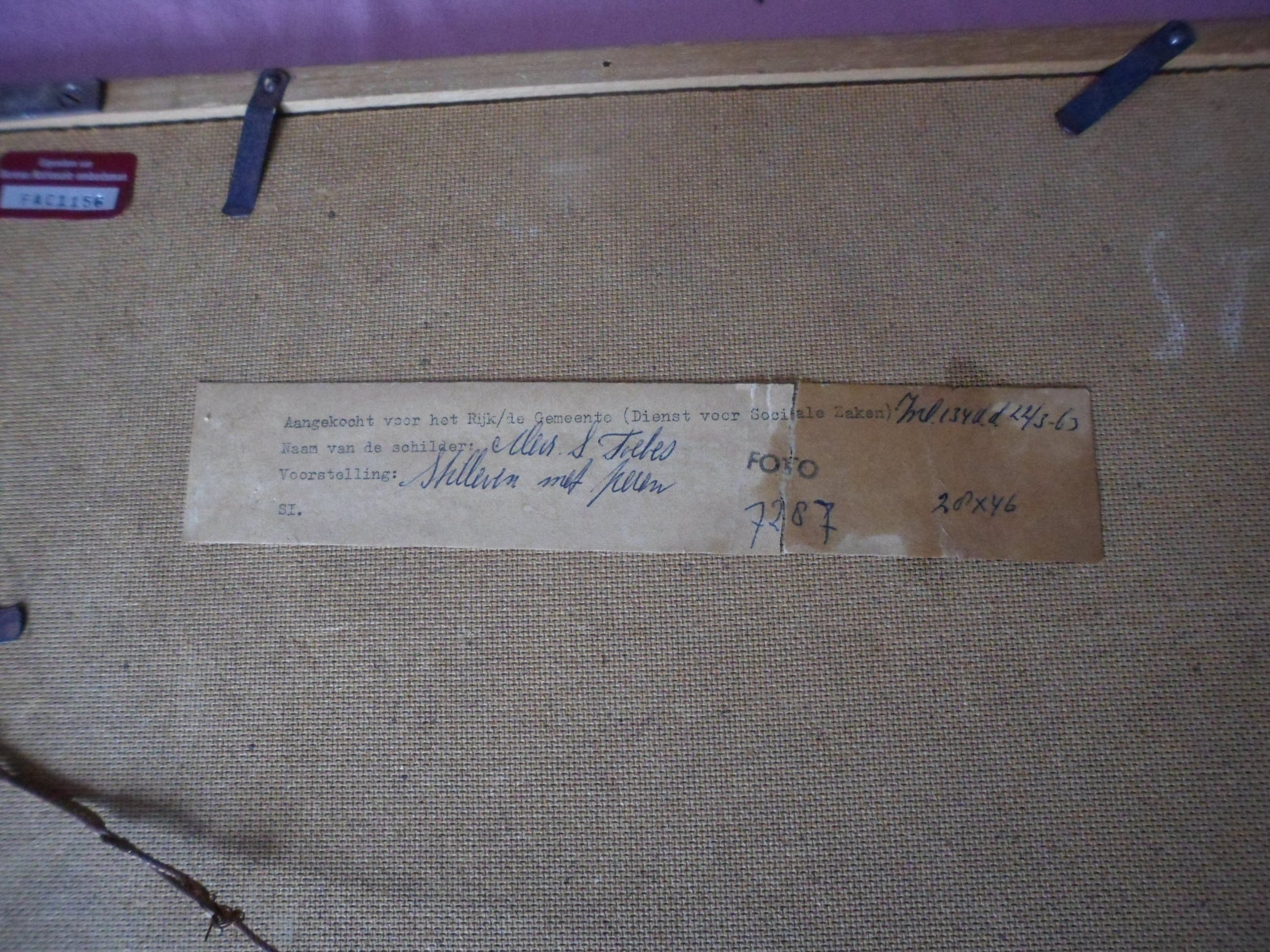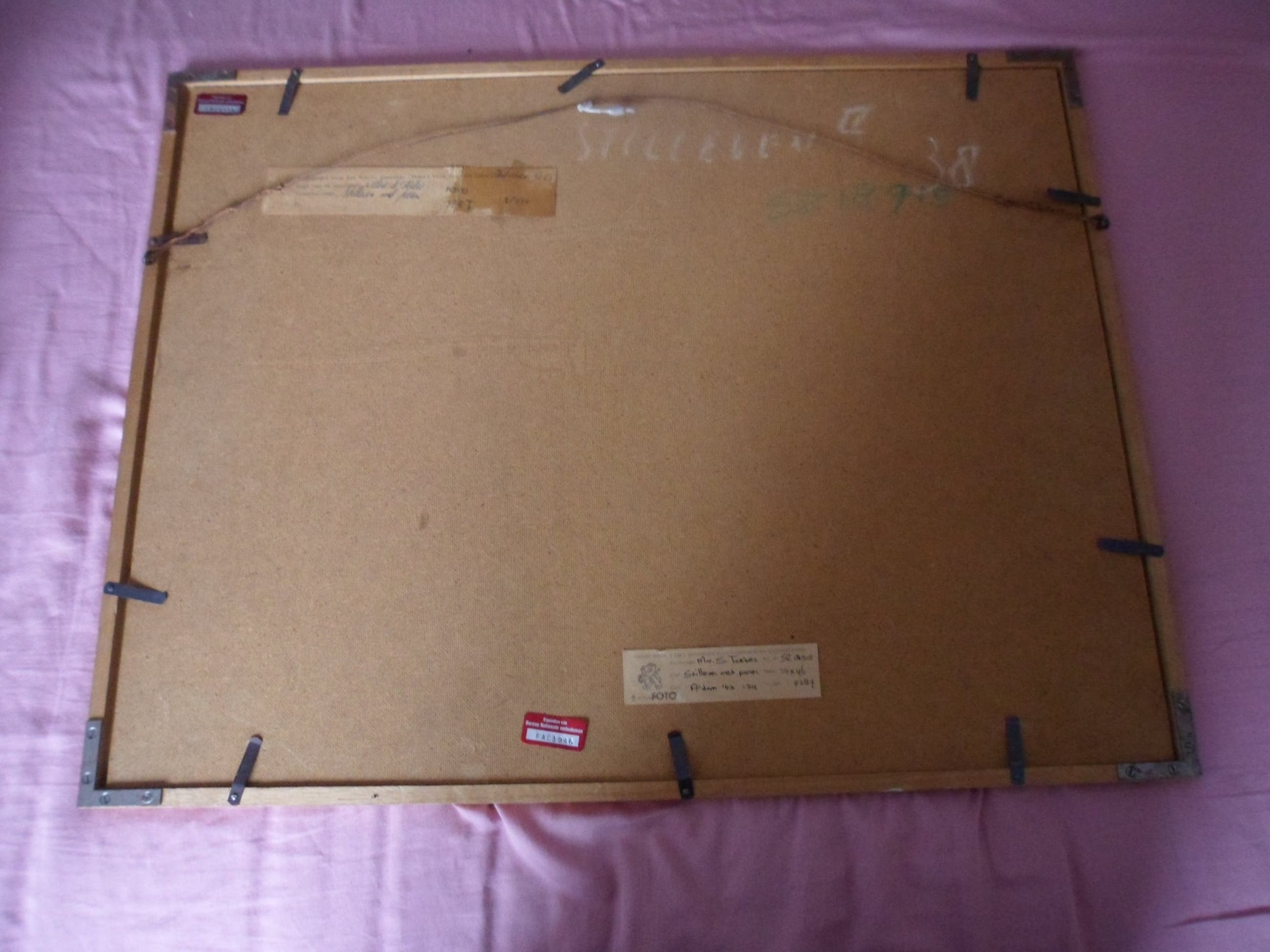 Achter op de Aquarel staan de gegevens van Dienst voor s'Rijks verspreide Kunst voorwerpen 'Gravenhage, met de naam van de kunstenaar en titel en meer gegevens.