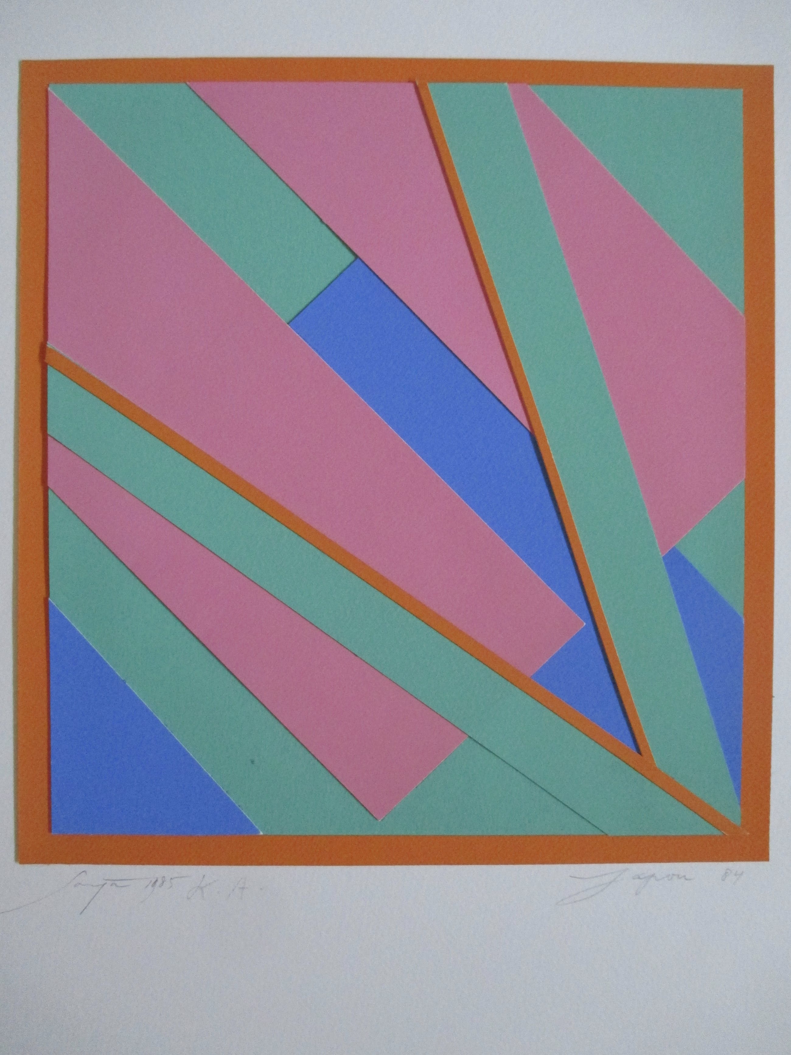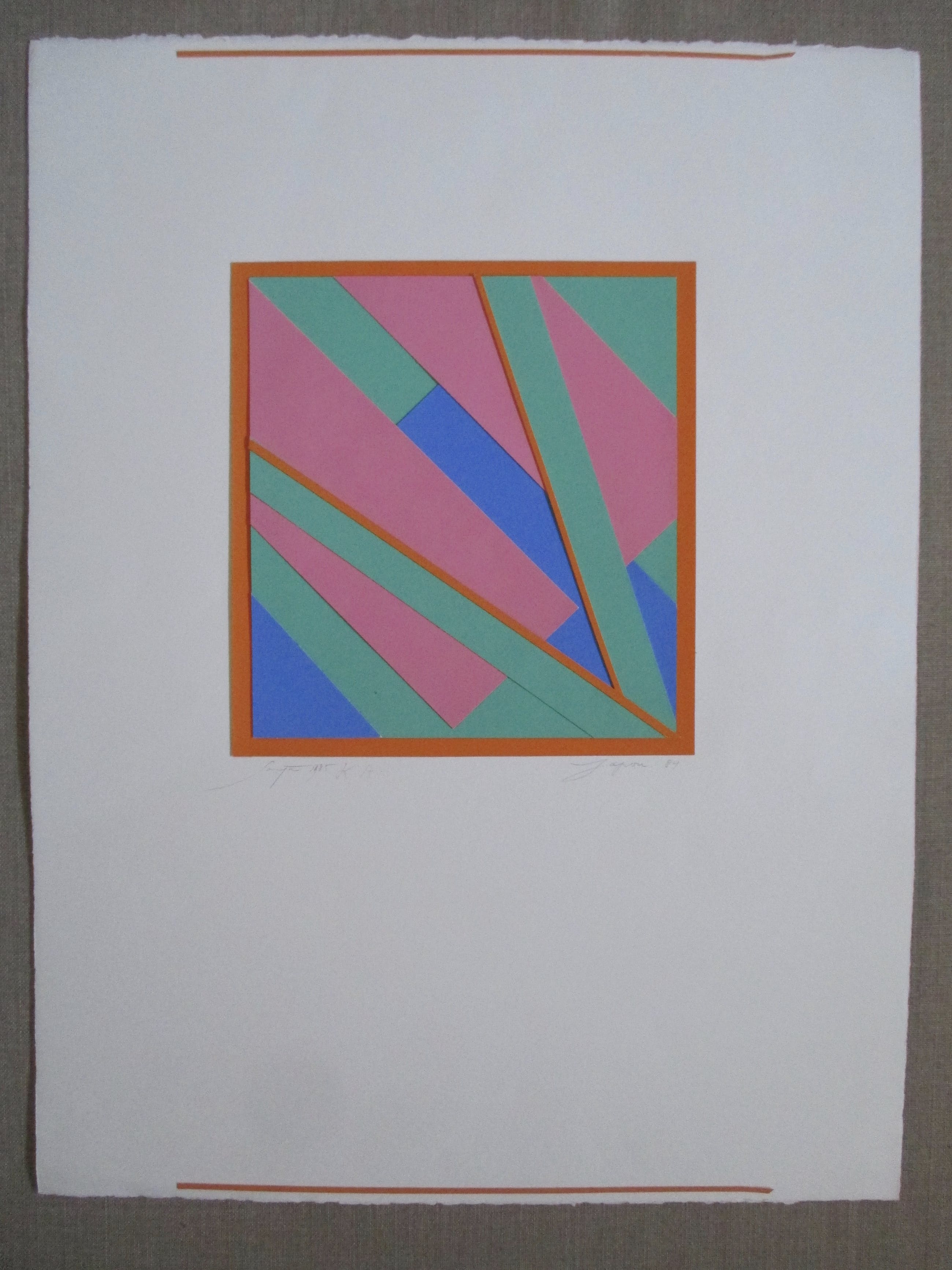 Collage op geschept papier van Sonja Vincent-Nienhuis. Gesigneerd, gedateerd en getiteld in potlood.Verzending tussen twee platen, 9 euro, aangetekend 10,65