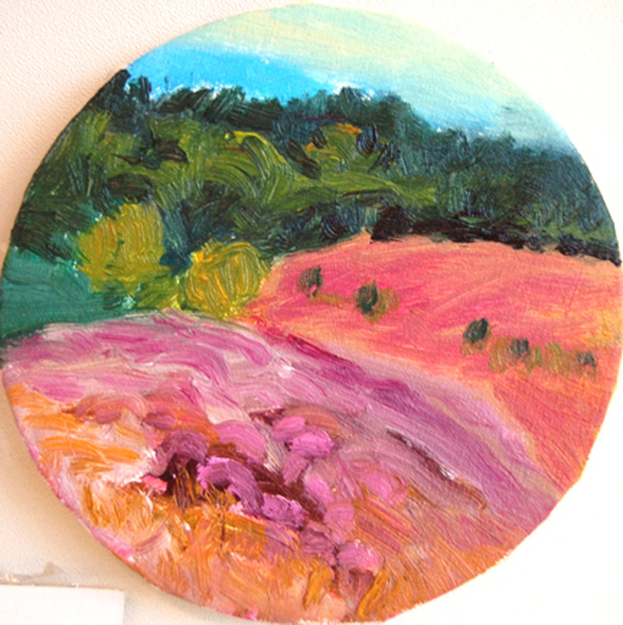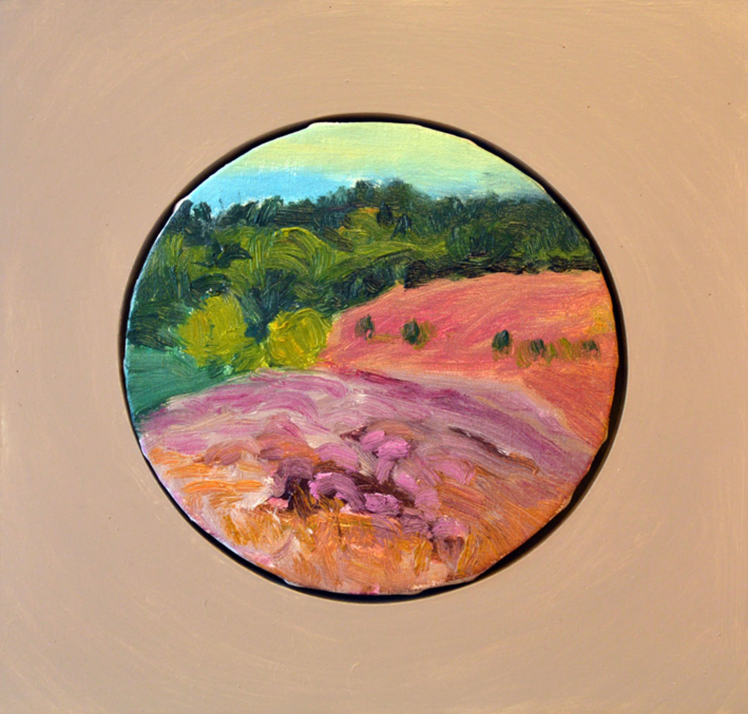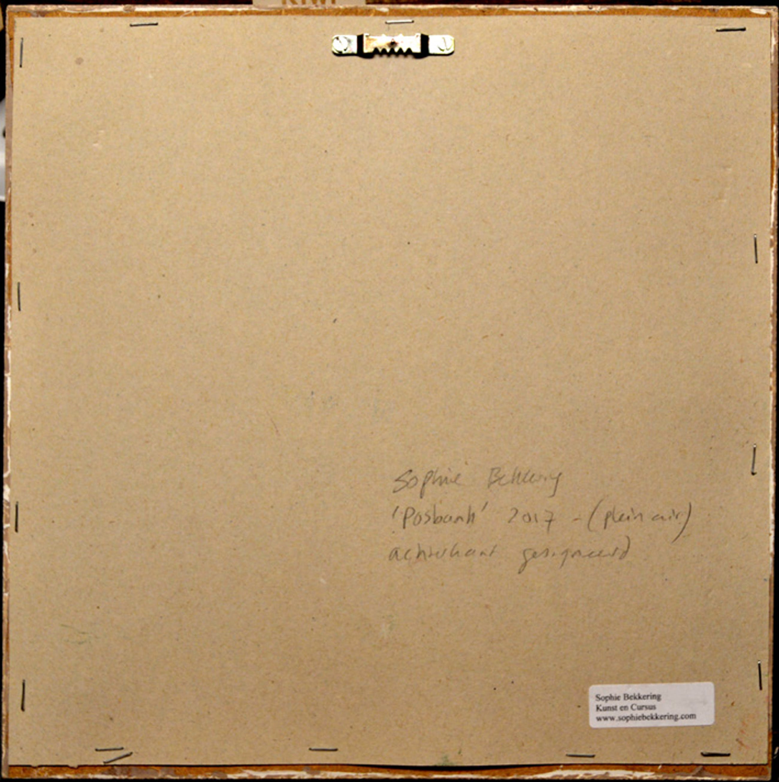 Plein air geschilderd in natuurgebied en heidelandschap 'De Posbank' Gemeente Rheden ( bij Arnhem), Gelderland Verzonken ingelijst in 1,5 cm. dikke MDF plaat, warmgrijs geschilderd
