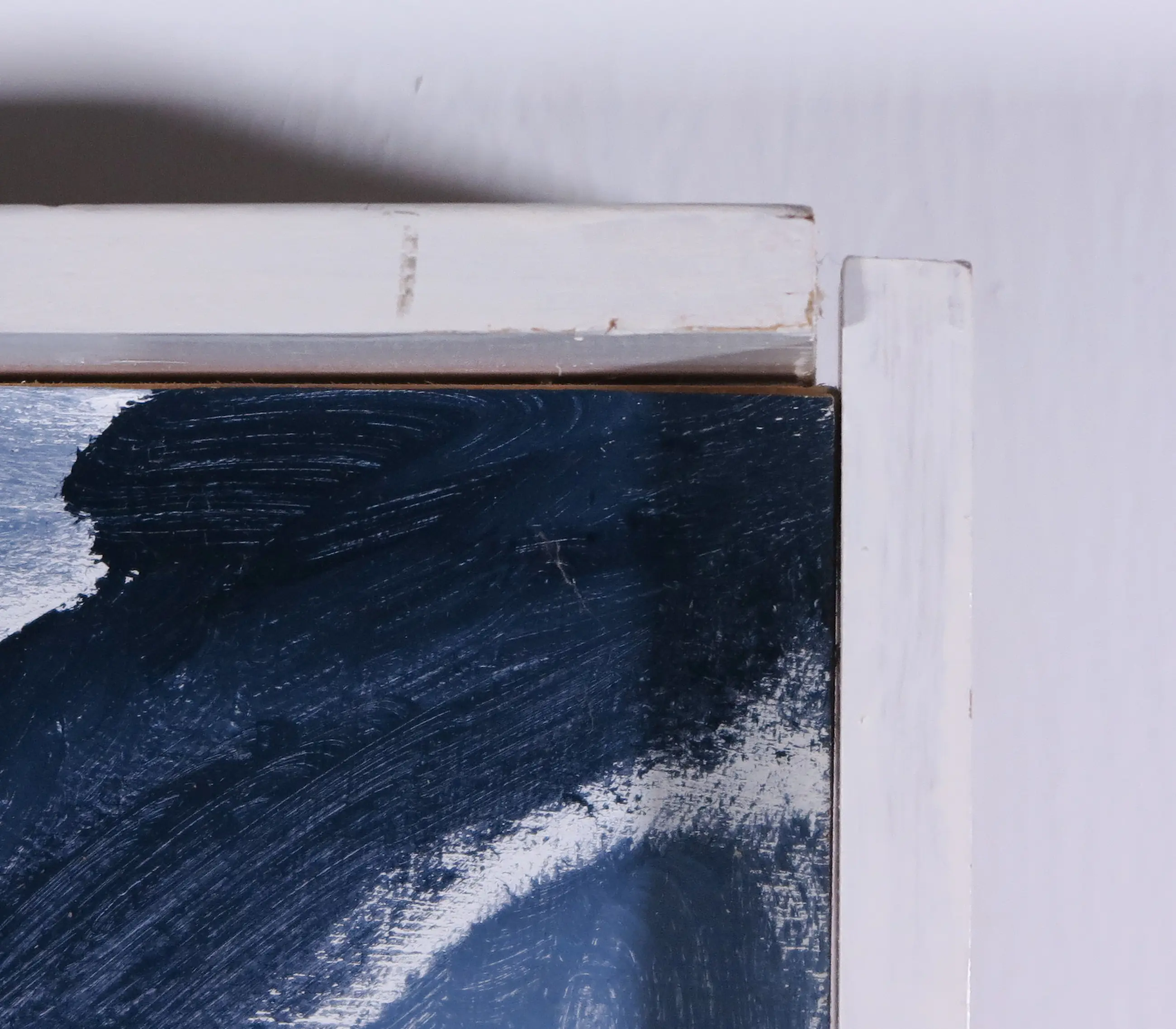 | De lijst zit een klein beetje los in één hoek. | |