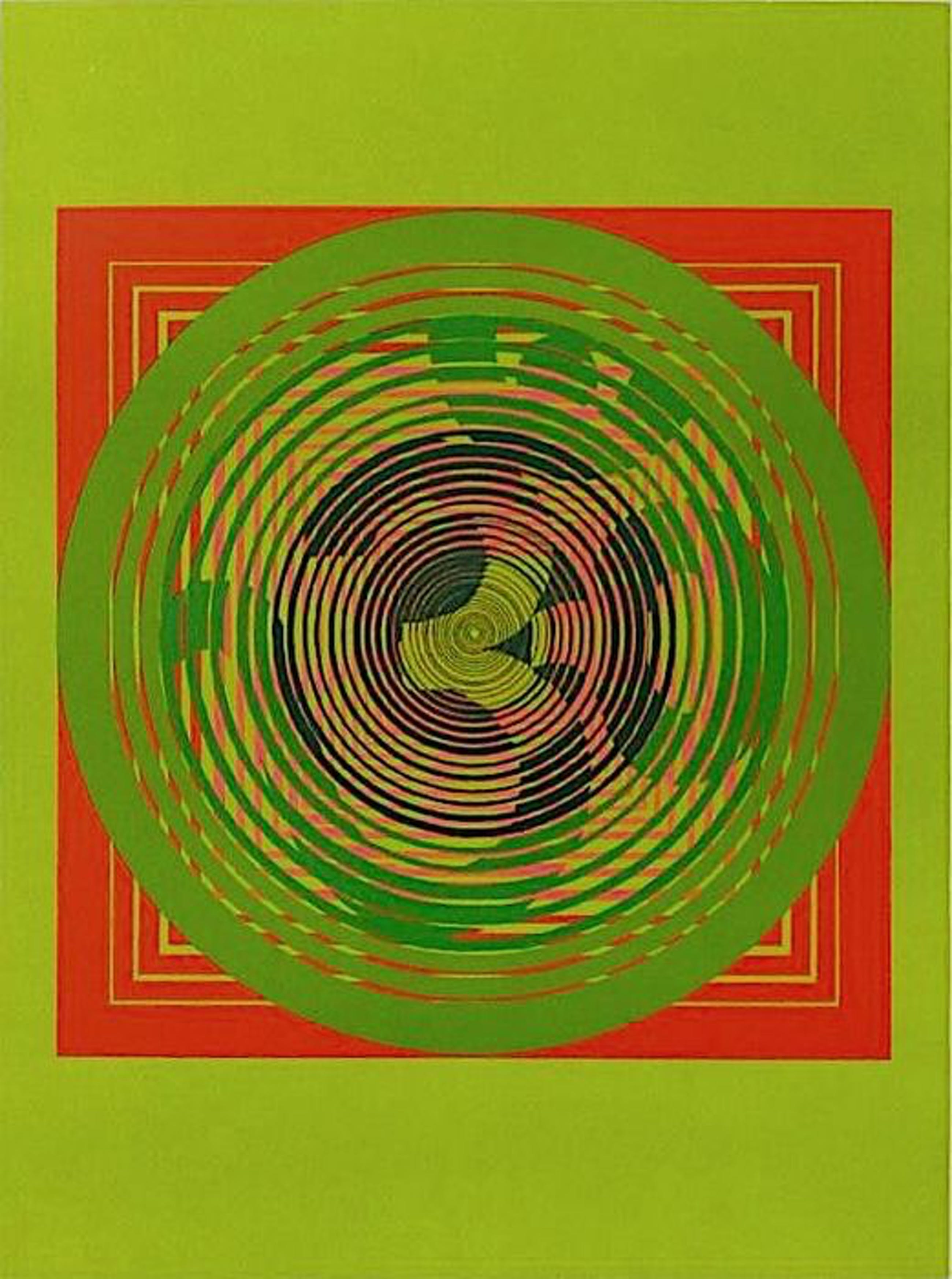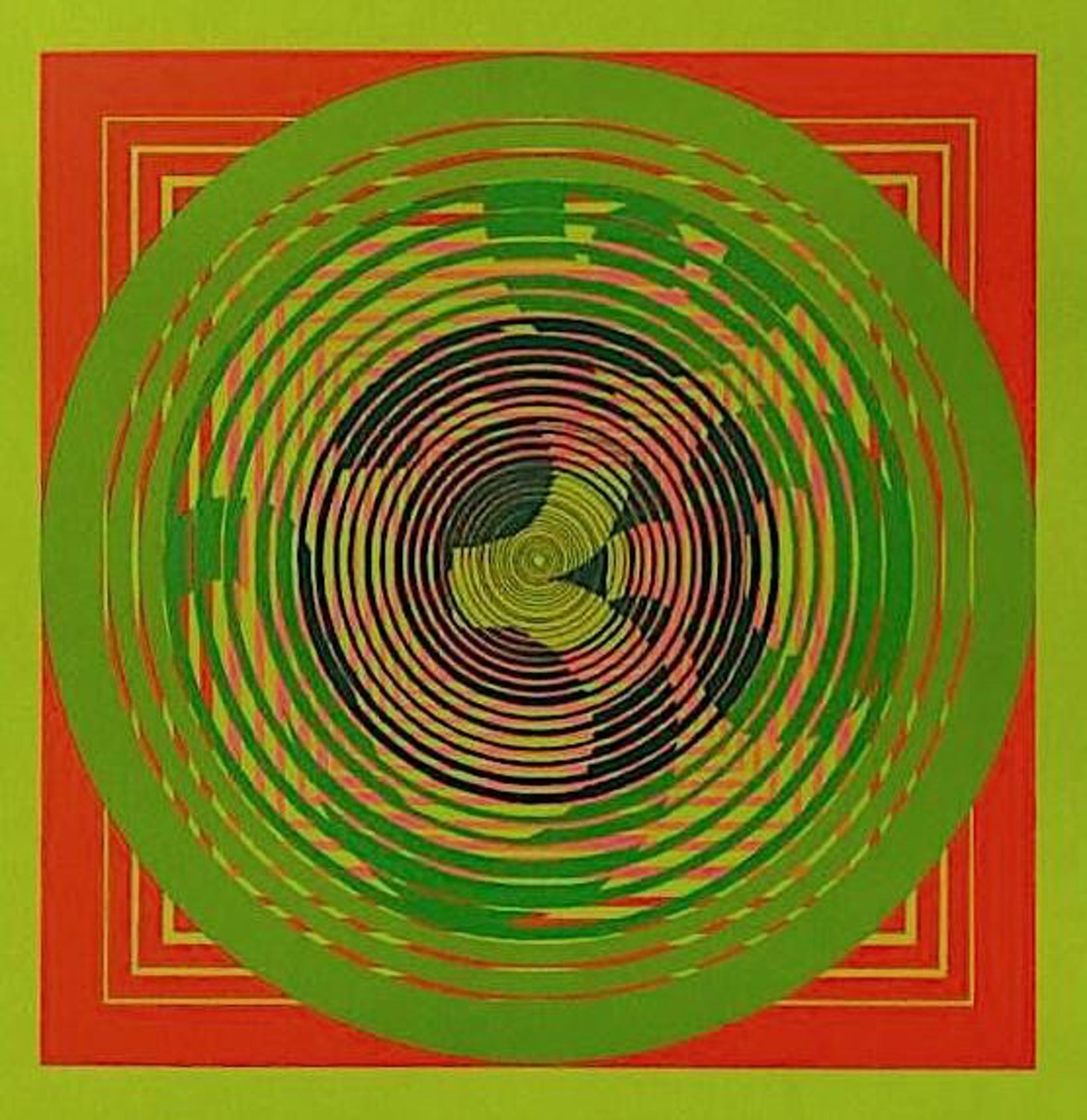 Geometrisch werk van de Indiase Kunstenaar en graficus Shrivastava Narendra In zeer goede gave staat met de originele diepe kleurstelling