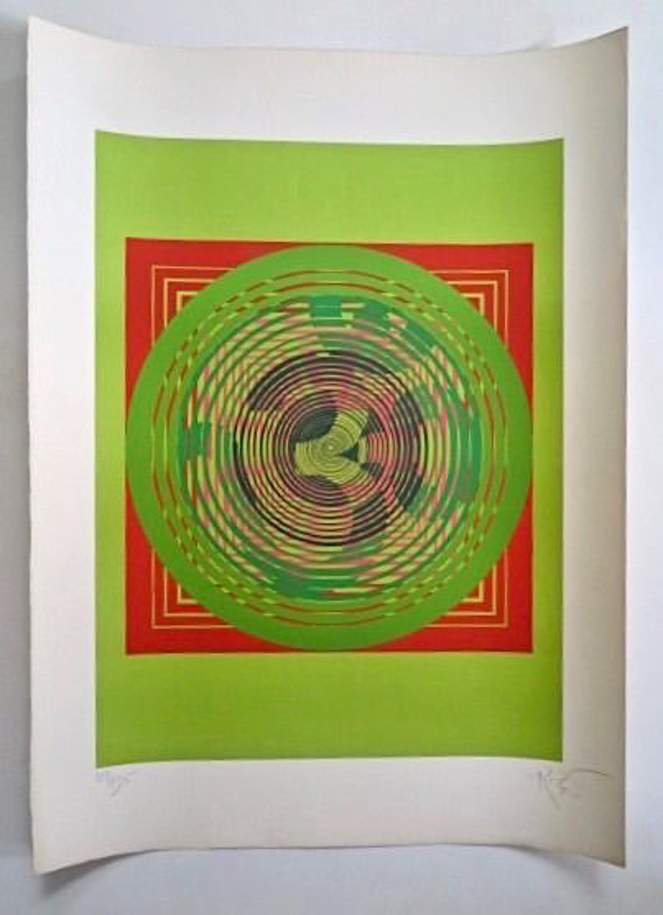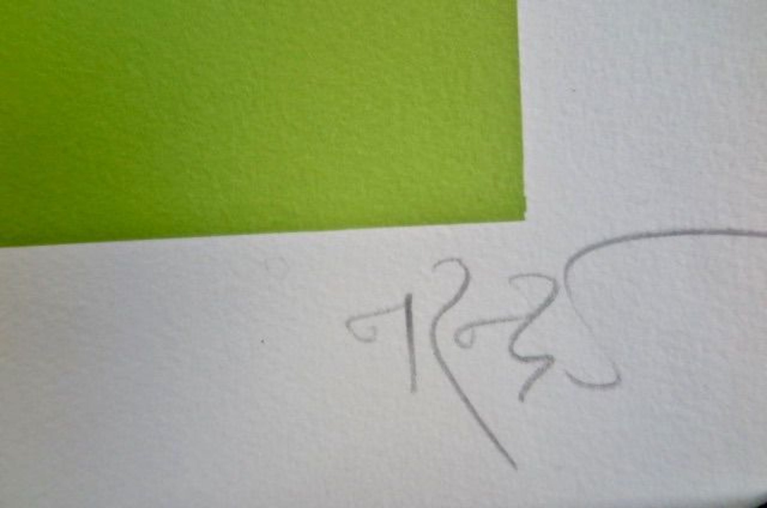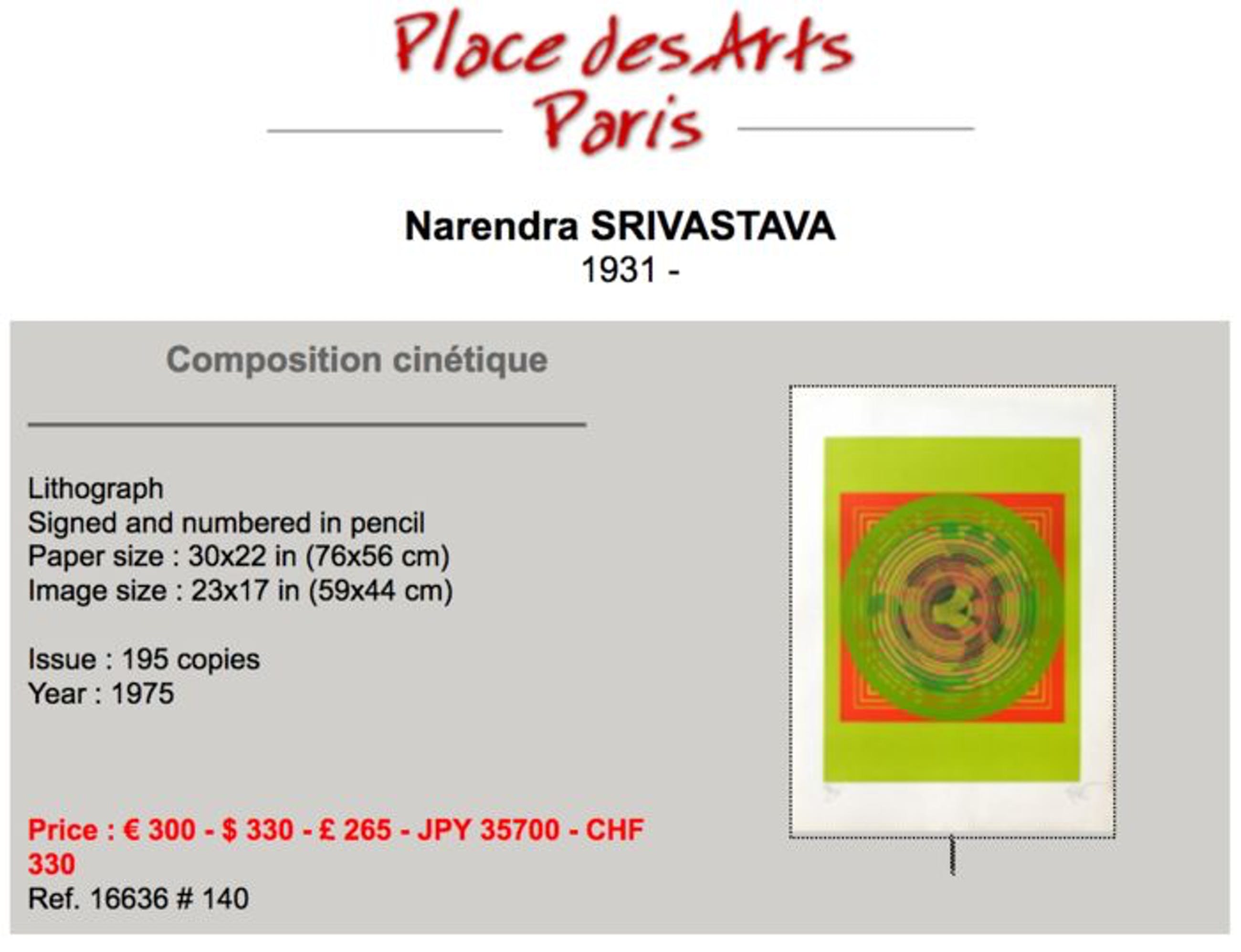 De huidige vraagprijs van deze litho Galerie Place des Arts Paris is €300,- (zie laatste foto) Narendra Srivastava is in 1931 geboren te Delhi, India Bekend door zijn geometrische ontwerpen