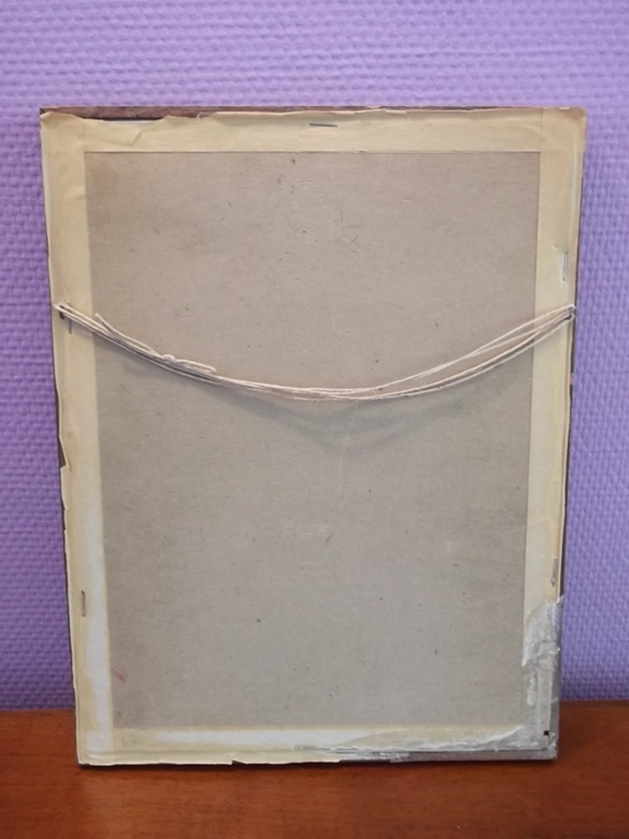Mooie tekening van een stadspoort, achterkant van de lijst zit wat los.