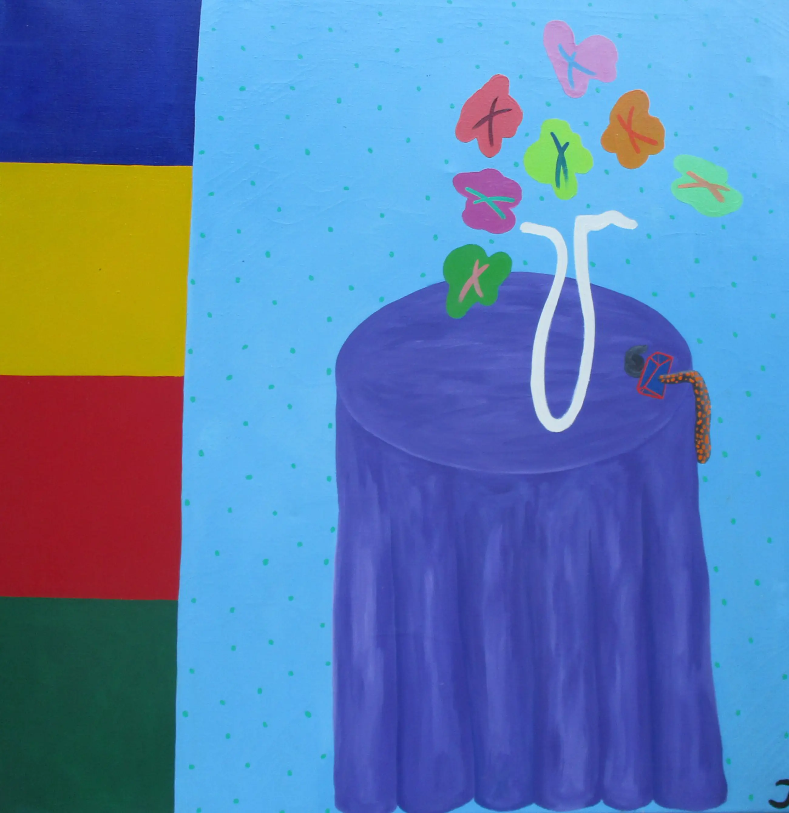 Dit werk is zeer eenvoudig ingelijst. Het werk is linksboven en aan de achterzijde gesigneerd.