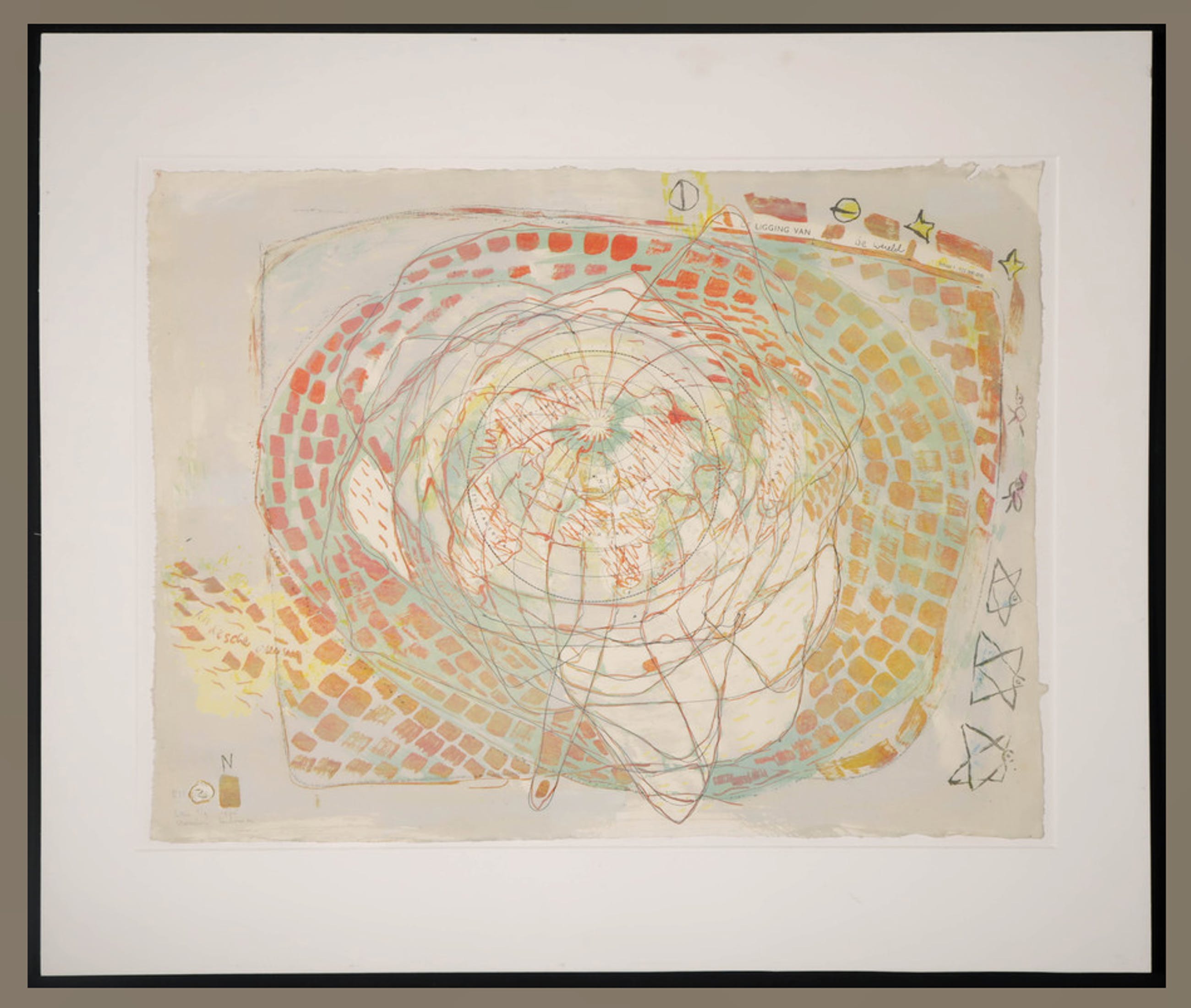 Litho op dun geschept papier, op onderblad achter passe-partout