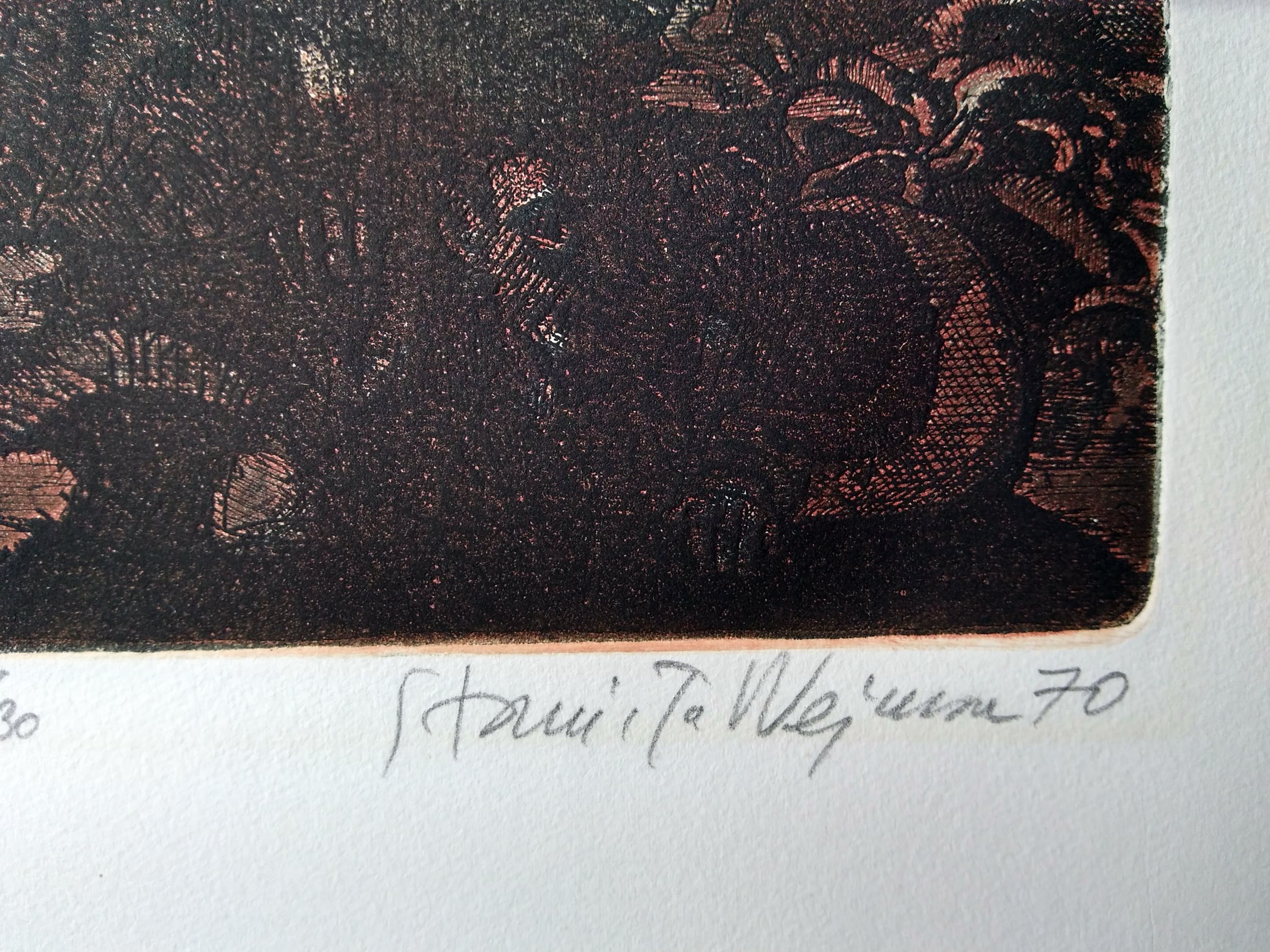 ets aquatint, kleur in dubbeldruk