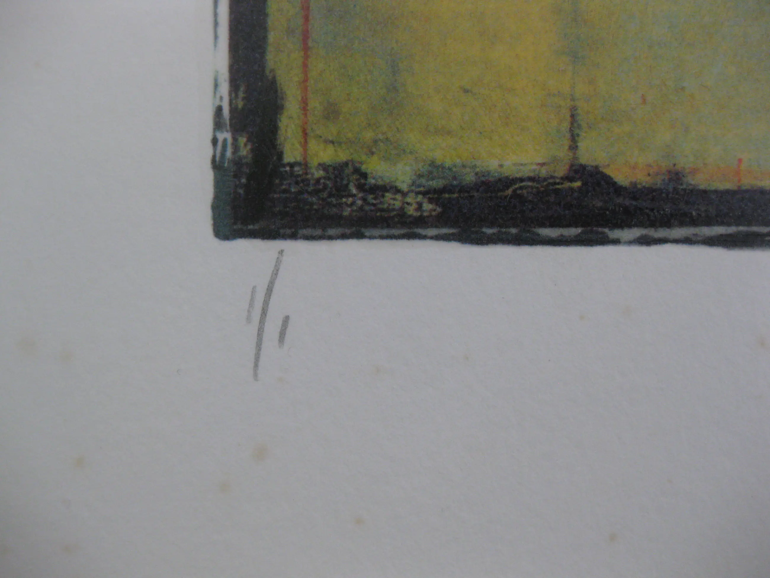 Nog nooit ingelijst geweest. Wel in een map gezeten, waardoor randen niet helemaal perfect meer zijn