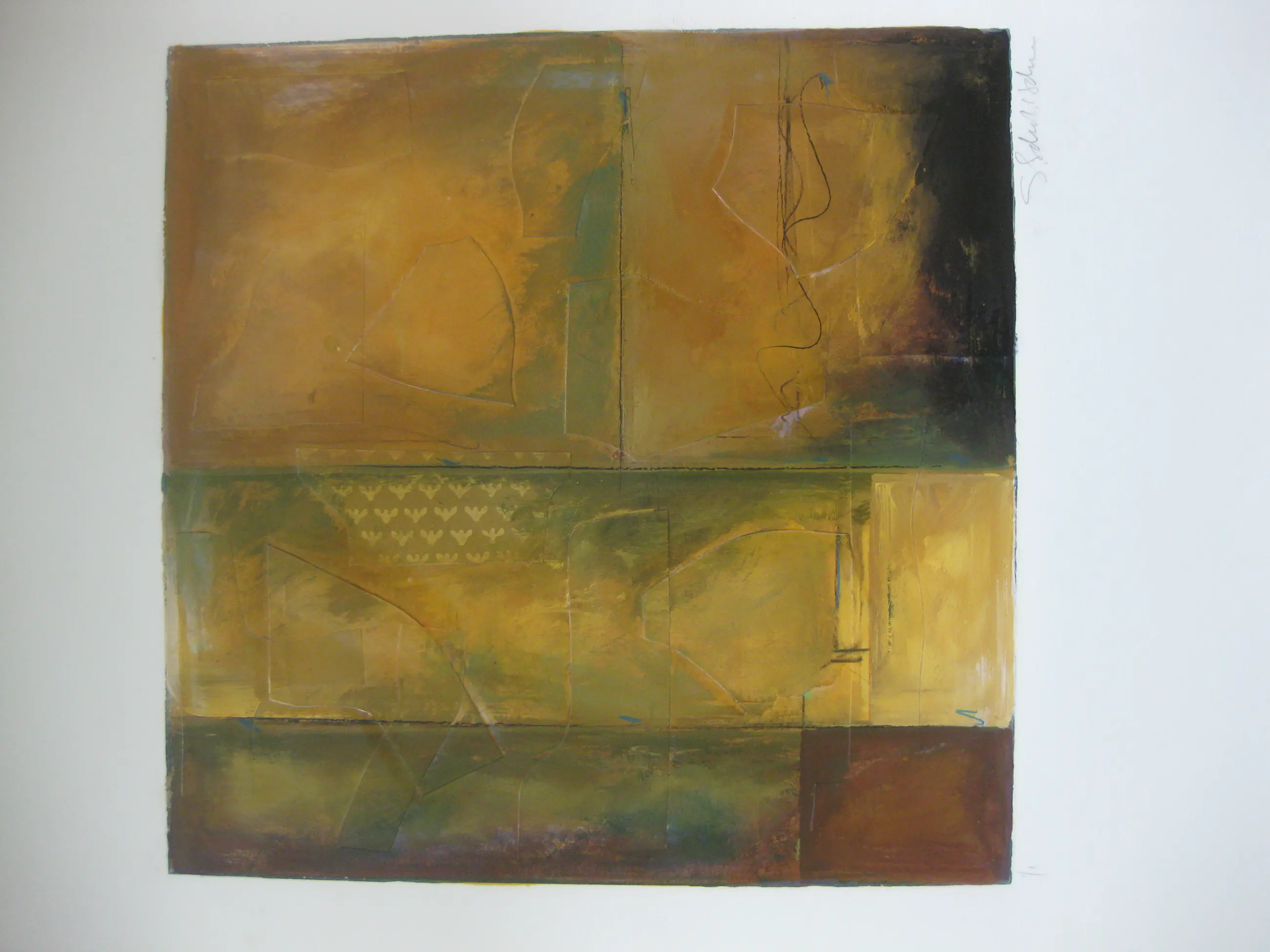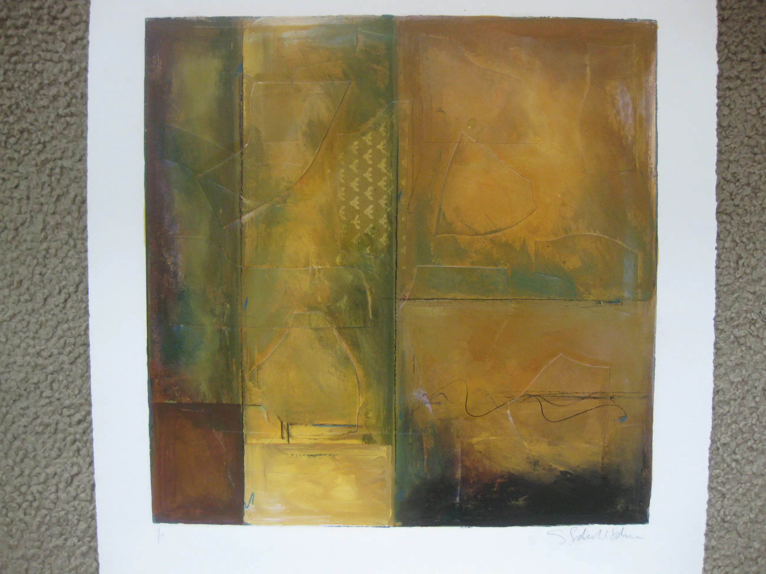 Het witte gedeelte is wat verkleurd, maar zal bij inlijsten toch achter het passe-partout verdwijnen