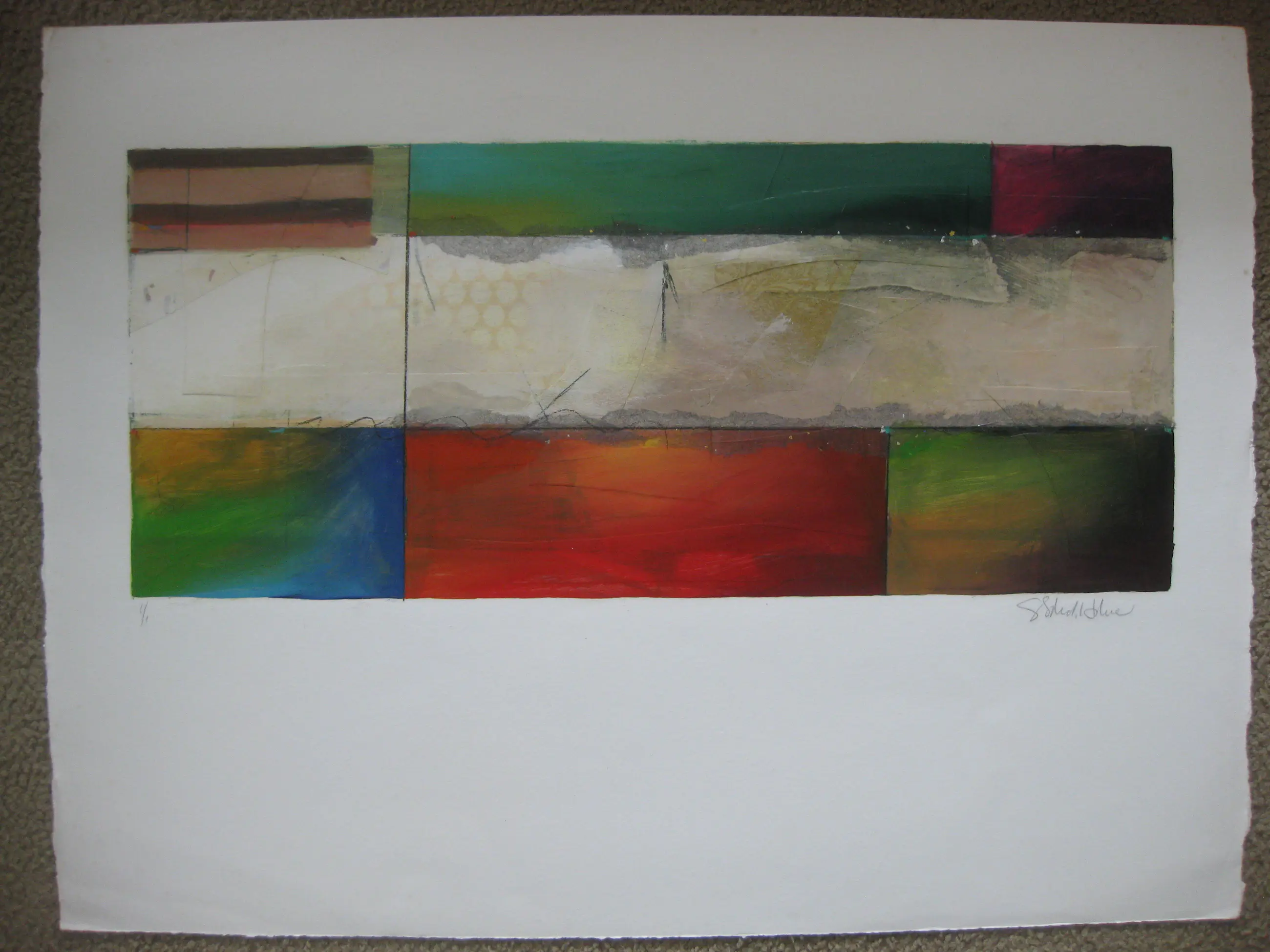 Het werk zelf is in prima staat. Nog niet ingelijst geweest maar het wit van het (geschepte) papier is wat groezelig (komt toch achter een passe-partout te zitten)