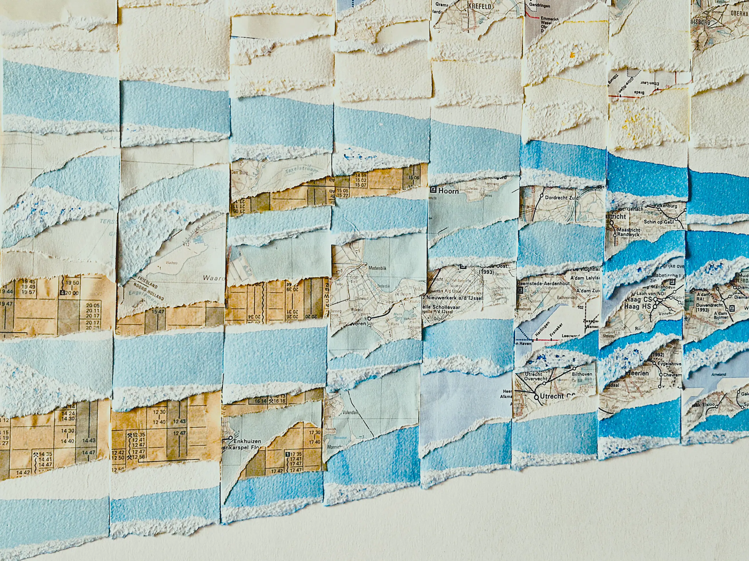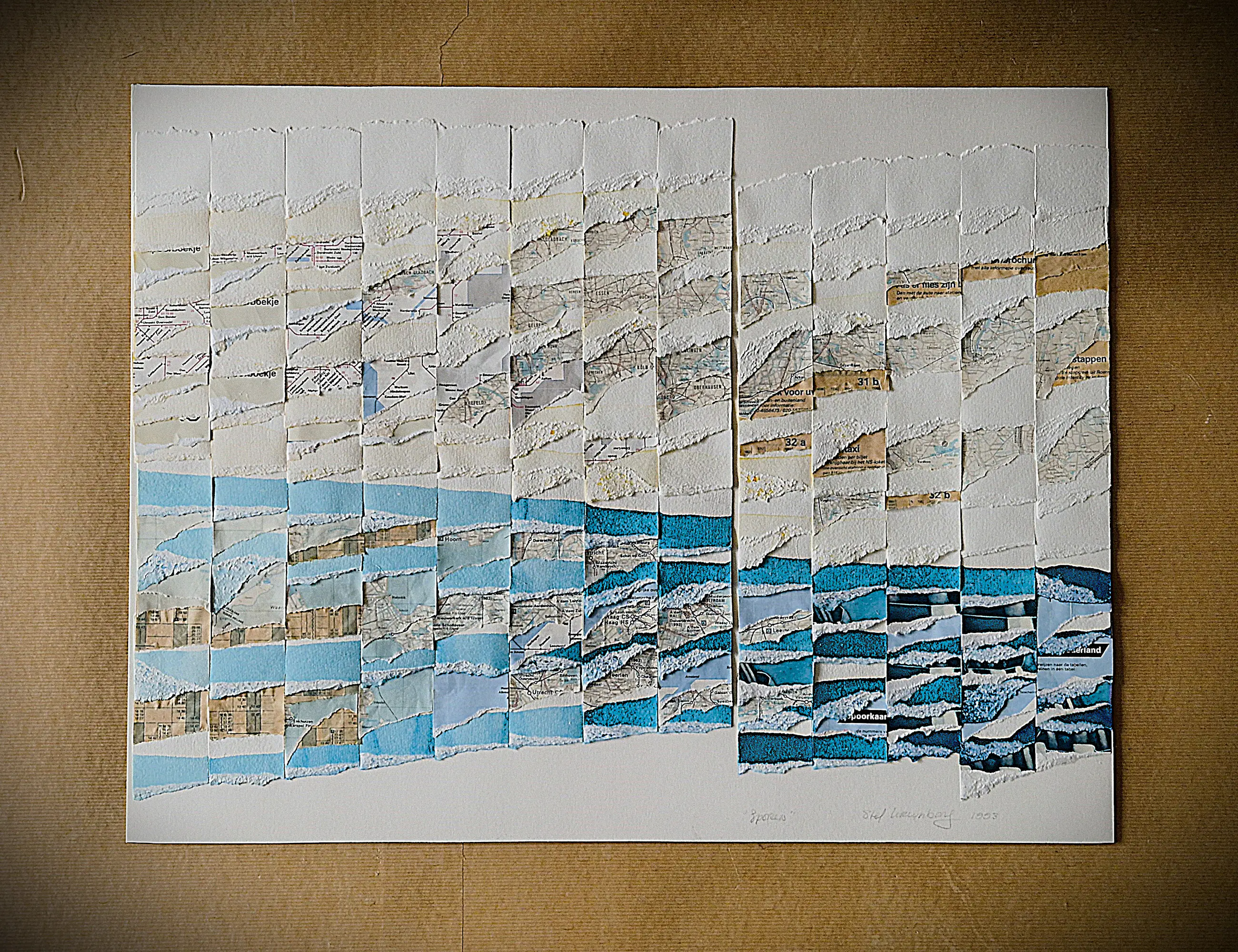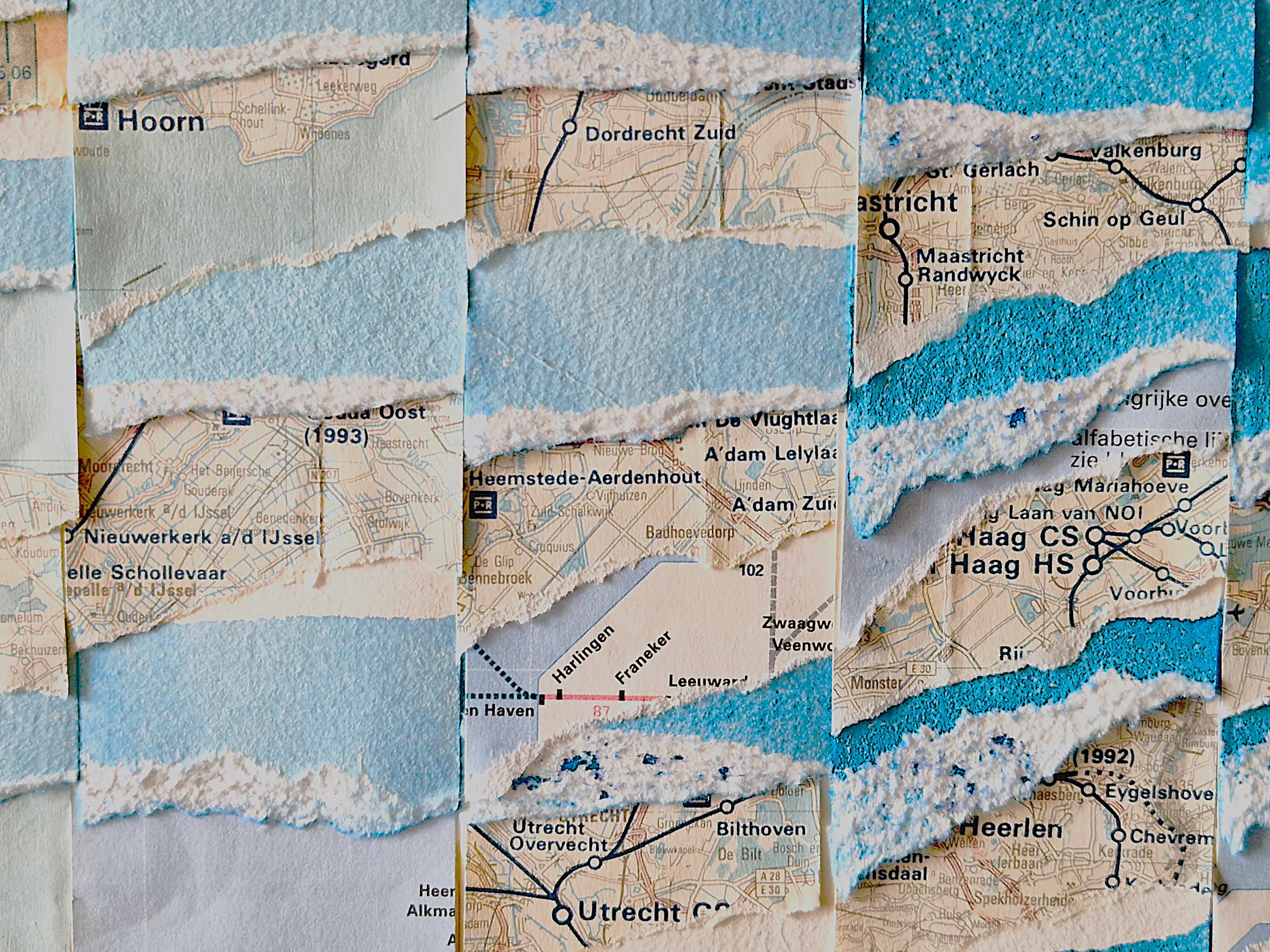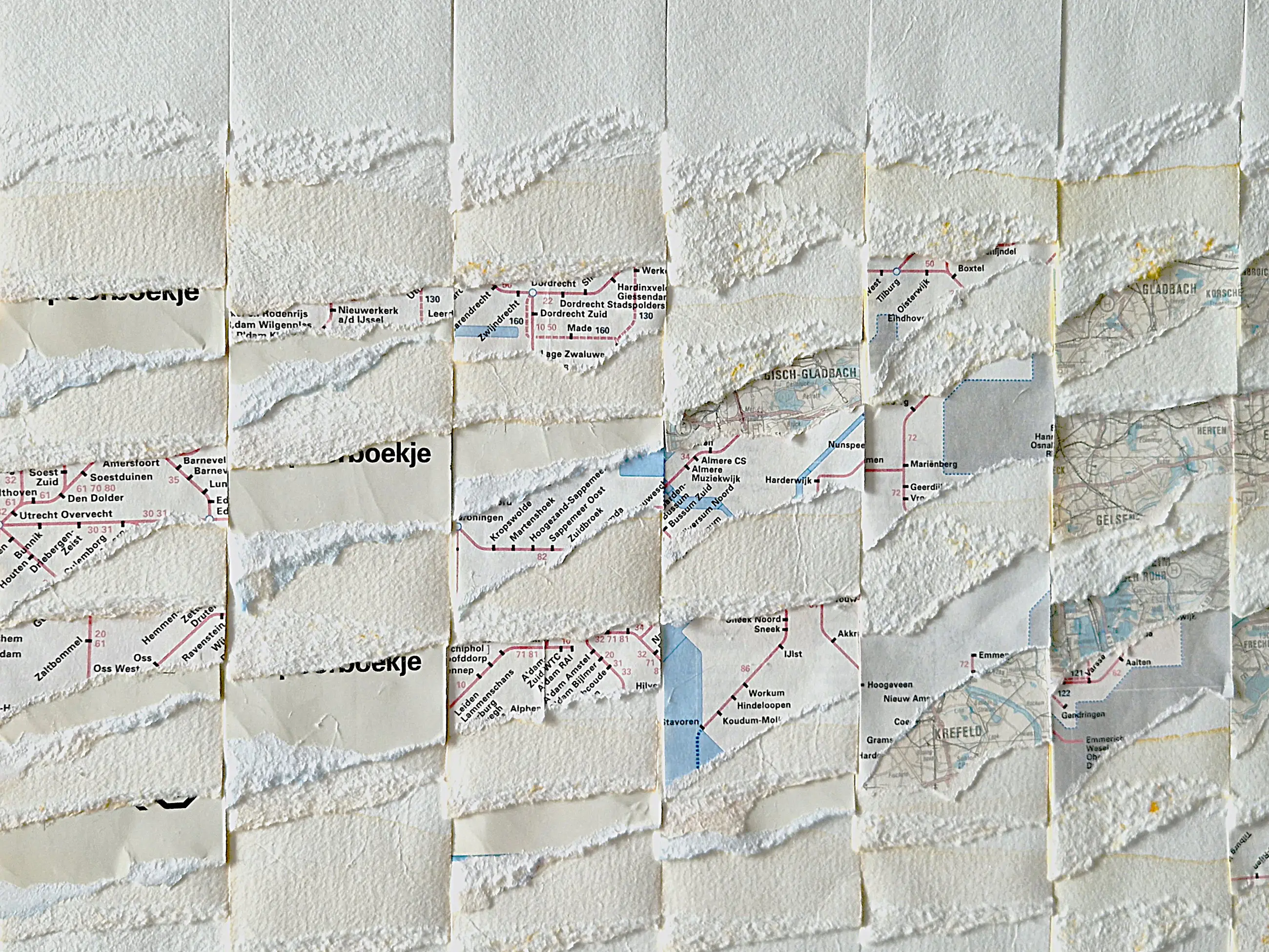 Medium / Techniek : papier (spoorboekjes/landkaarten) collage