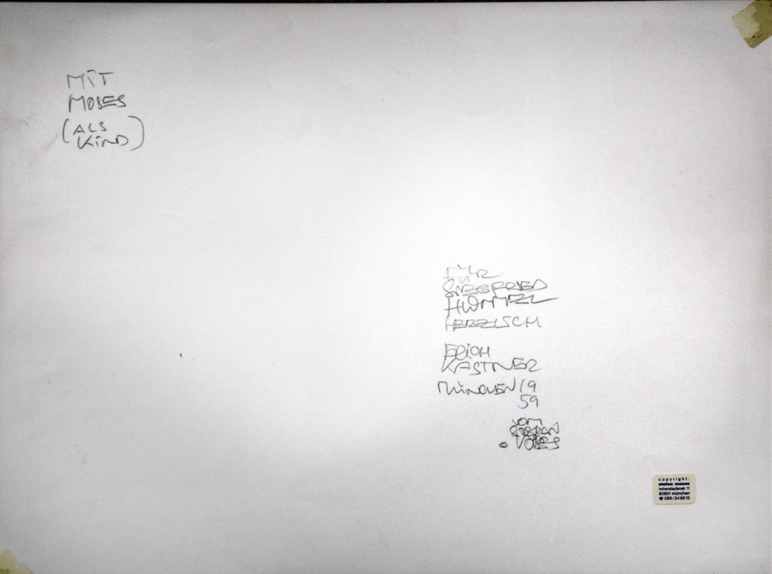 Op de achterkant gesigneerd en gedateerd door Stefan Moses en een handgeschreven opdracht, ook zijn copyright sticker.