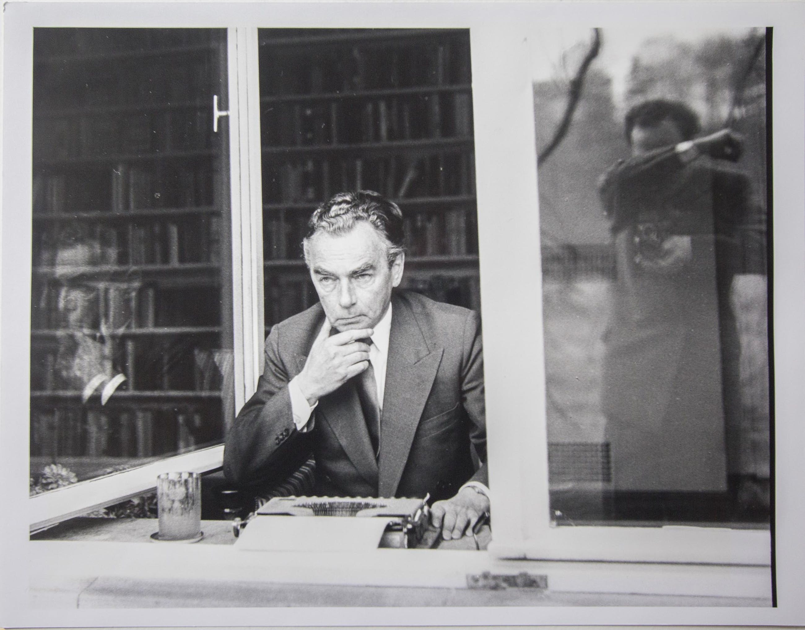 MOSES, Stefan: Portret van Erich Kästner (en, verborgen, ook voor de fotograaf). Originele fotografie; Zilvergelatinedruk (1959; waarschijnlijk een latere druk) Beeldformaat: 28,2 x 37,3 cm.