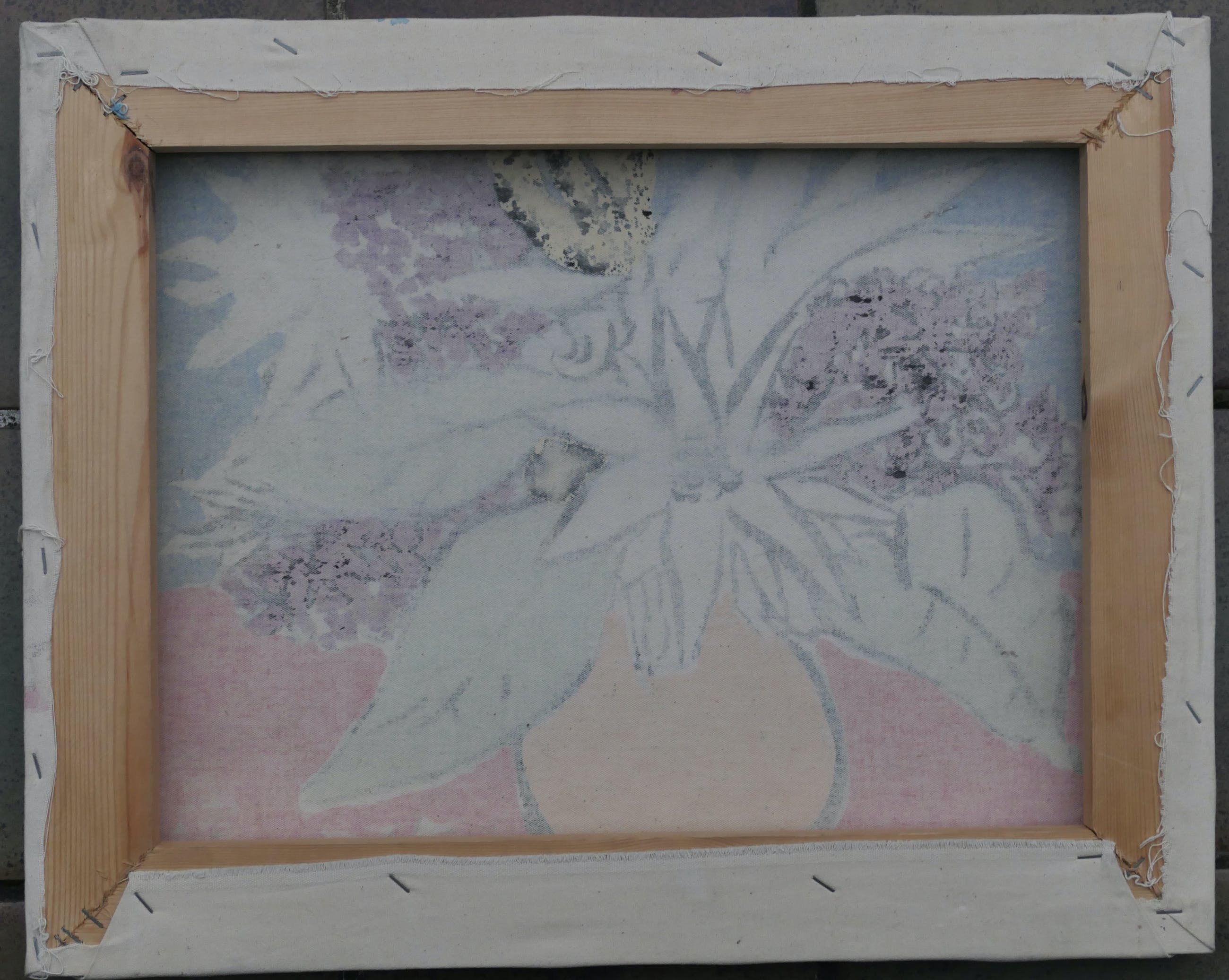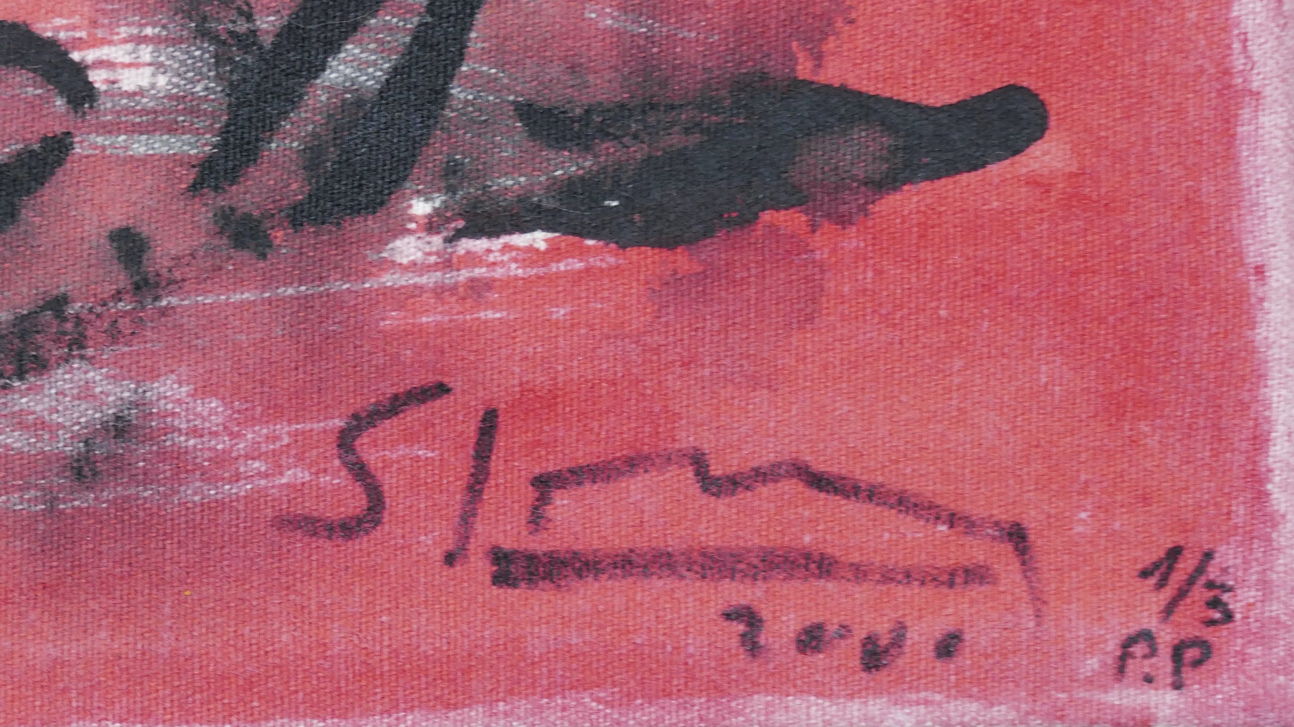 Siebdruck auf Ägyptische Baumwolle, auf Holzrahmen aufgezogen.