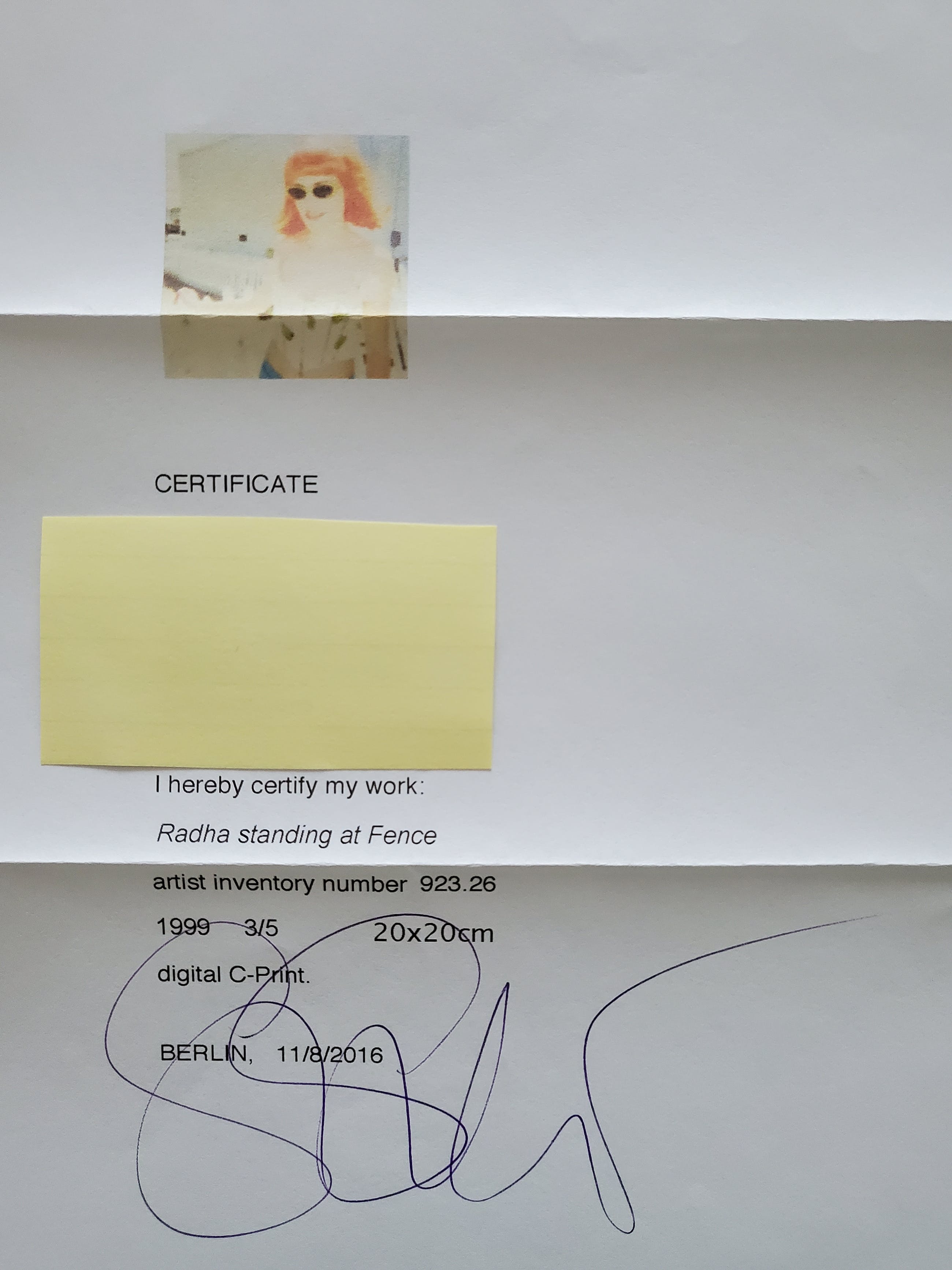 Om de foto af te drukken wordt een certificaat en een label met handtekening en nummering van de artiest meegeleverd.