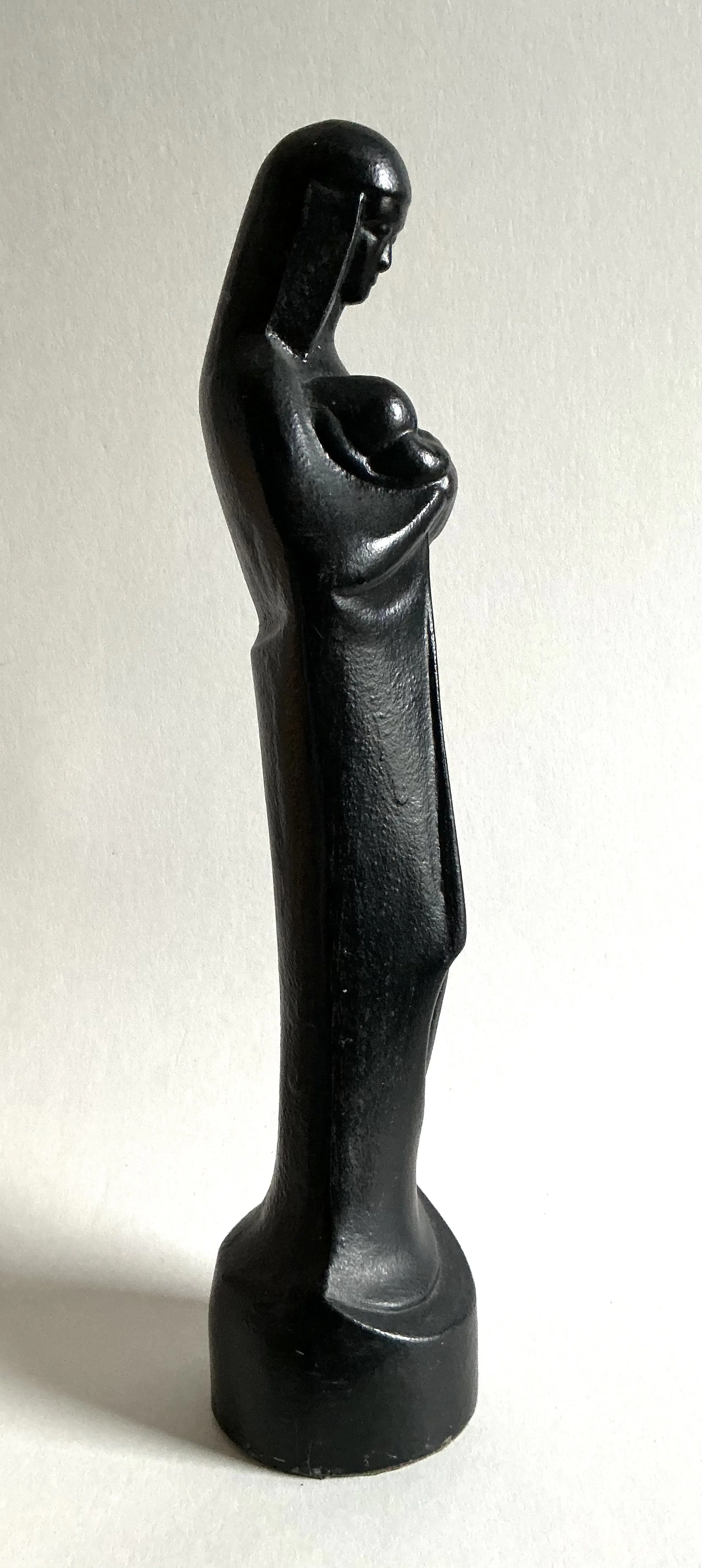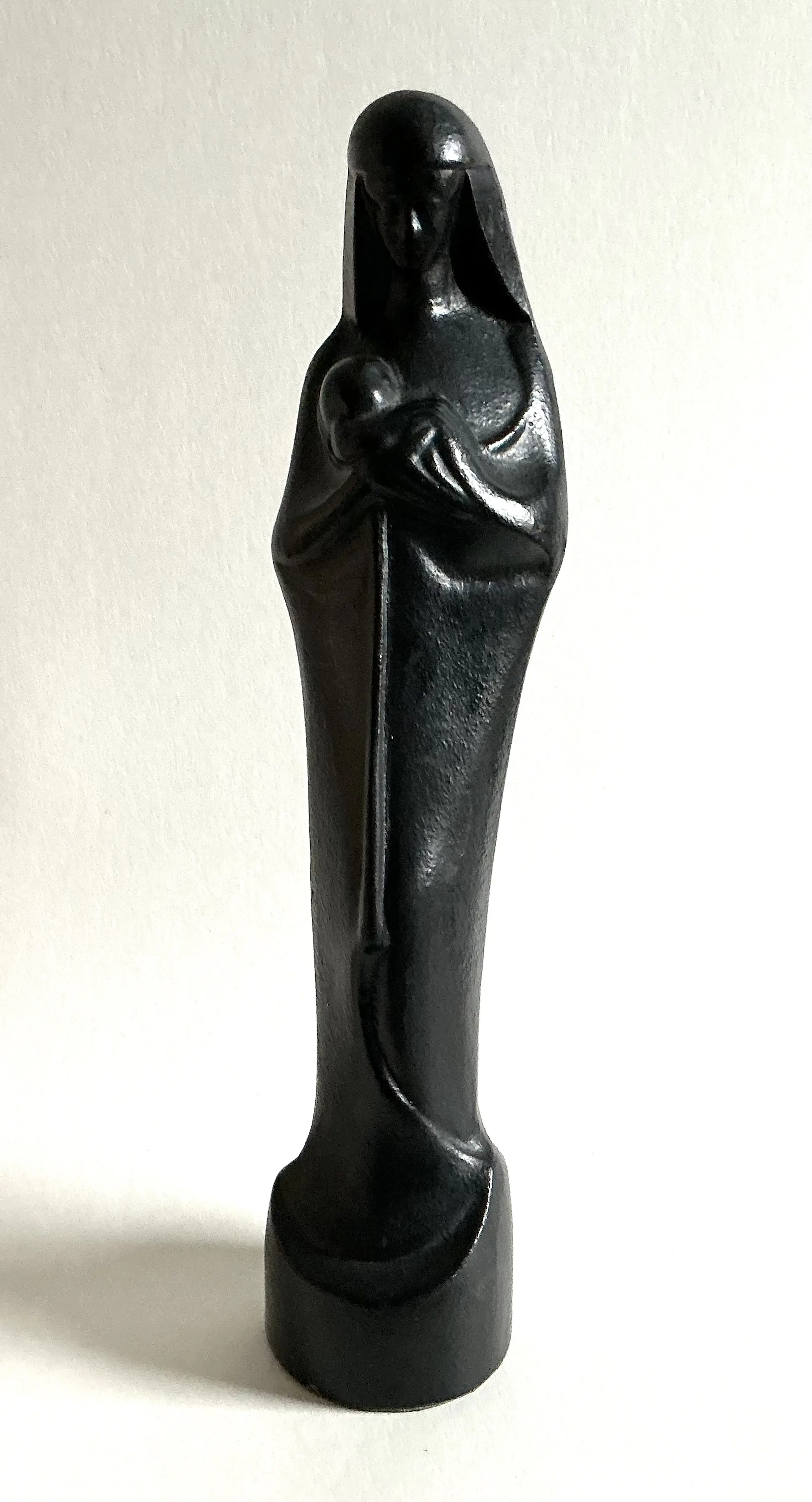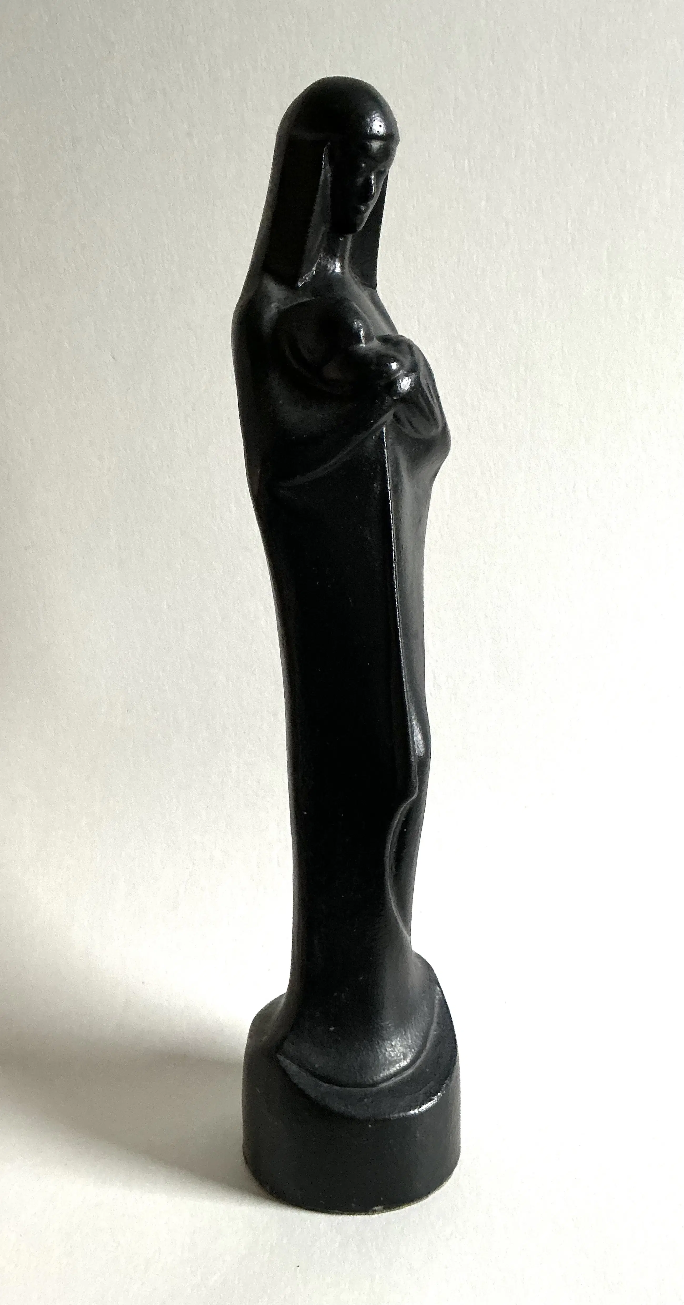 Een gietijzeren uitvoering van de madonna met kind, ontworpen 1925-1928.