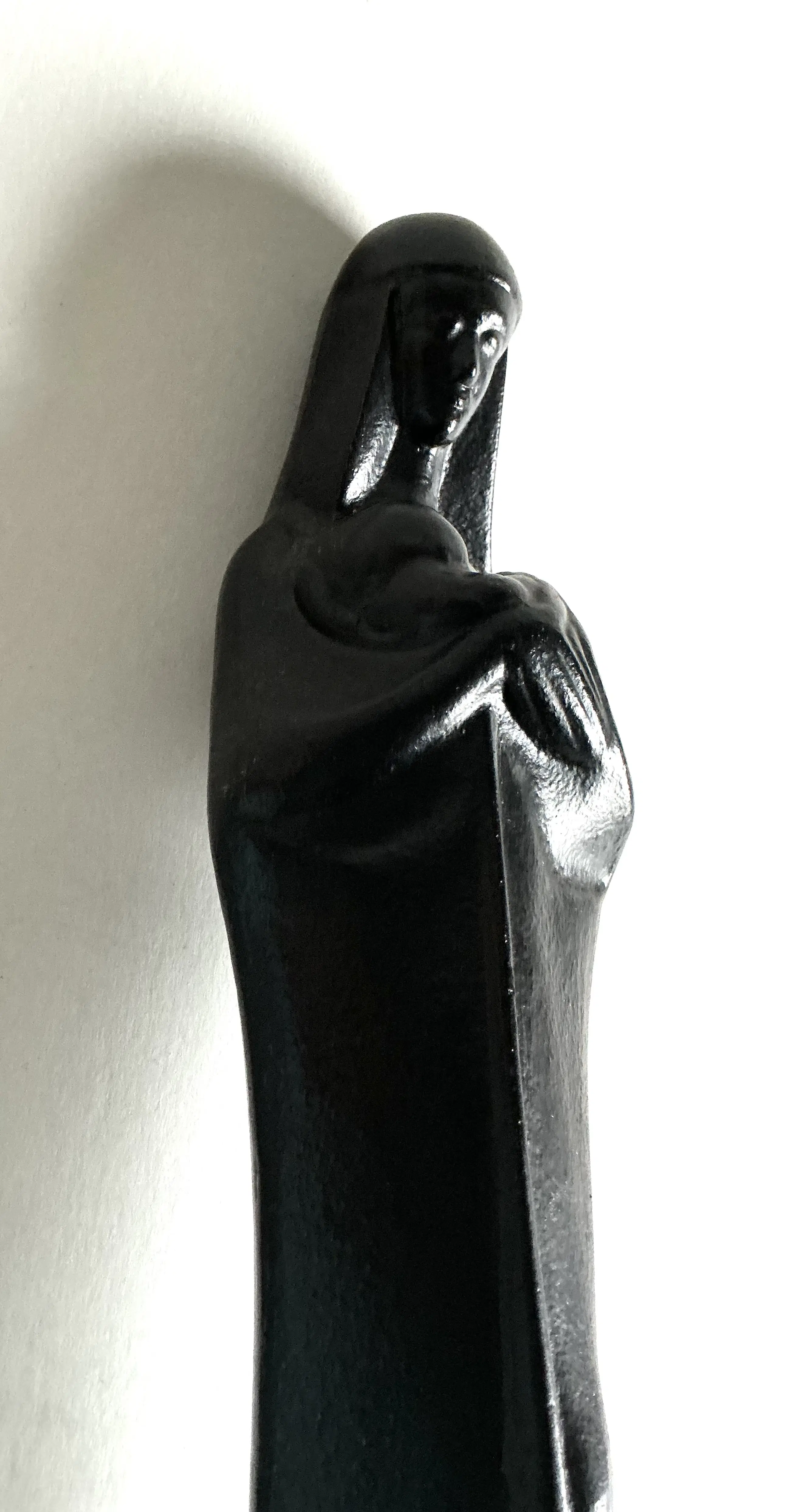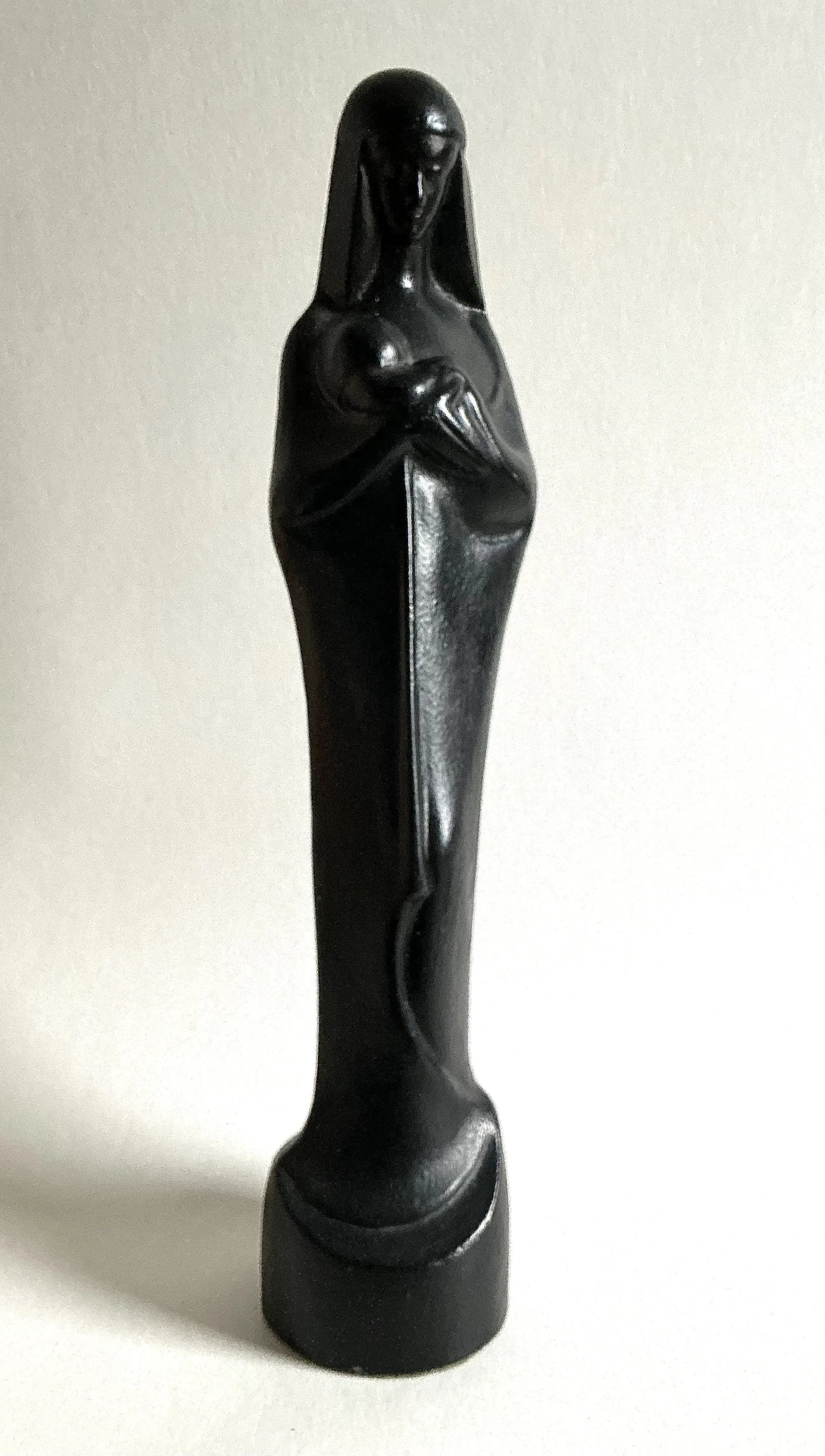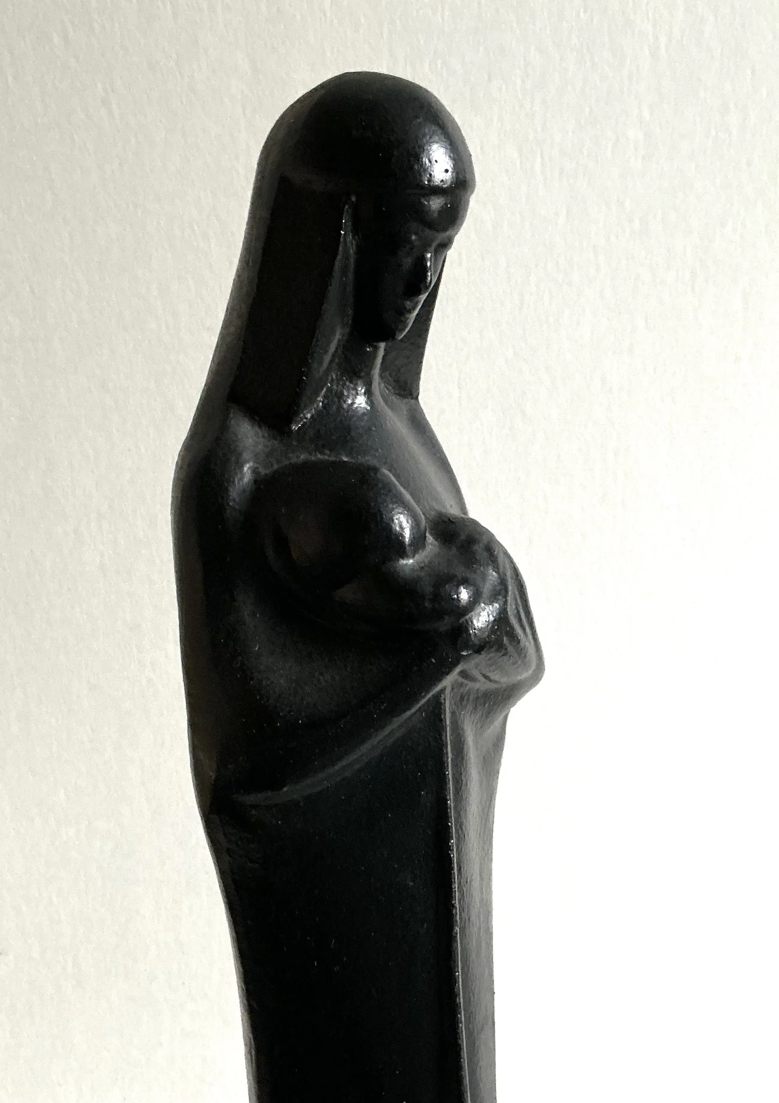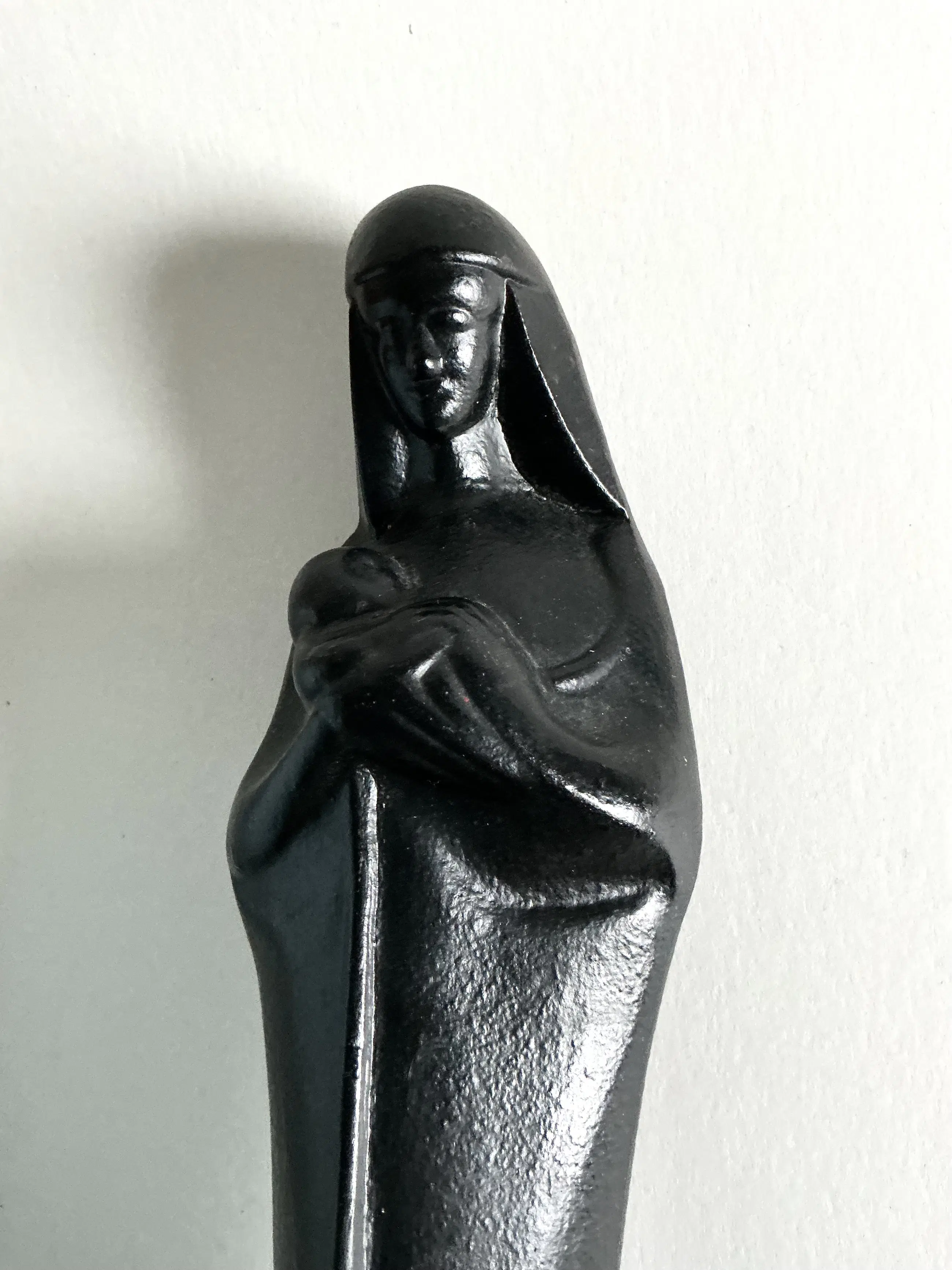 Een gietijzeren uitvoering van de madonna met kind, ontworpen 1925-1928.