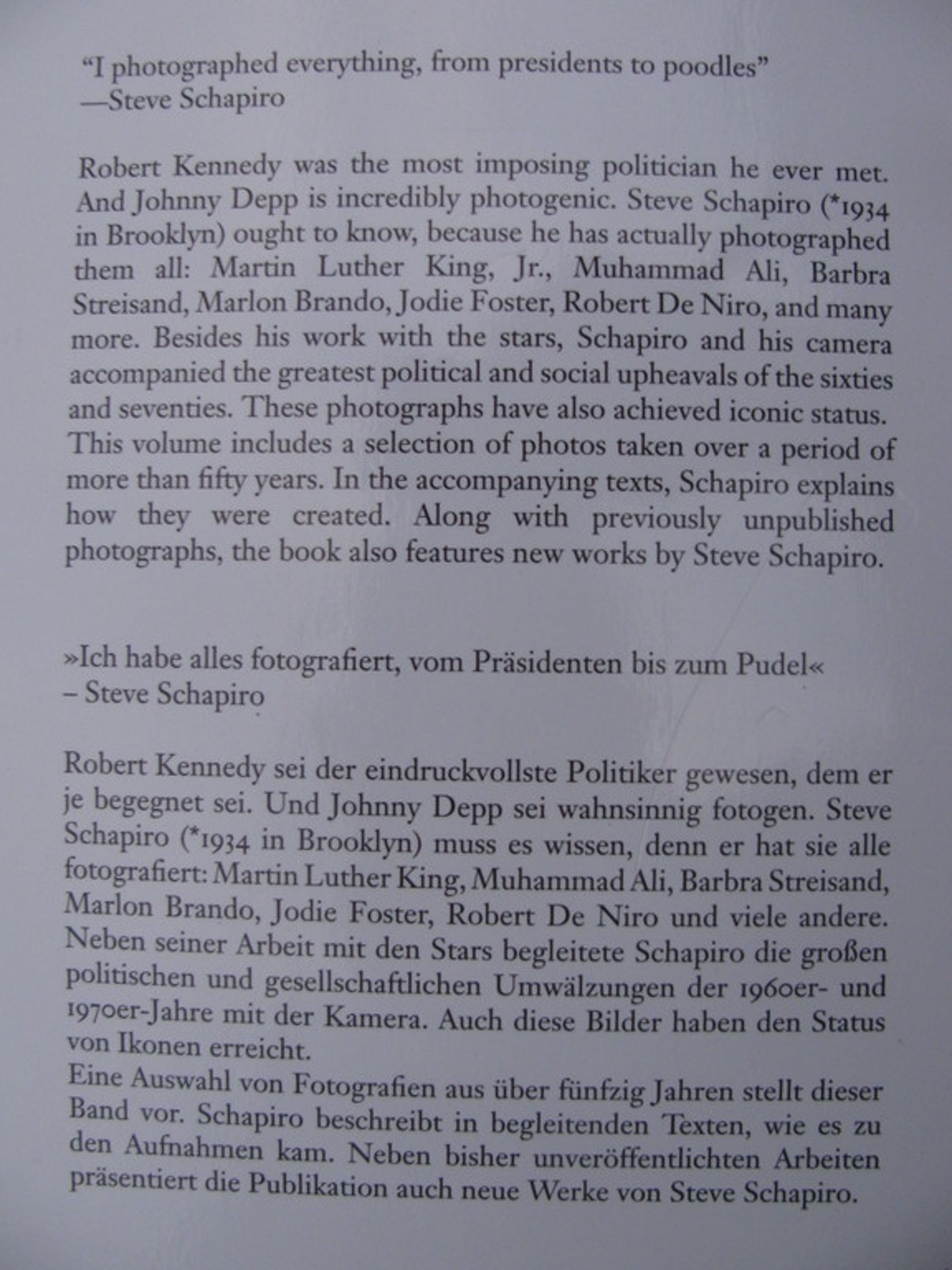 Deze foto werd gepubliceerd op een dubbele pagina van de luxueuze monografie "Steve Schapiro - Then and Now" , uitgegeven door Hatje Cantz Verlag (Duitsand) in 2012 (zie foto´s in bijlage).