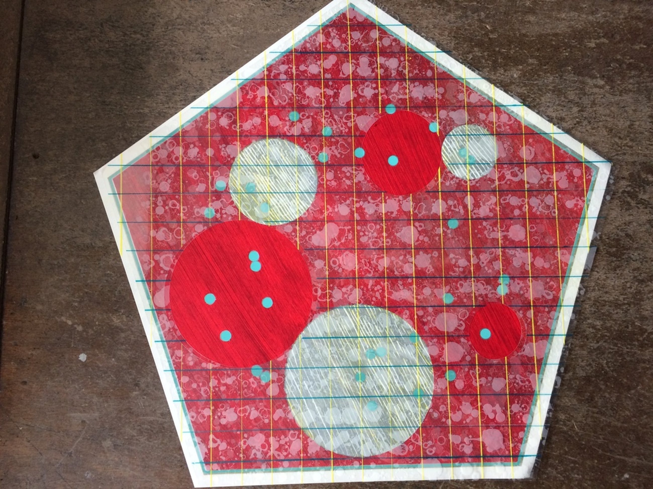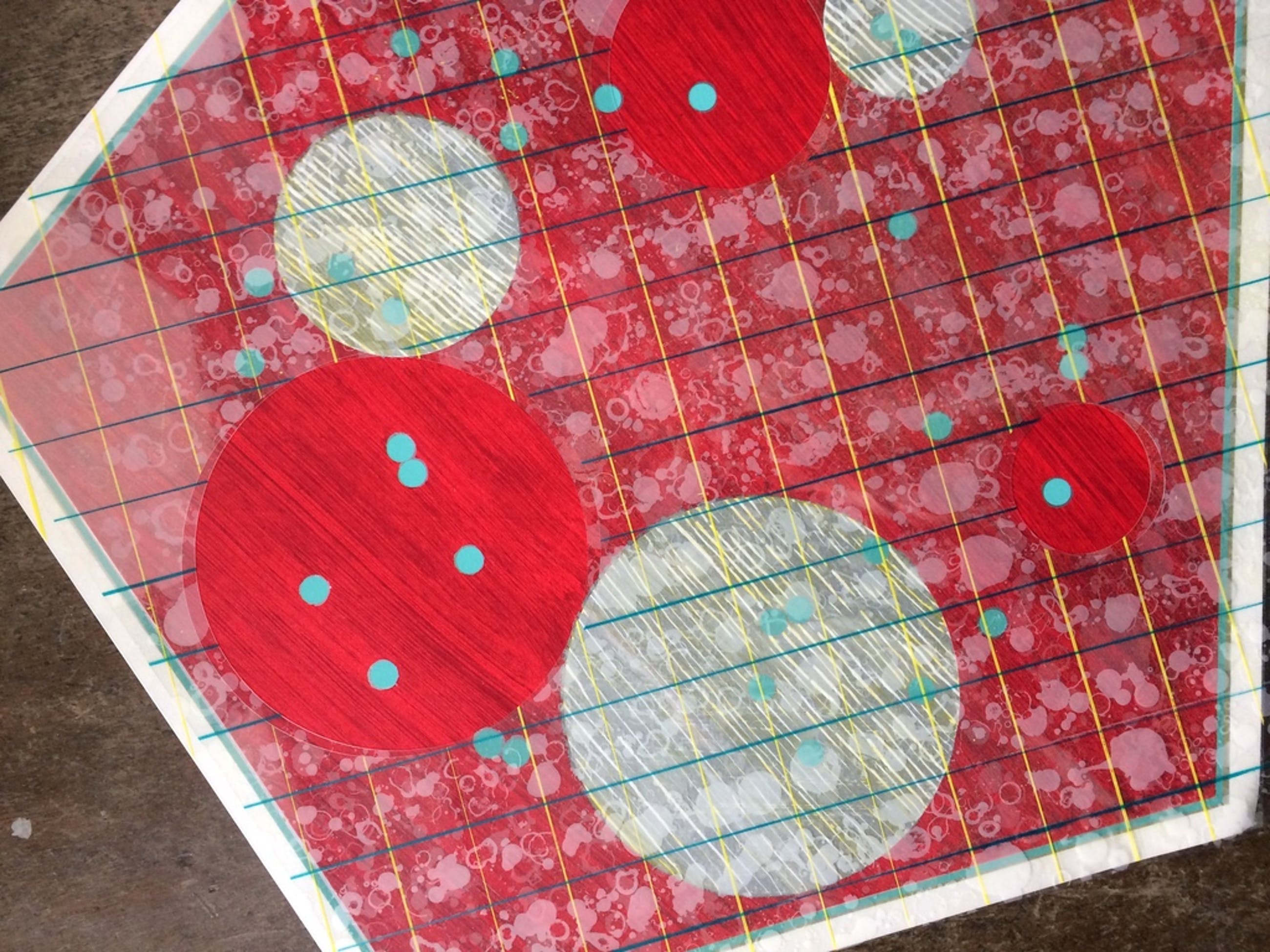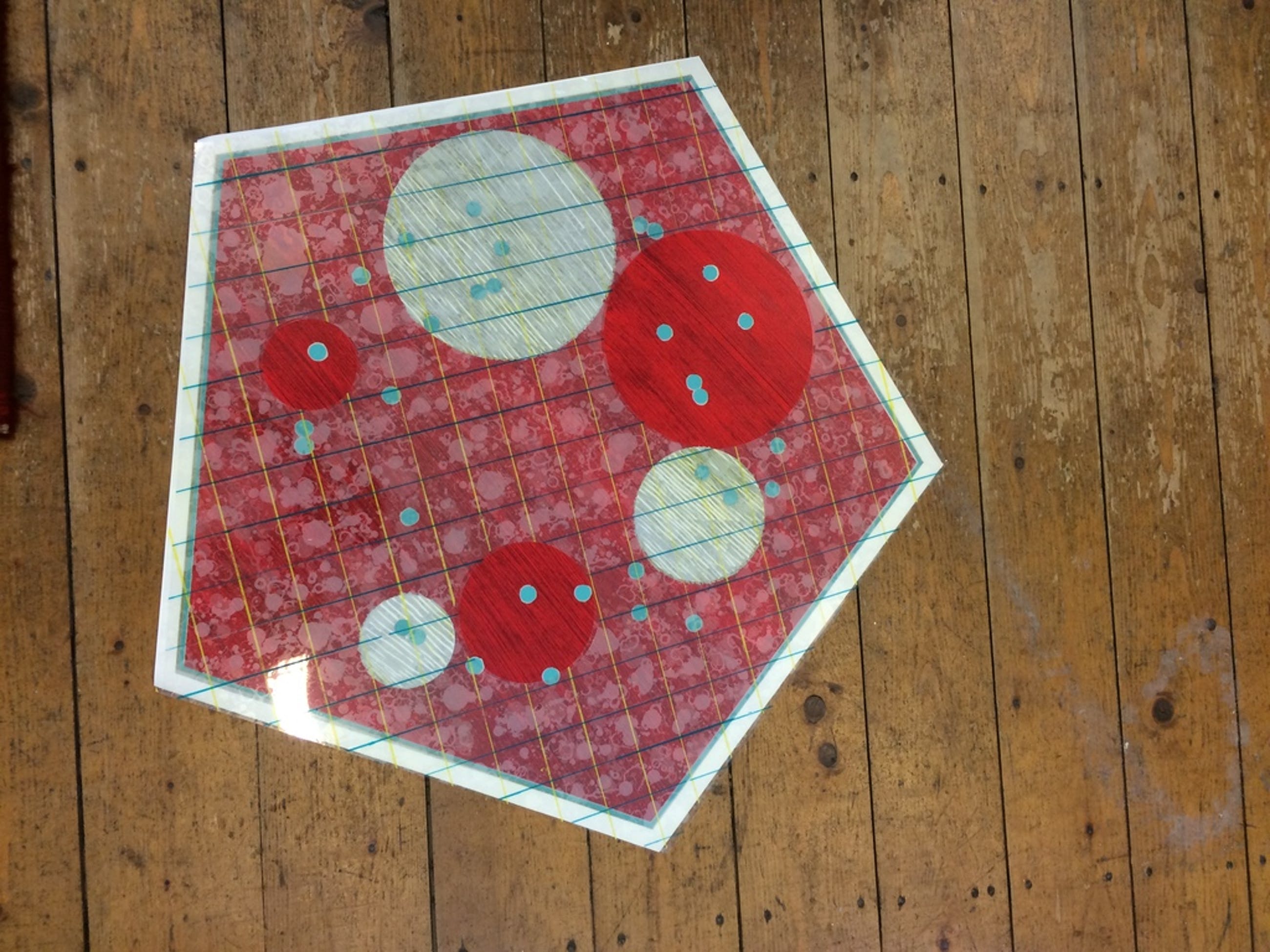 Een kleurrijk werk van Reyers met een zeer bijzondere vorm en gebruik van diverse lagen door middel van bedrukte transparante folies.