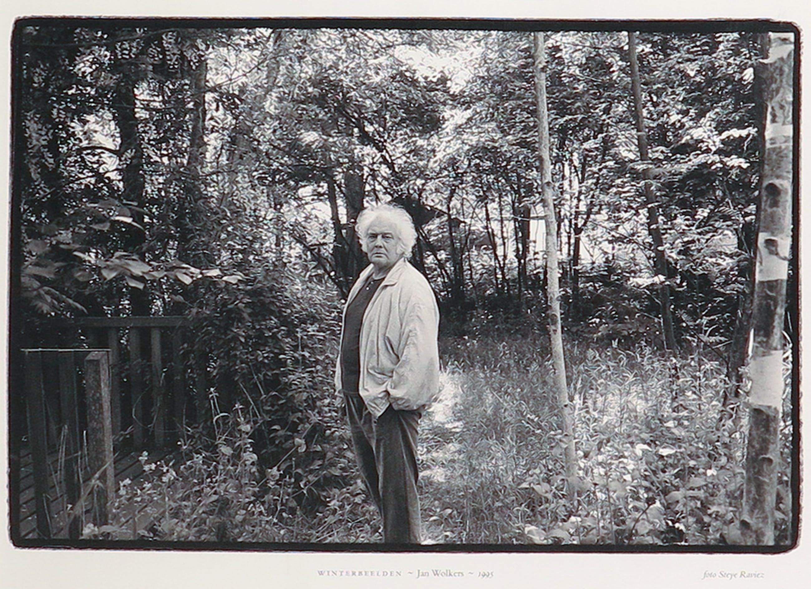 Foto van Jan Wolkers t.g.v. de uitgebrachte serie zeefdrukken Winterbeelden.