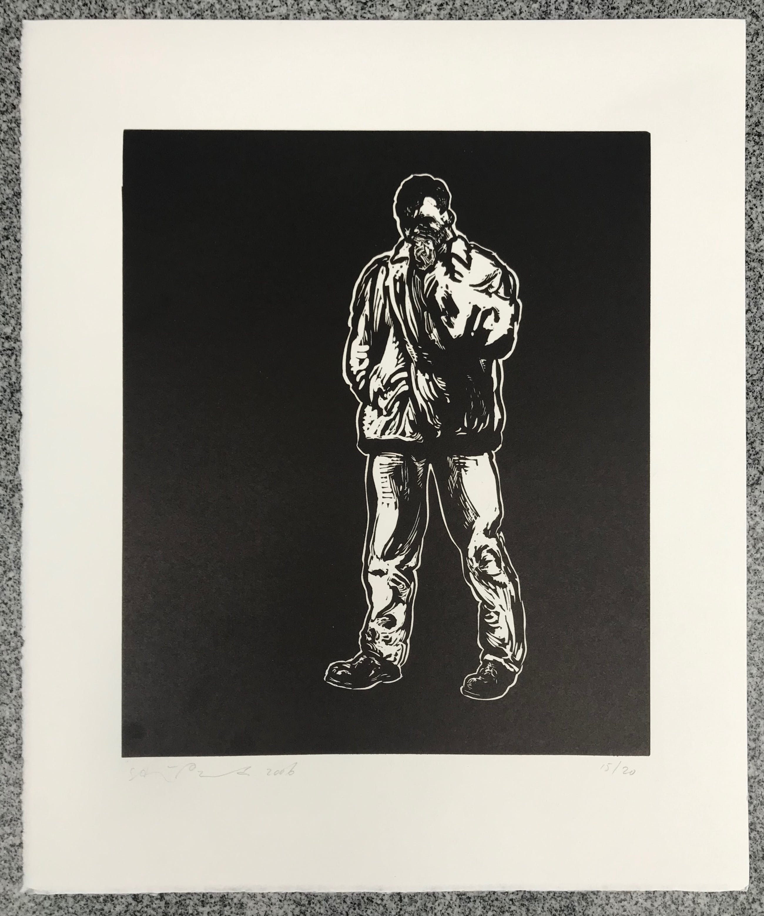 Peeters schrijft over deze lino's: 'Over the course of two years, from 2003 to 2005, I made a series of 73 linocuts. I used scenes from everyday life in combination with big world politics, trying to build a document that would be of lasting value.' Zie ook www.stijnpeeters.com. 2006