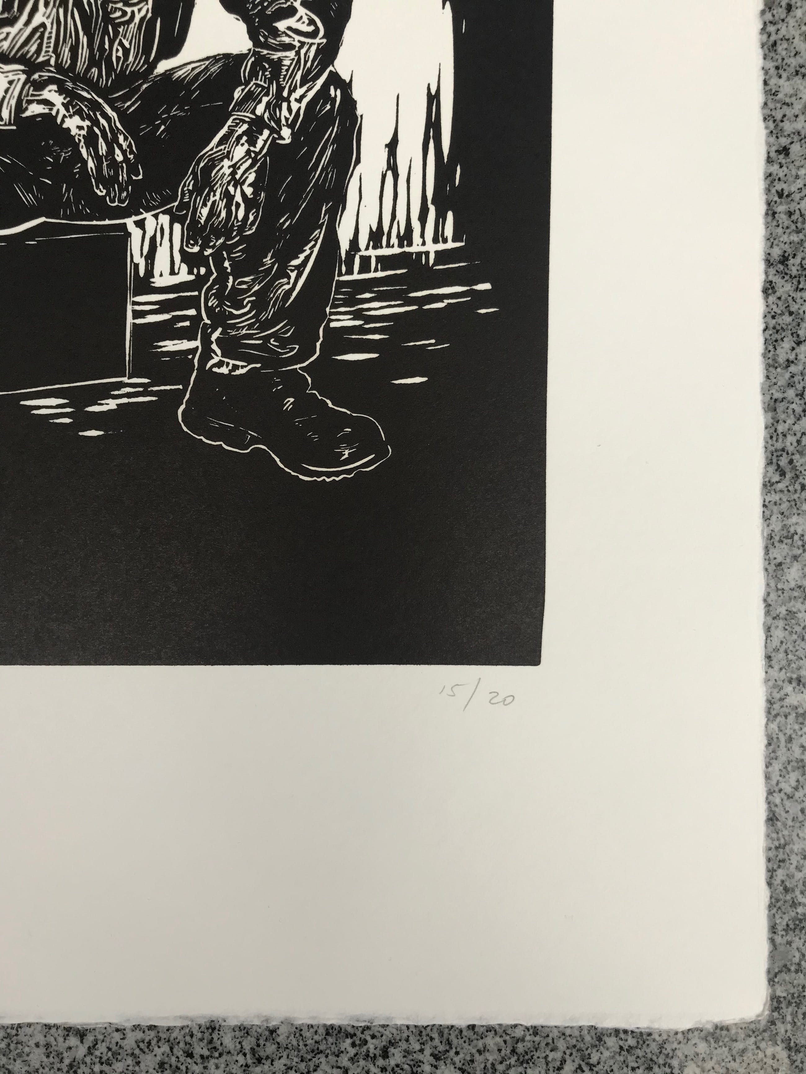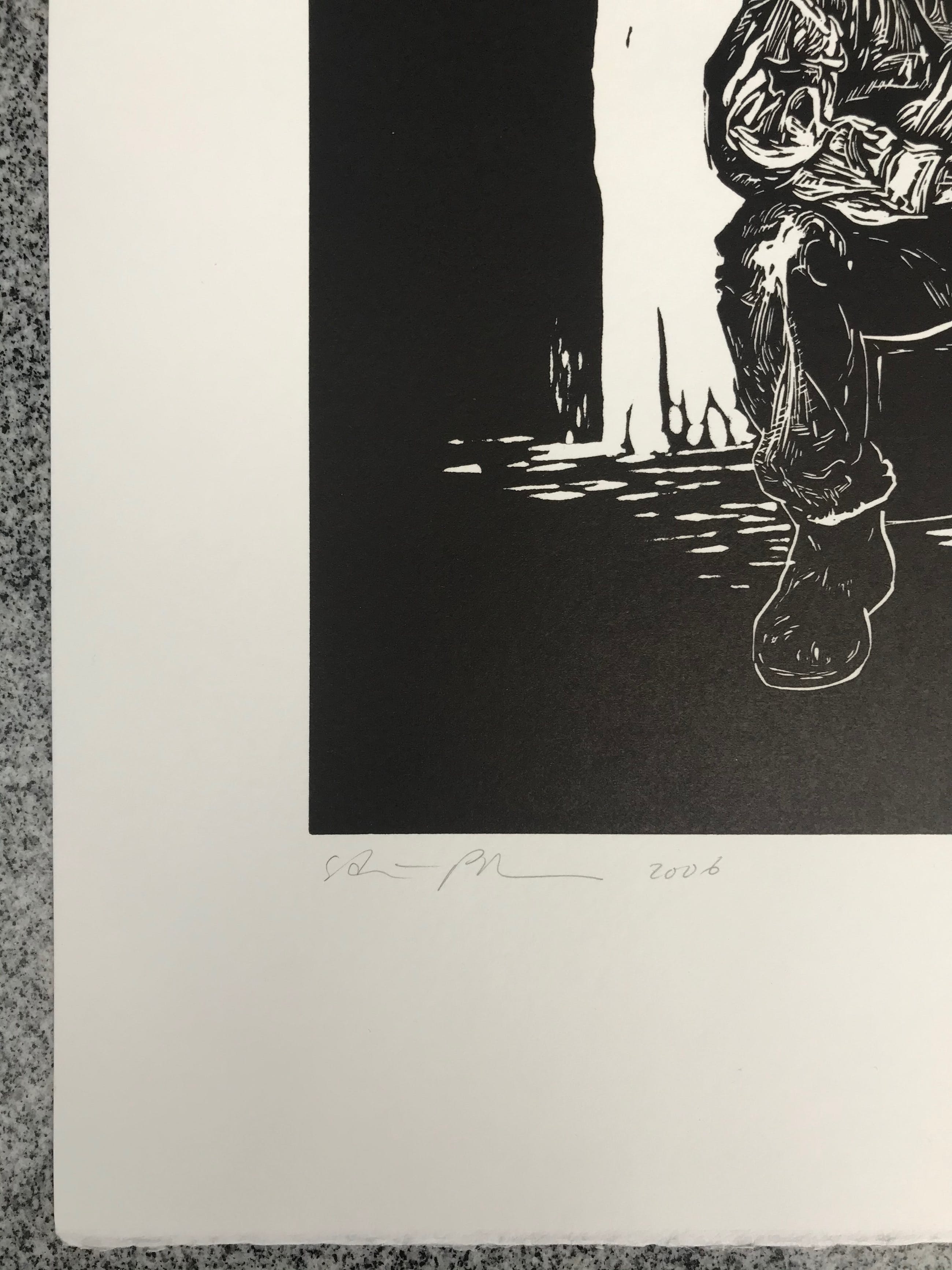 Peeters schrijft over deze lino's: 'Over the course of two years, from 2003 to 2005, I made a series of 73 linocuts. I used scenes from everyday life in combination with big world politics, trying to build a document that would be of lasting value.' Zie ook www.stijnpeeters.com. 2006