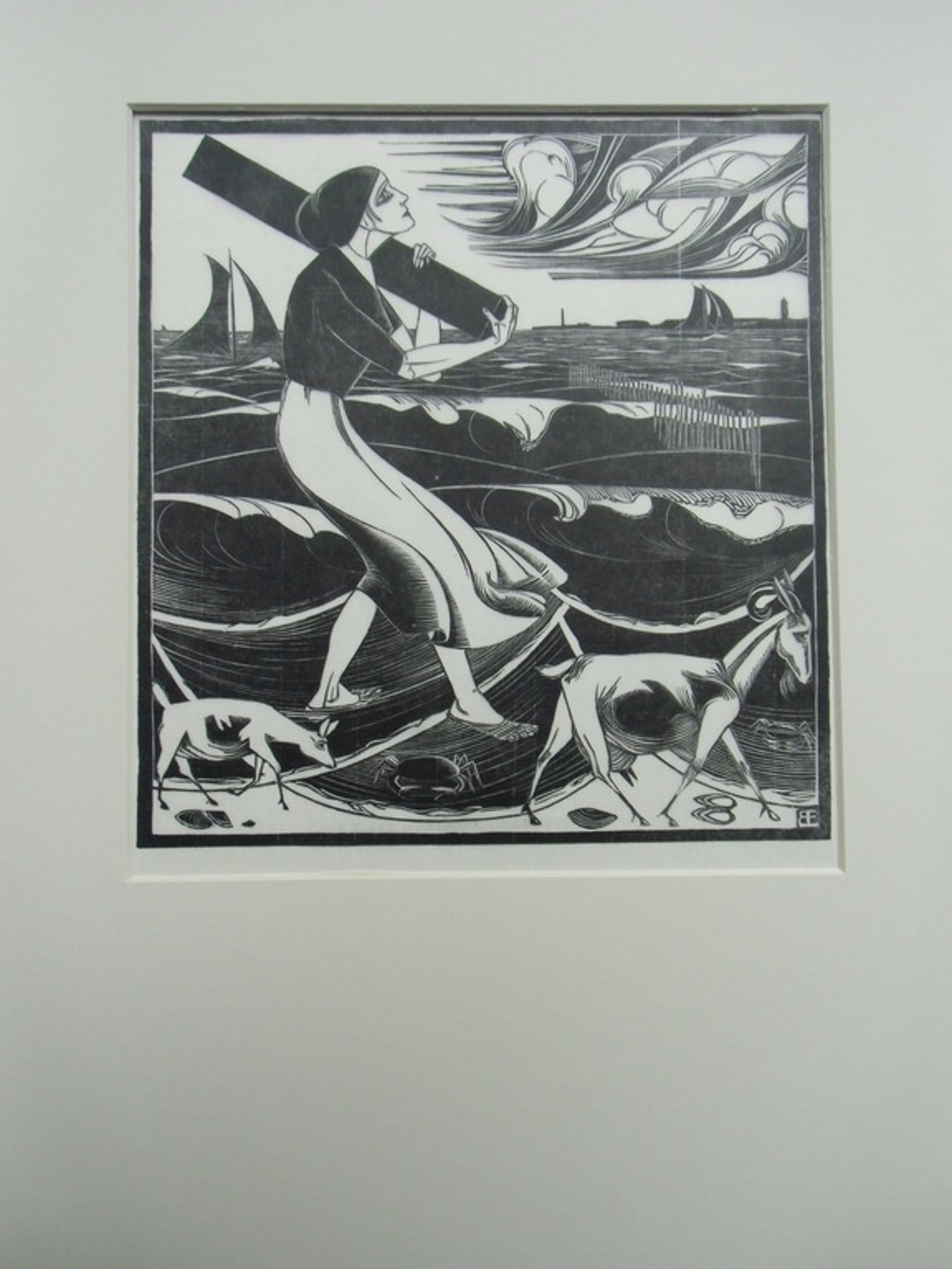 Deze houtsnede op dun Japans papier dateert uit 1919 en is in perfecte staat. Gesigneerd met monogram BE r.o. in het hout.Beeldmaat 21.5 x 23 cm.Los opgenomen in passepartout met achtervel Authenticiteit volledig gewaarborgd.