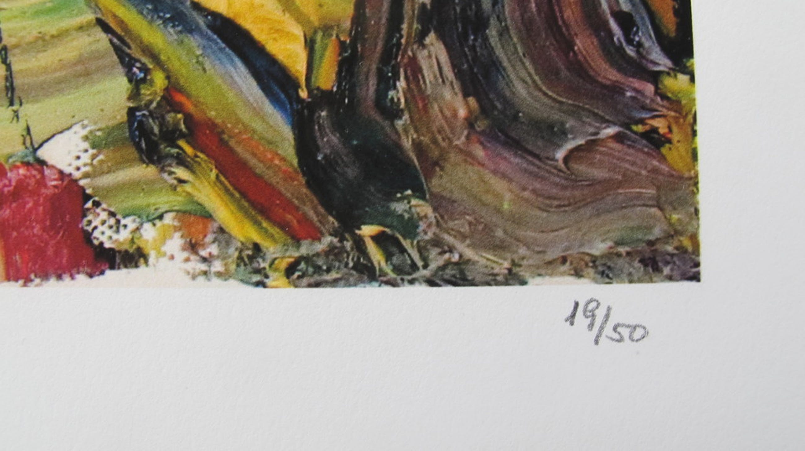 Mooi abstract werk van de Duitse kunstenaar Strawalde. Kleine oplage. Handgenummerd 19/50 en handgesigneerd met potlood. Afmetingen lithografie: 40,50 cm x 50,0 cm. Afmetingen blad: 53,0 cm x 61,0 cm. Verzendkosten voor koper: Nederland 10 euro, Europa 16 euro.