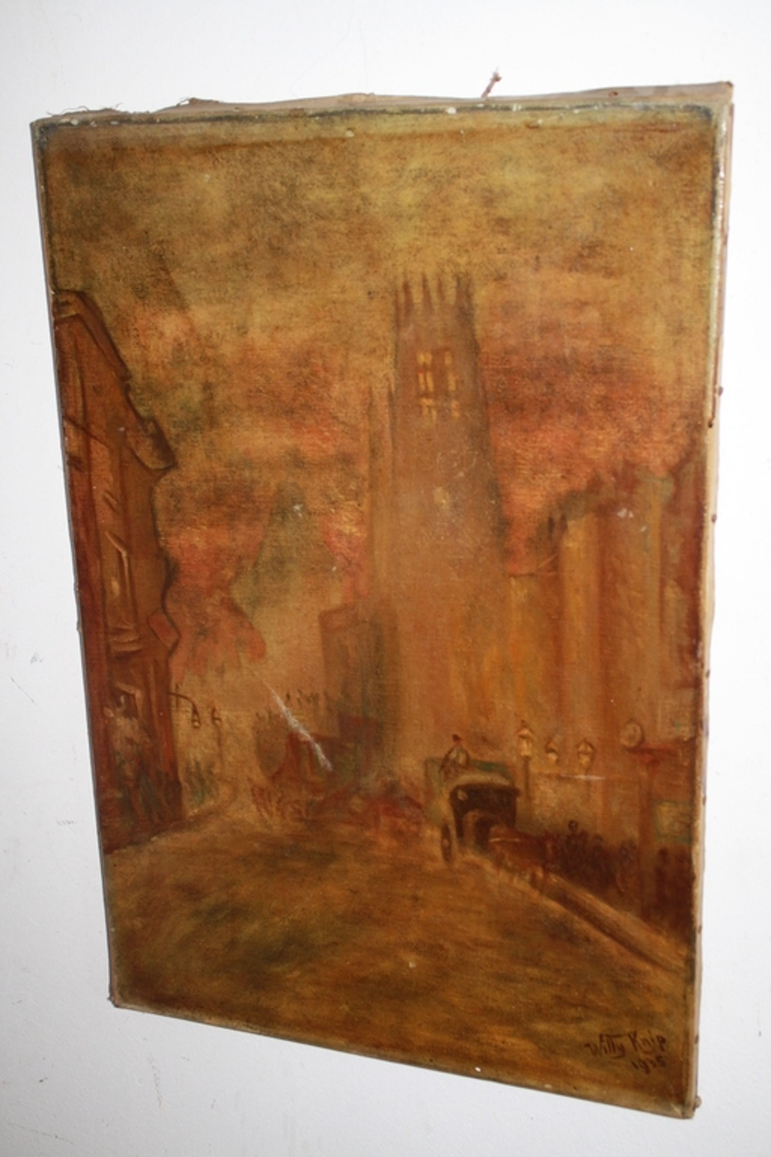 STRAATJE MET PAARD EN KAR IN AVONDSTEMMING