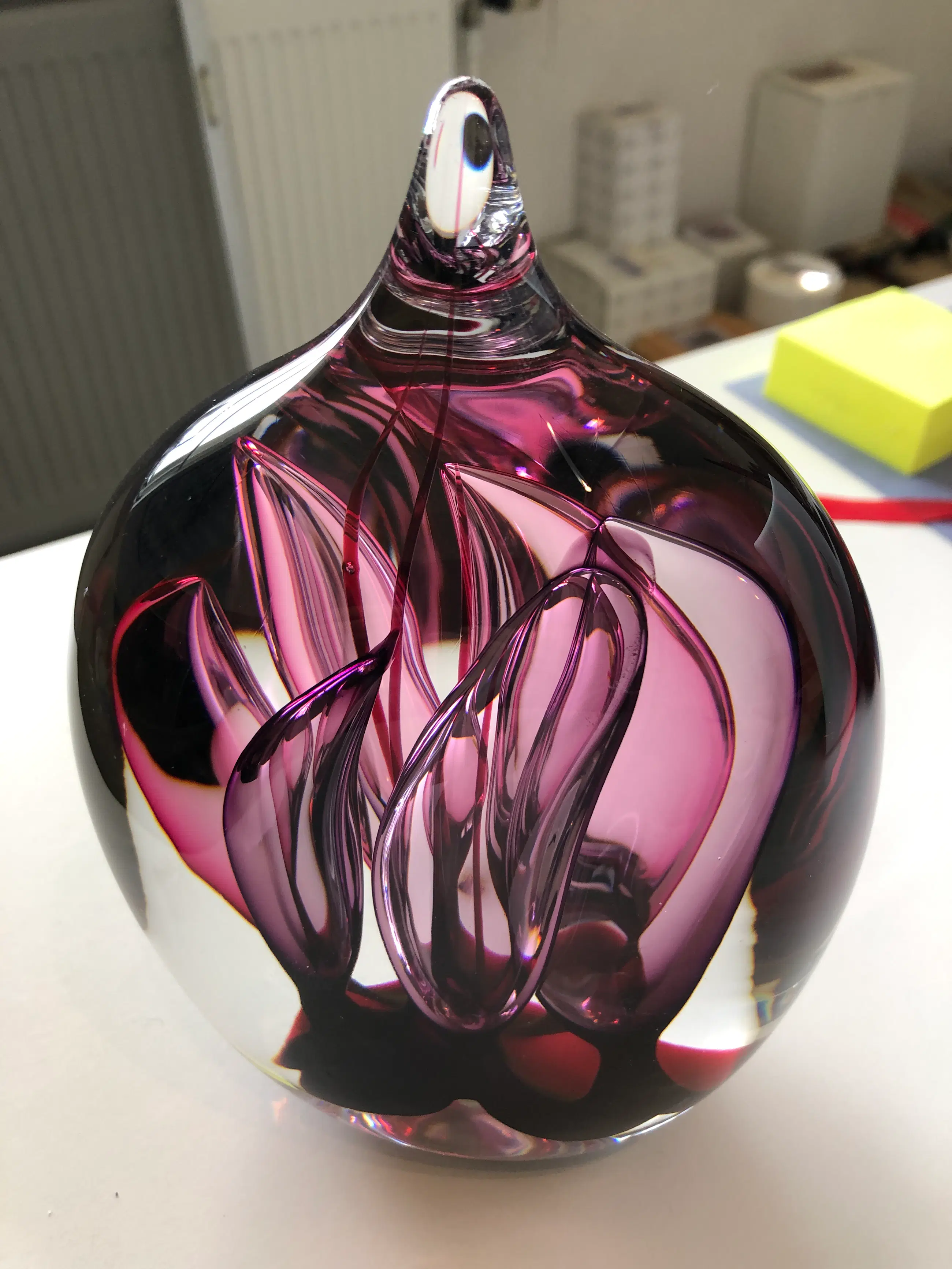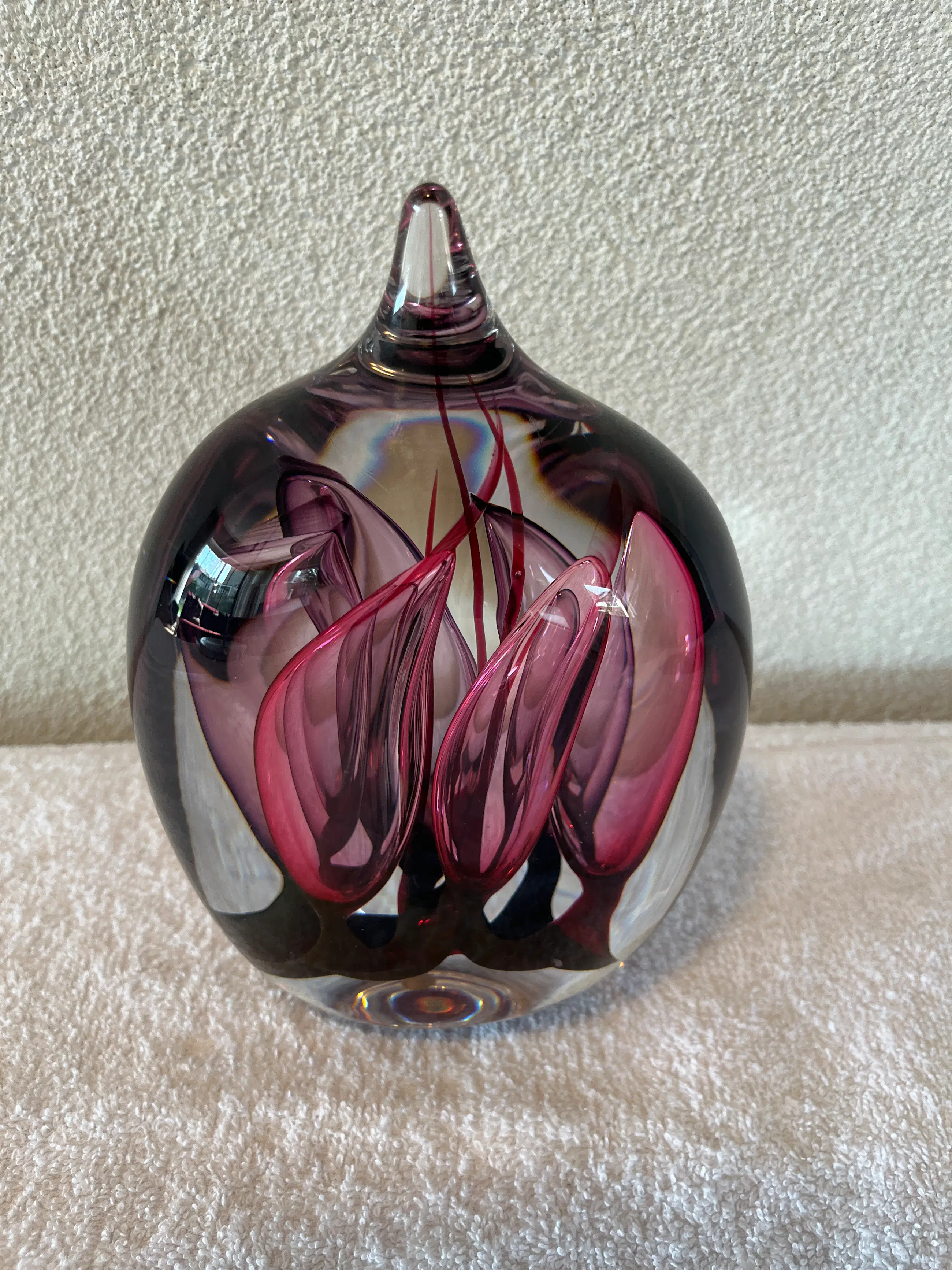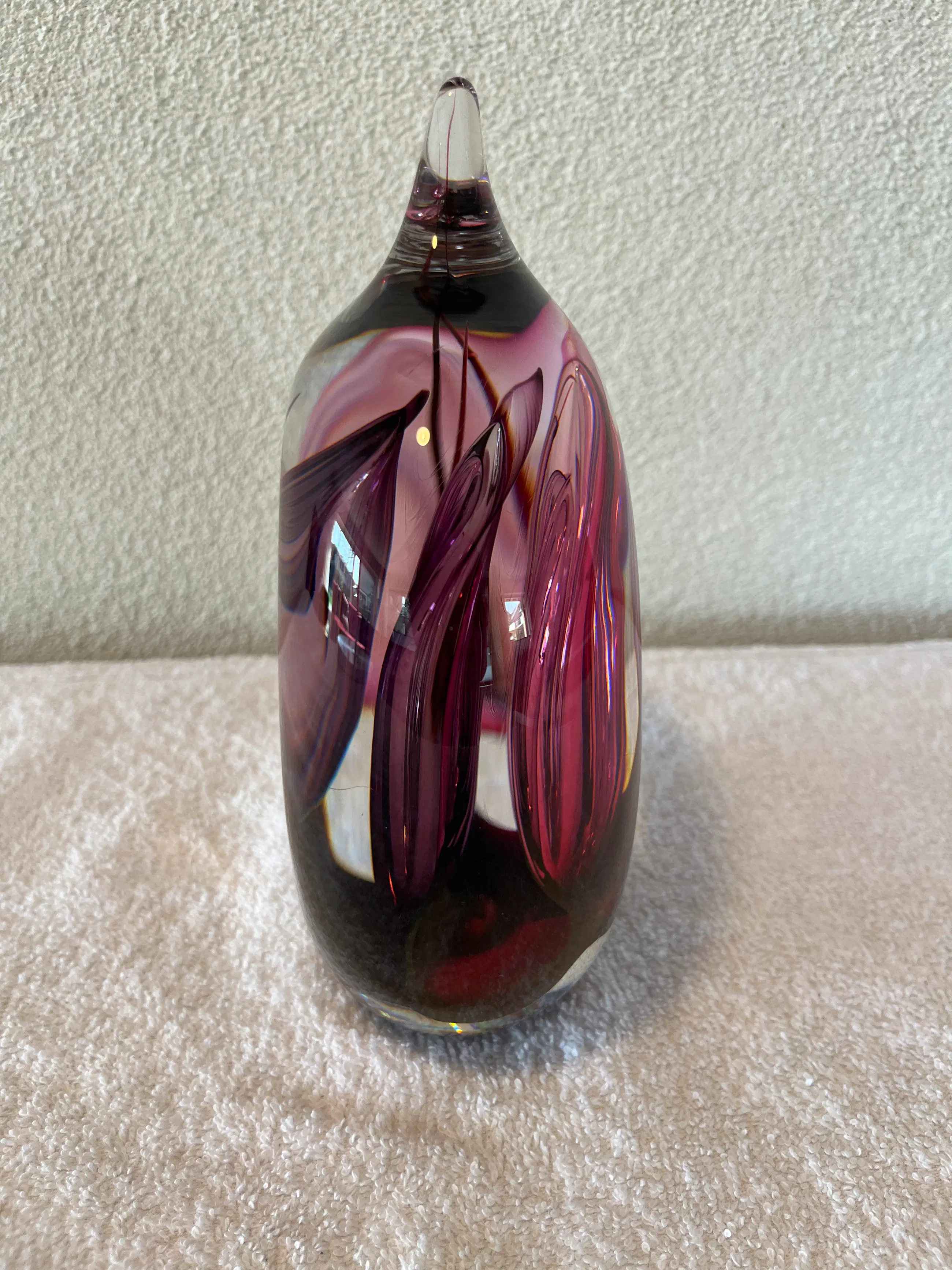 Studio Glashyttan Åhus Sweden - Druppel Transparant met rood/paars (gesigneerd)