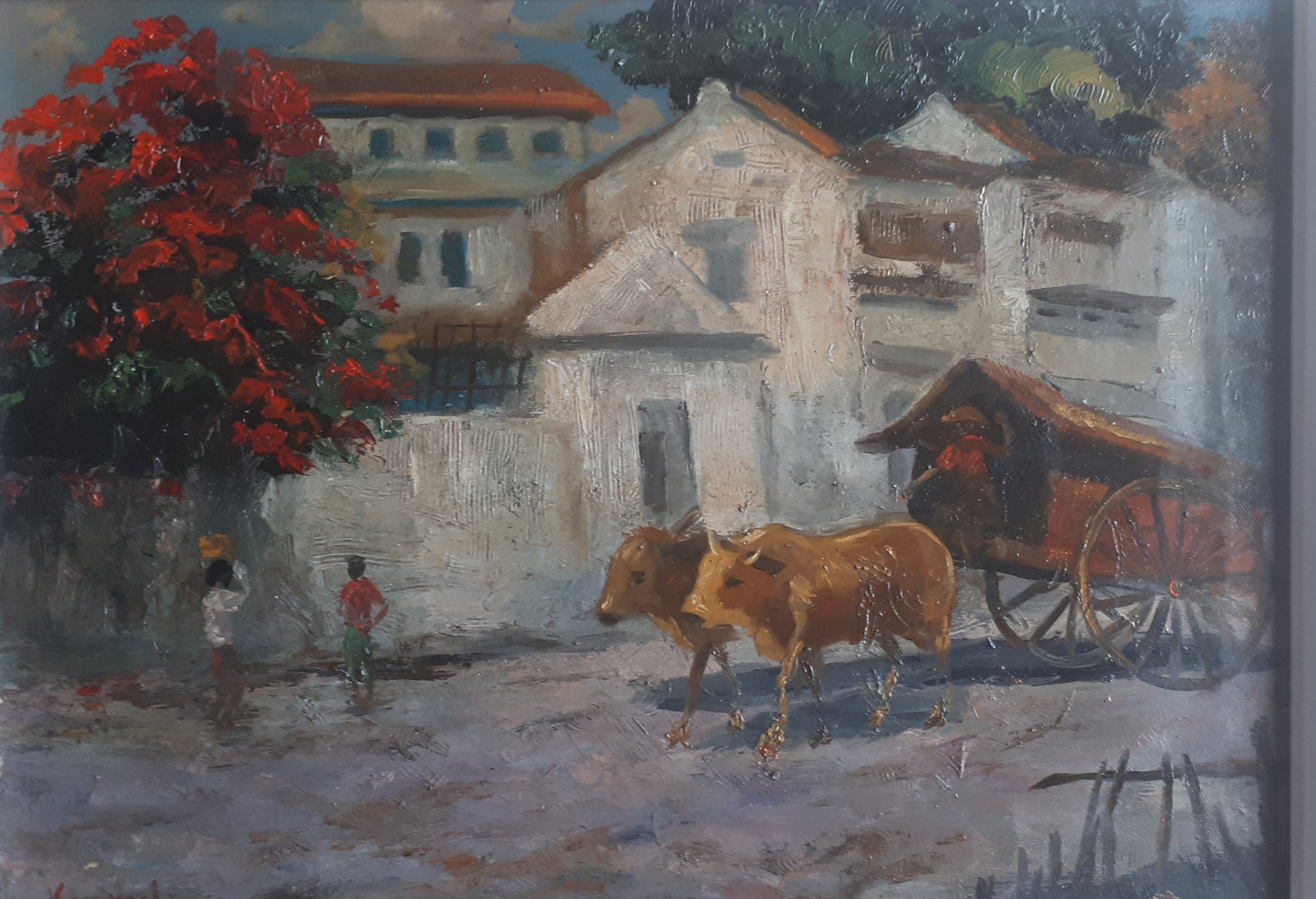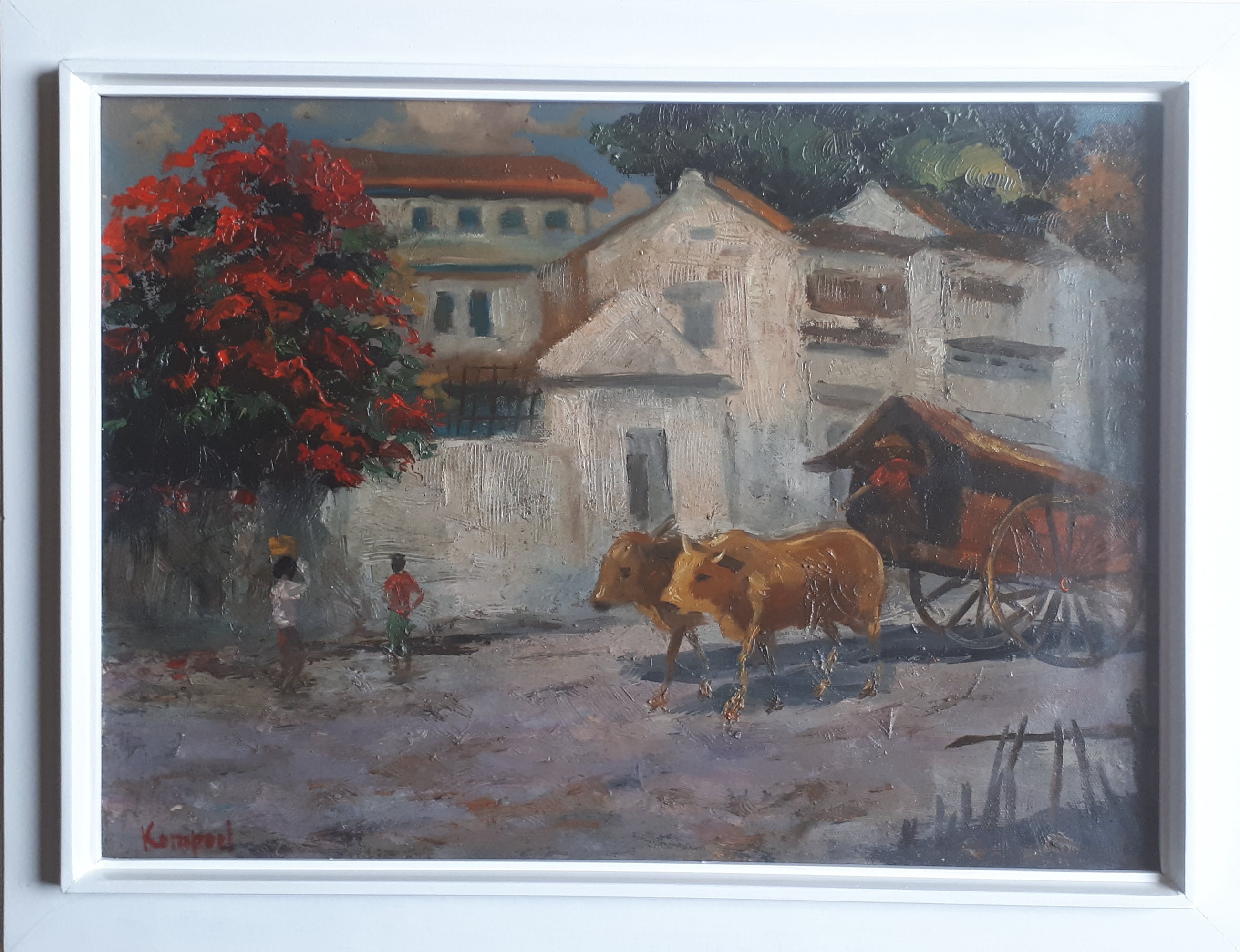 Mooi werk van de Indonesische schilder Kompoel (1912-1987). Waarschijnlijk geschilderd in de jaren 40 of 50 van de vorige eeuw.