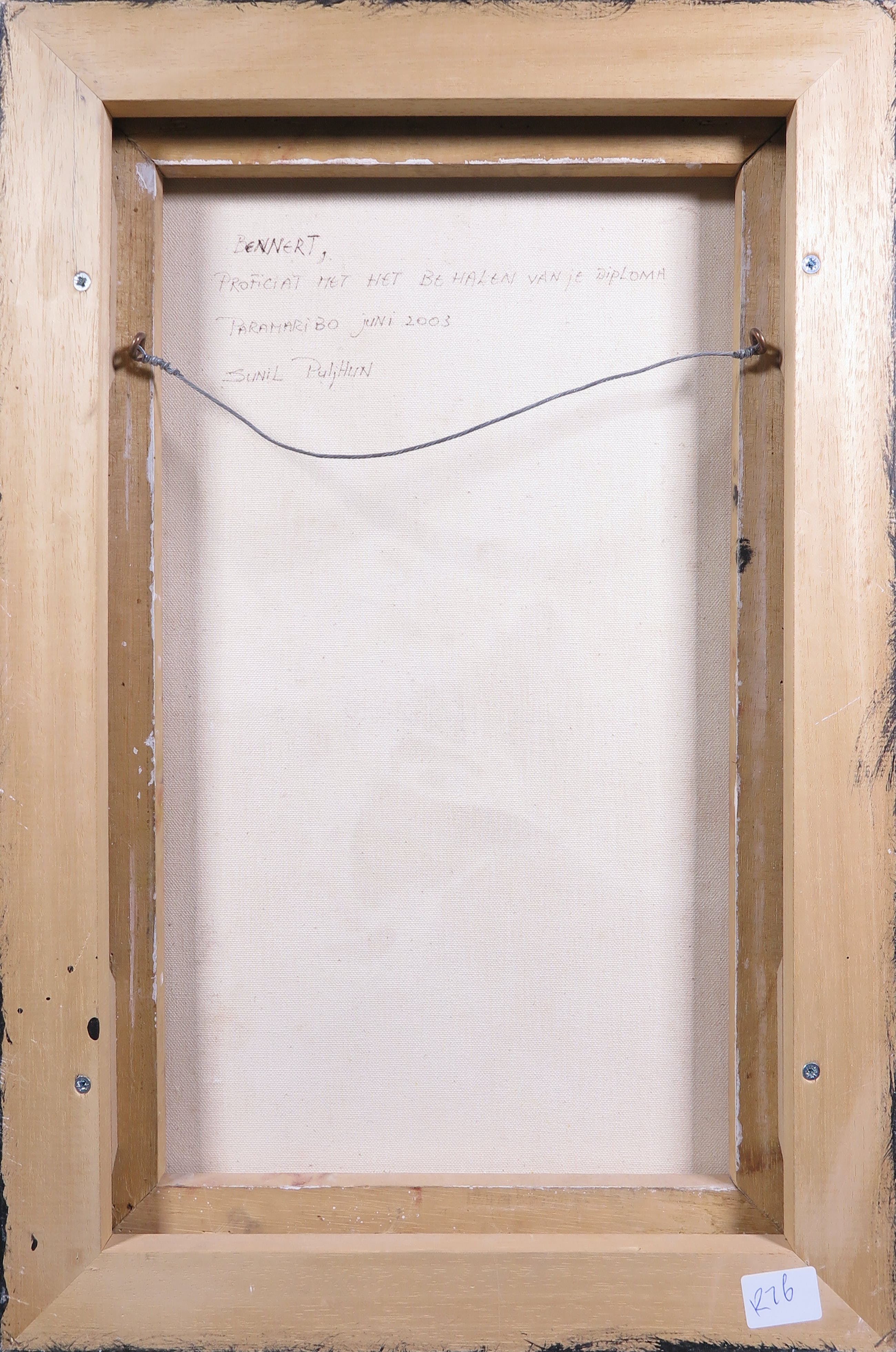 aan lijsten worden niet beschreven. Indien een werk achter glas is ingelijst en