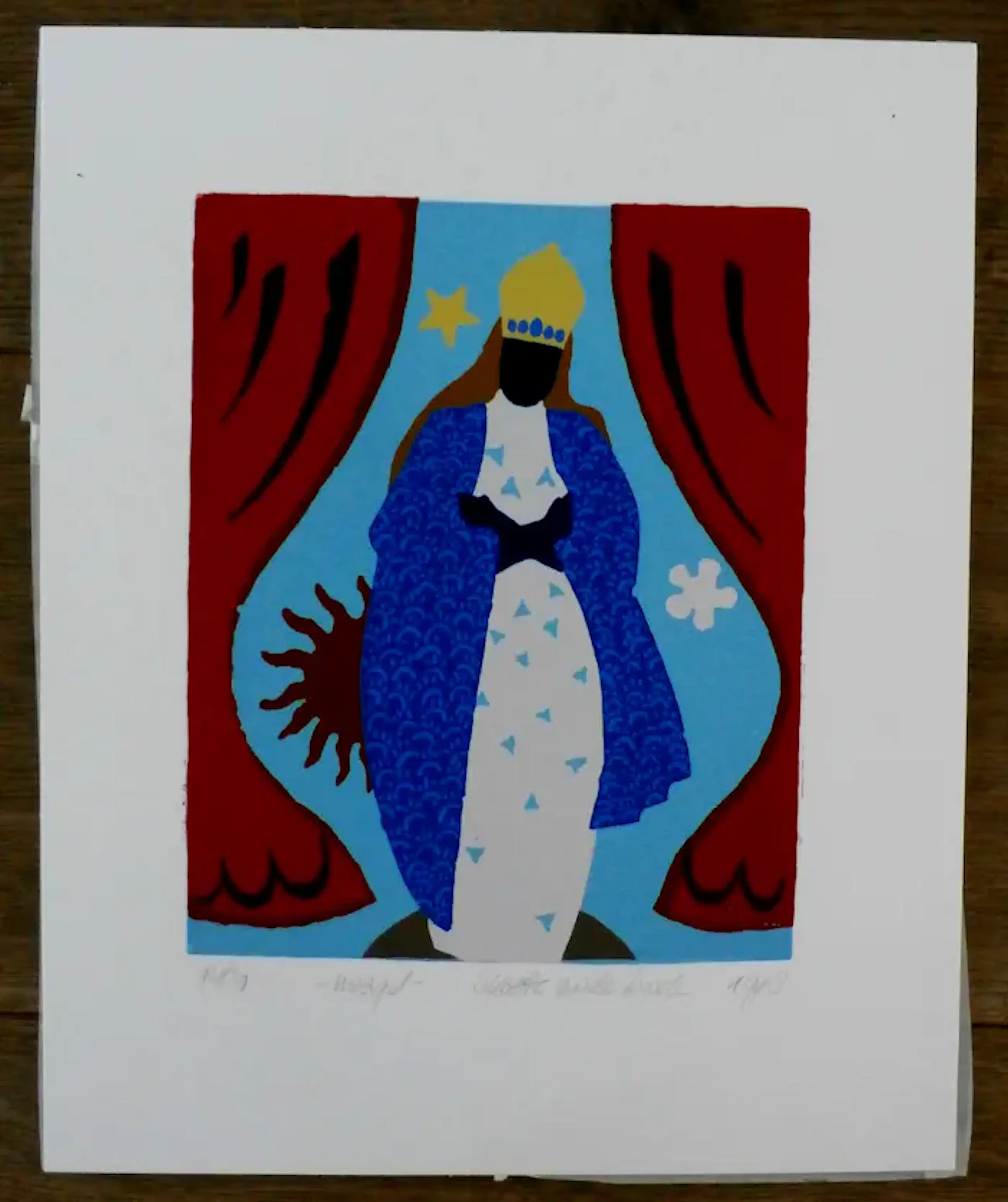 Zeefdruk van Susette van de Lande uit 1998. Titel: maagd. Nummer: 14/20. Afmetingen blad: H38 x b31cm. Afmetingen voorstelling: H25 x b20.5cm. Het werk is onderaan, gesigneerd door de kunstenares. De authenticiteit van dit werk wordt volledig gegarandeerd. Een certificaat van echtheid kan, op aanvraag, worden gemaild.