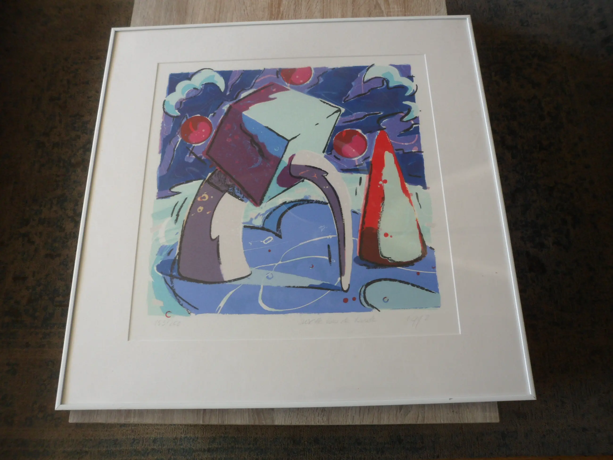 Op speelse maar robuuste wijze rangschikt zij de door haar gestileerde vormen in het platte vlak. Haar objecten plaatst zij in een imaginaire ruimte waarin diepte wordt gesuggereerd door meerdere transparante kleurlagen over elkaar aan te brengen. De vormen en kleuren zijn uitbundig. Daar waar de voorstelling erom vraagt weet zij zich te beperken tot een meer ingetogen aanpak en een gedempter pallet.