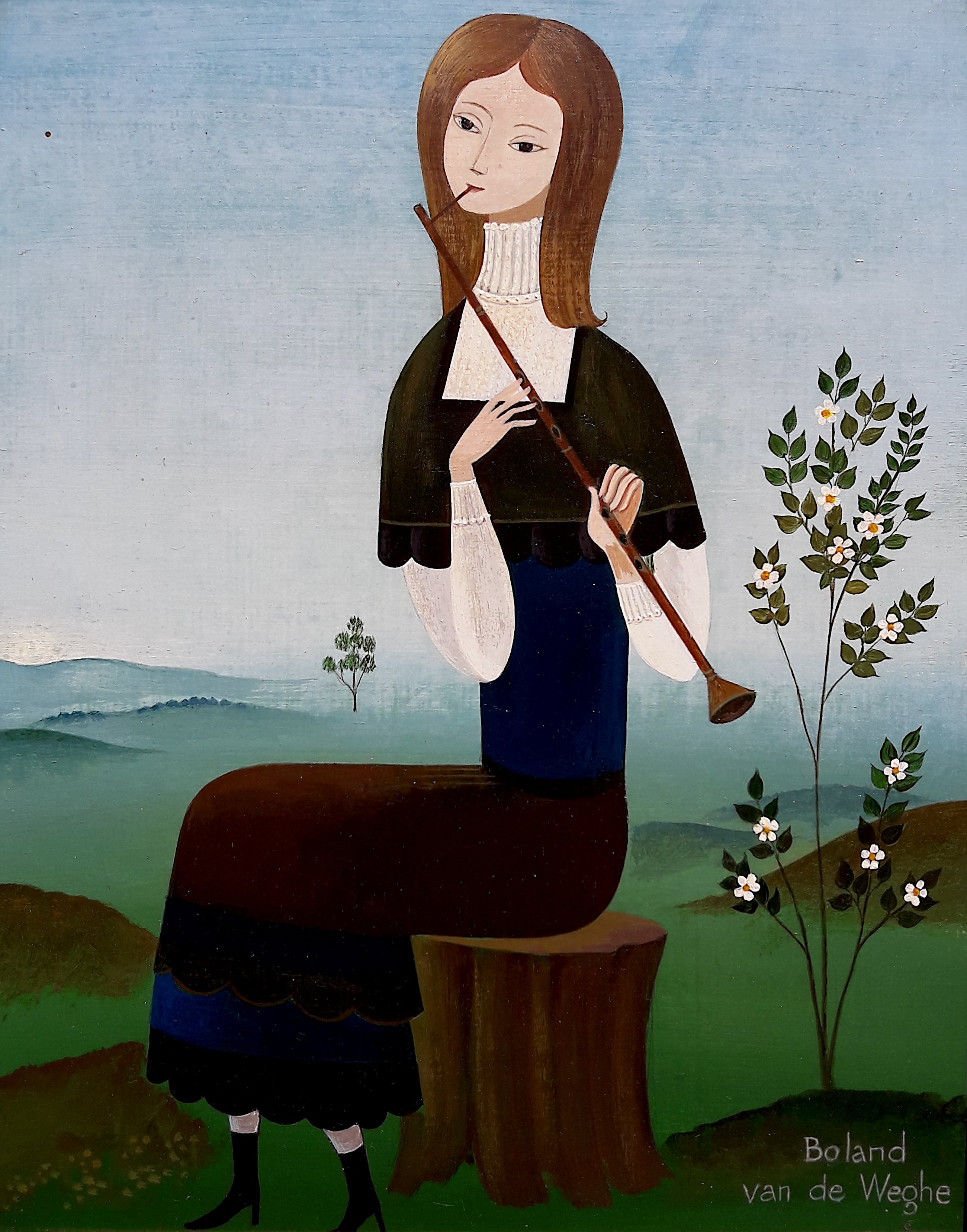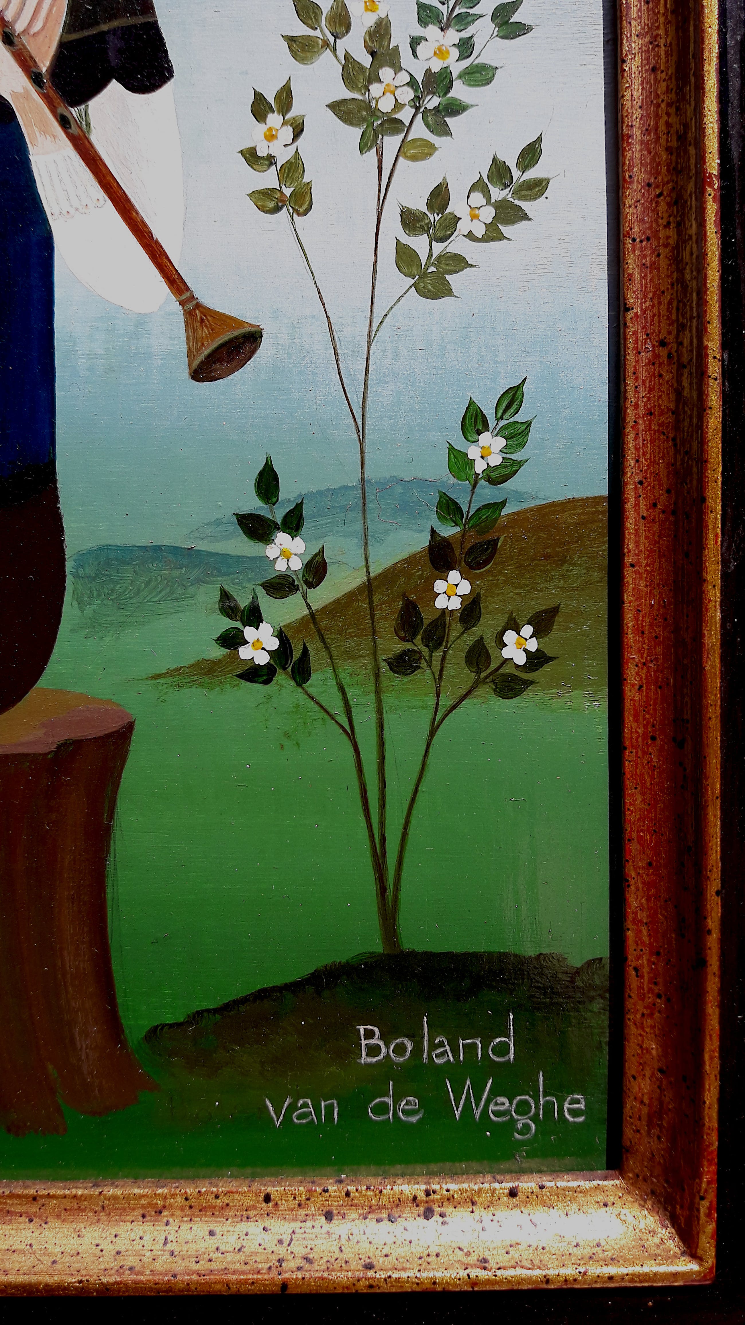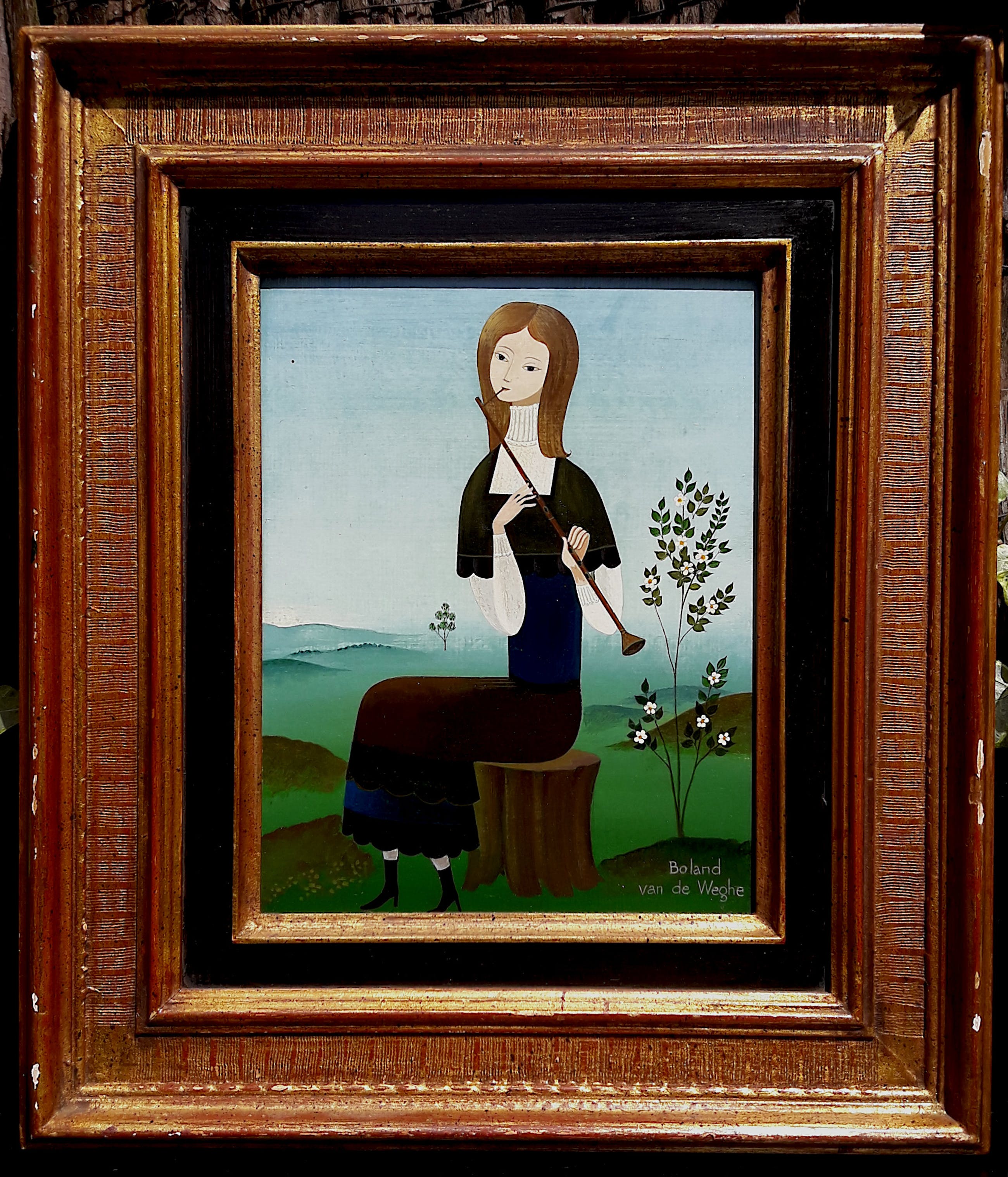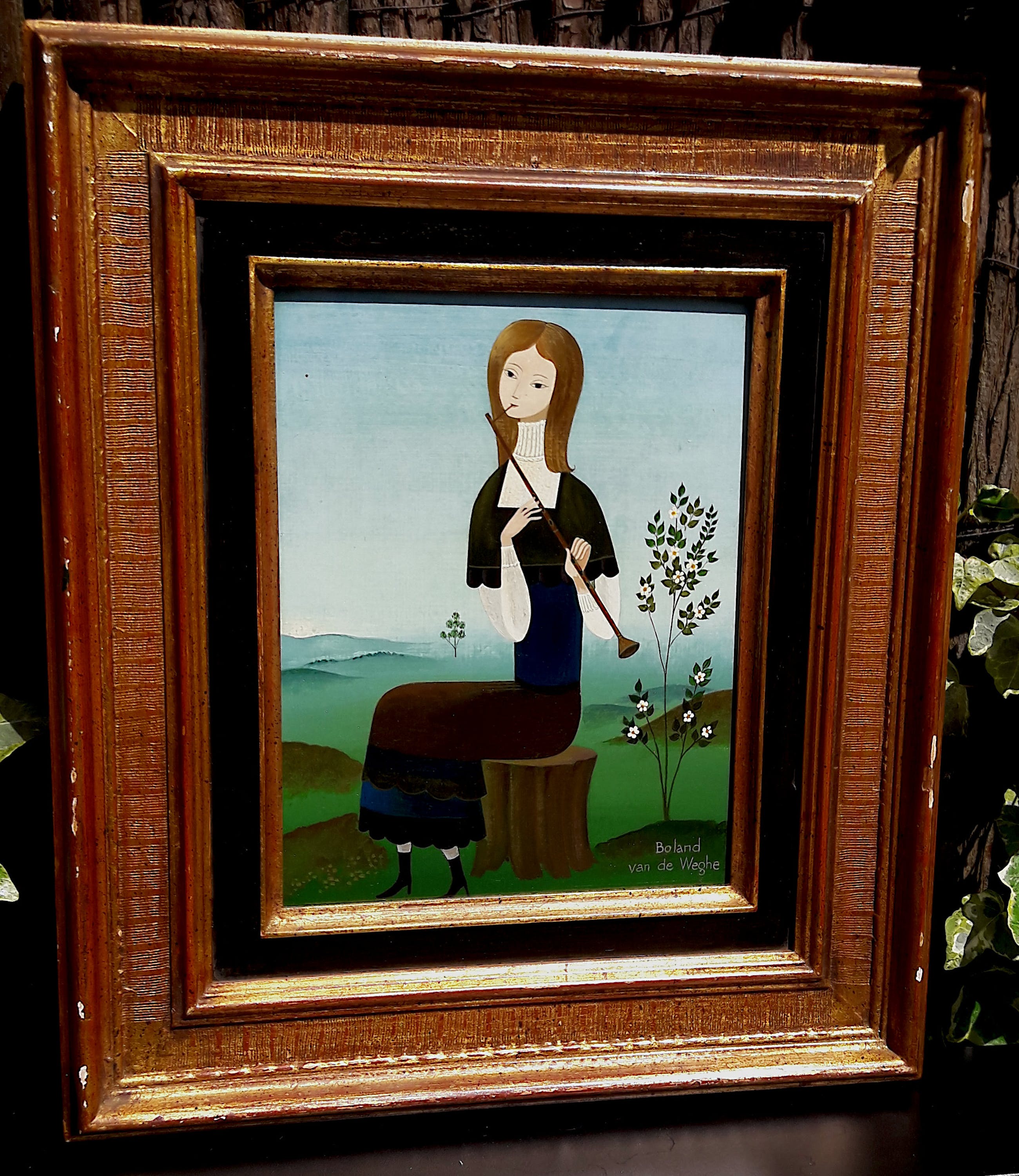 Prachtig werkje van deze Belgische kunstenares. Olieverf op paneel, gesigneerd rechtsonder, in complementerende lijst. In zeer goede conditie, alleen wat kleine beschadigingen aan de lijst.