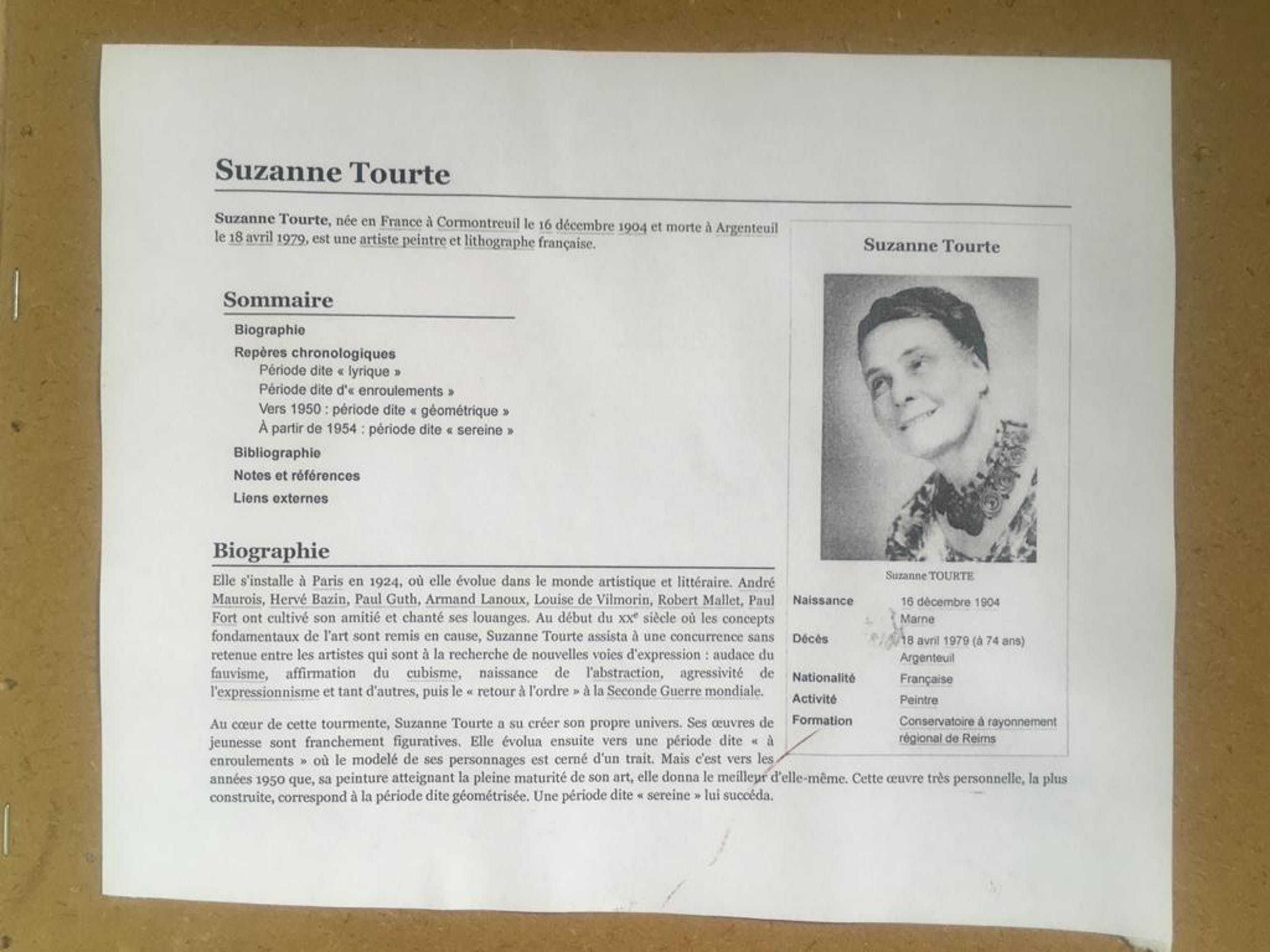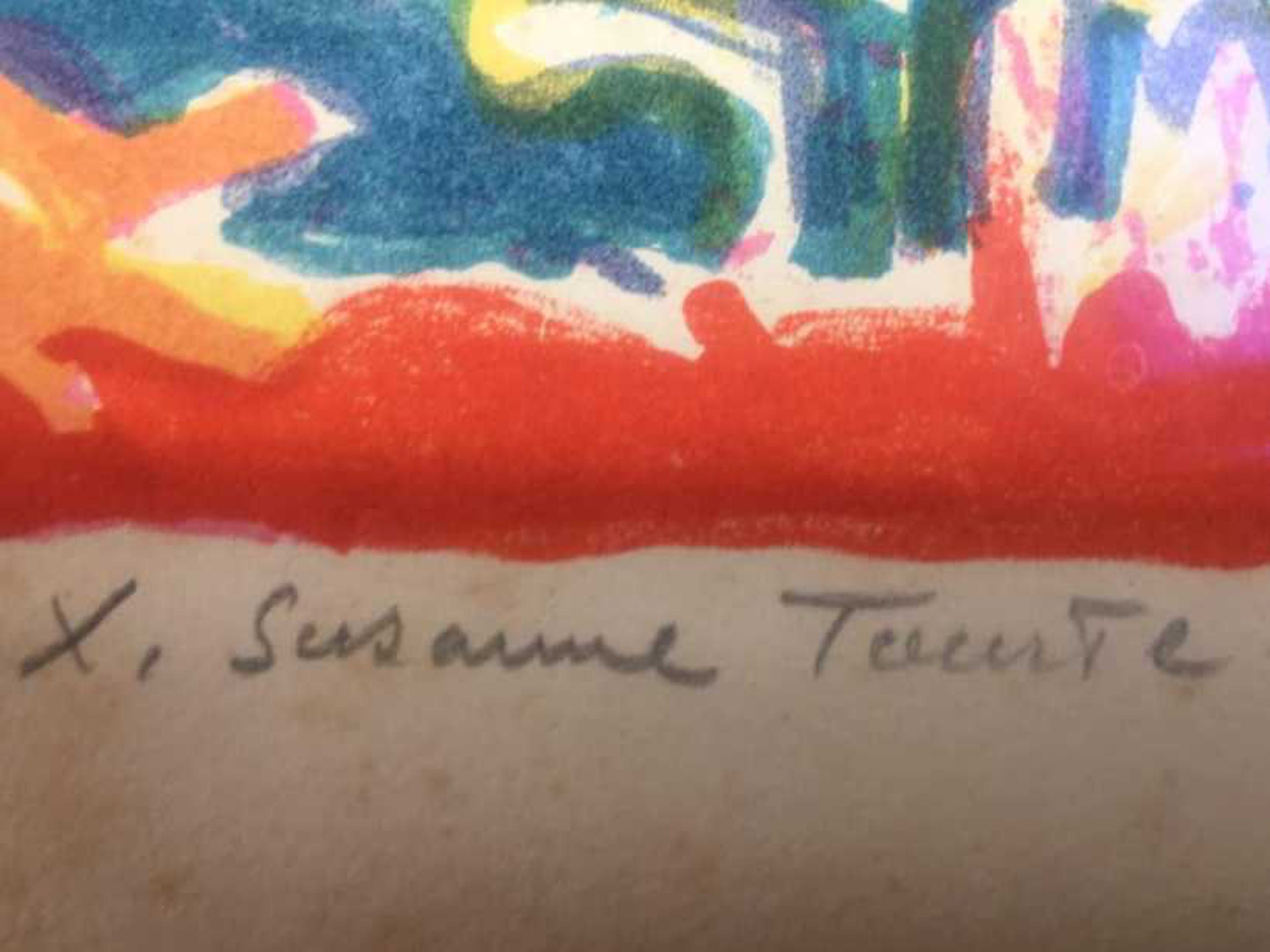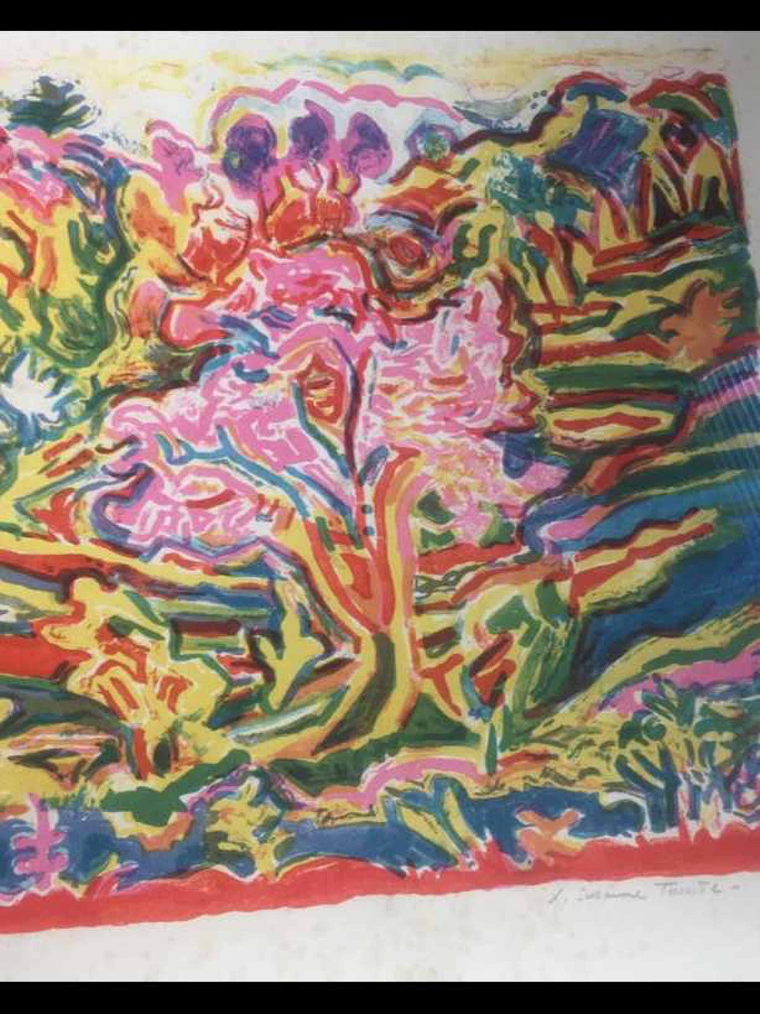 Suzanne Tourte Kunstenares Geboren 1904 overleden 1979 Litho nummer 33/35 Werk. Amandier 1950/1954 ( Amandelboom ) 1950/1954 geometriOnder het werk ( zie de fotos ) sch vanaf 1954 zogenaamde Seriene periode Handtekening en Lithonummer